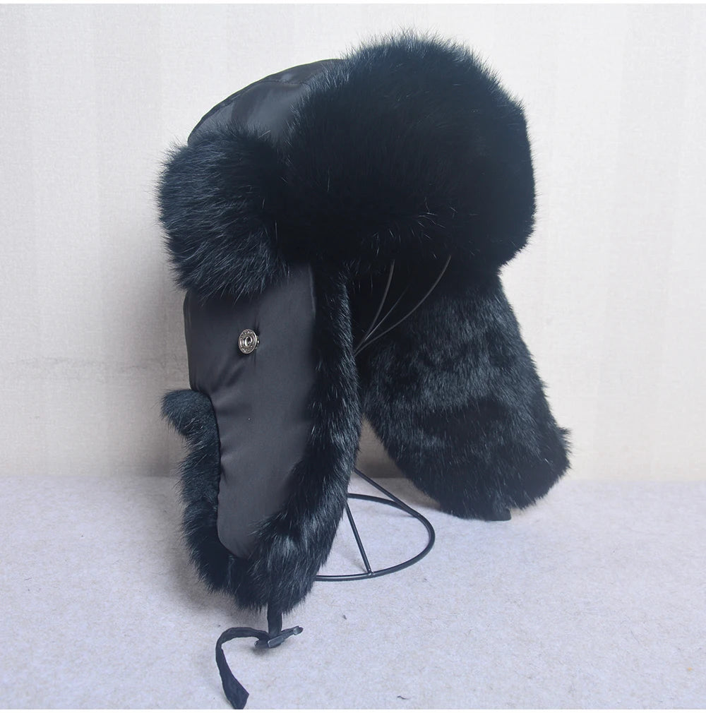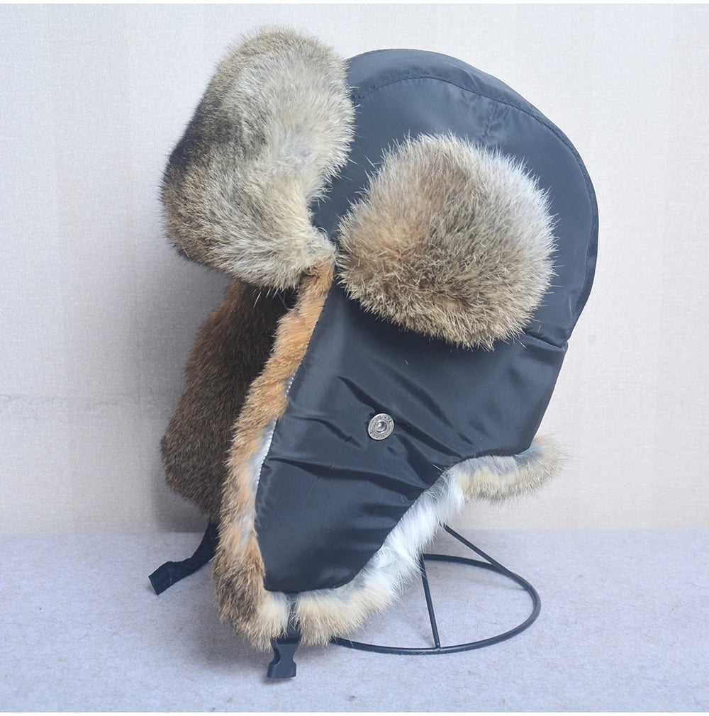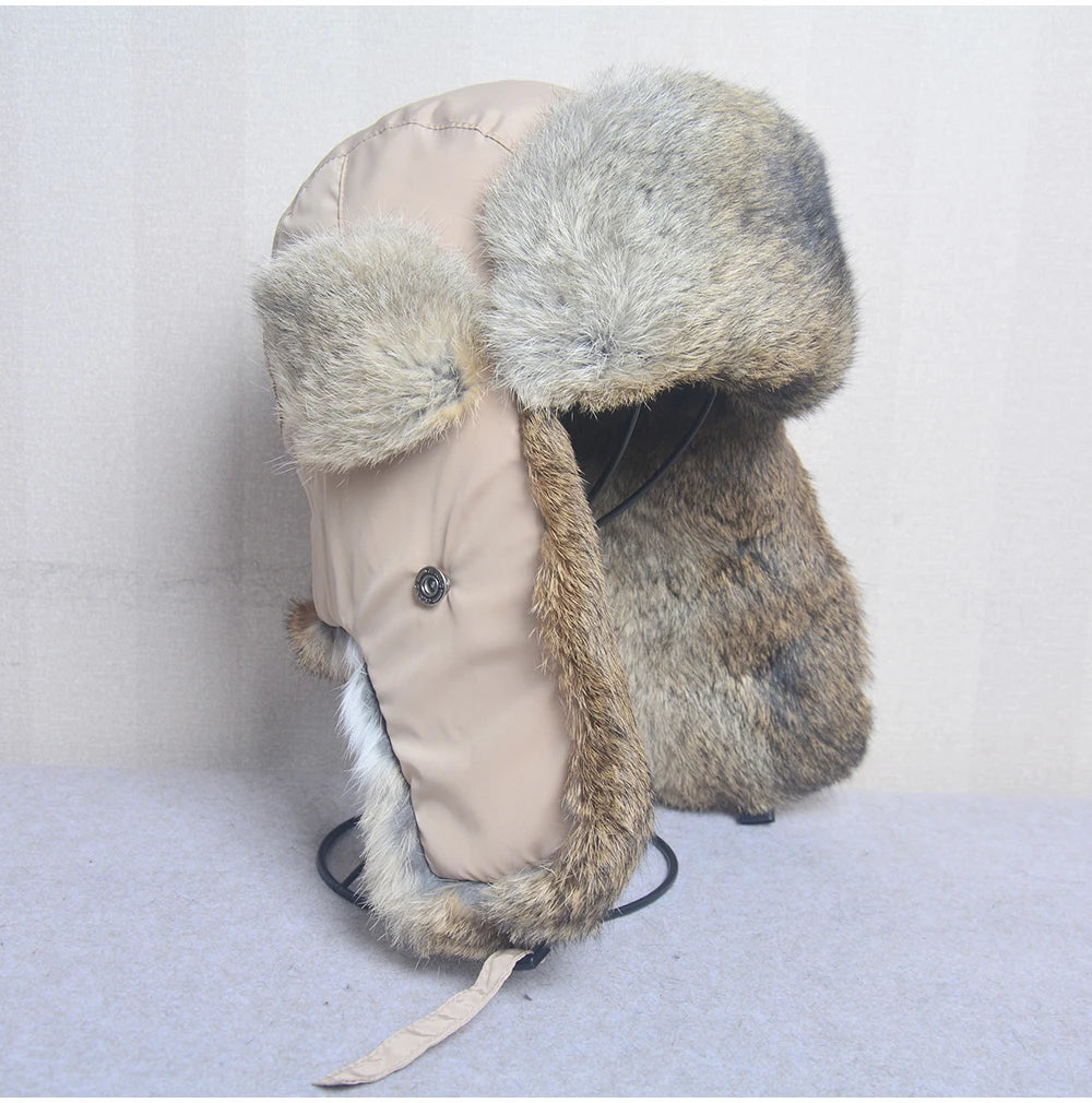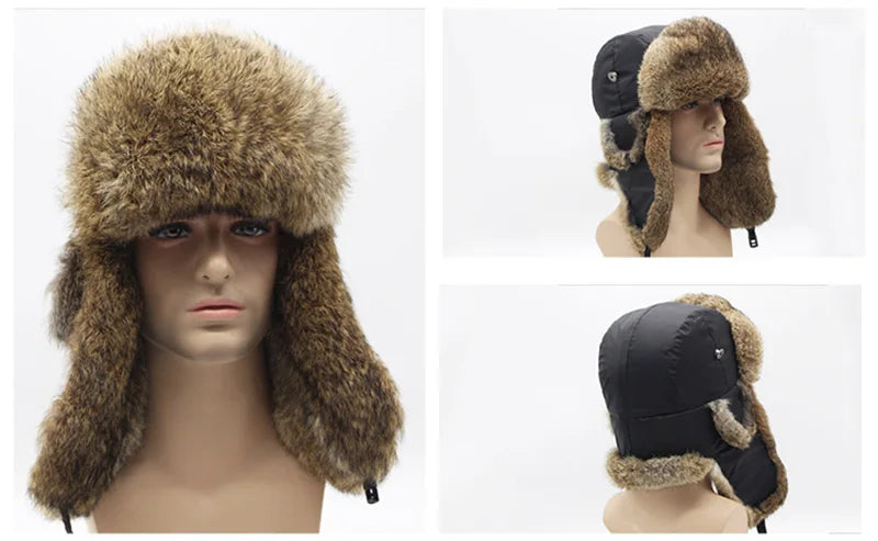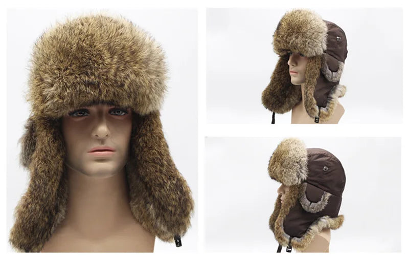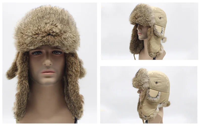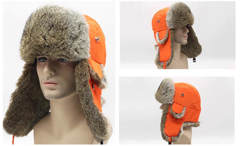 Russia Winter Real fur Hat Men Outdoor Windproof Super Warm Real Rabbit Fur B...