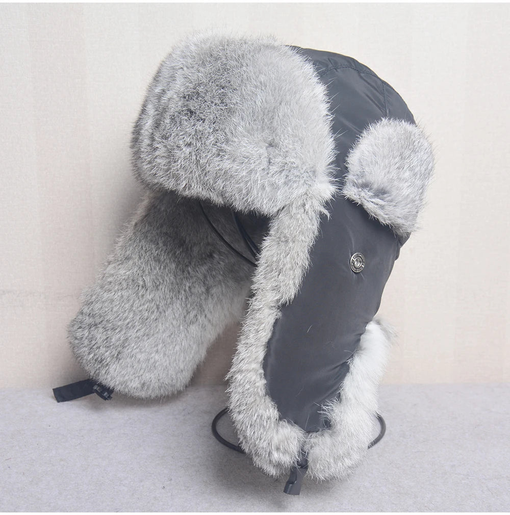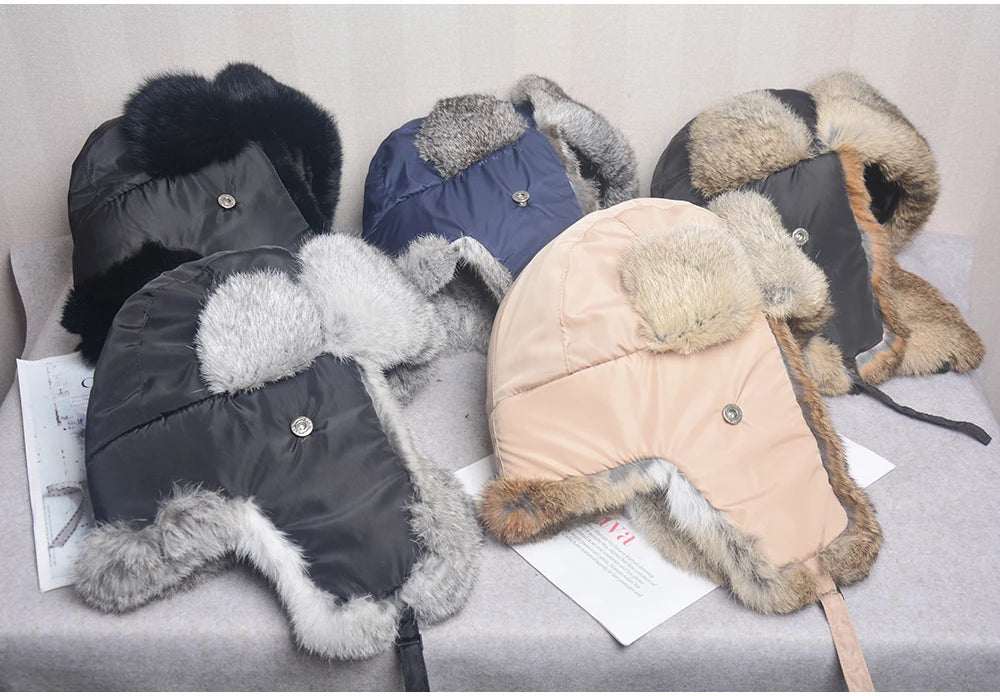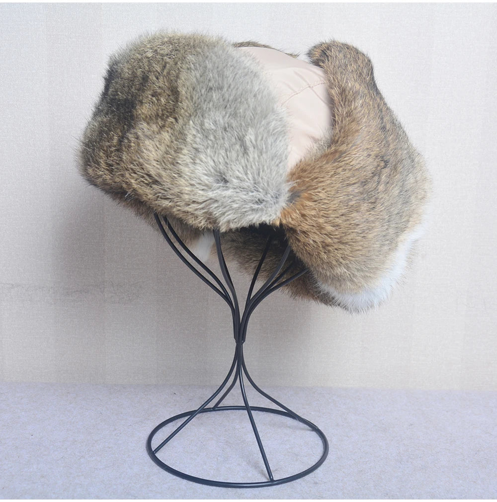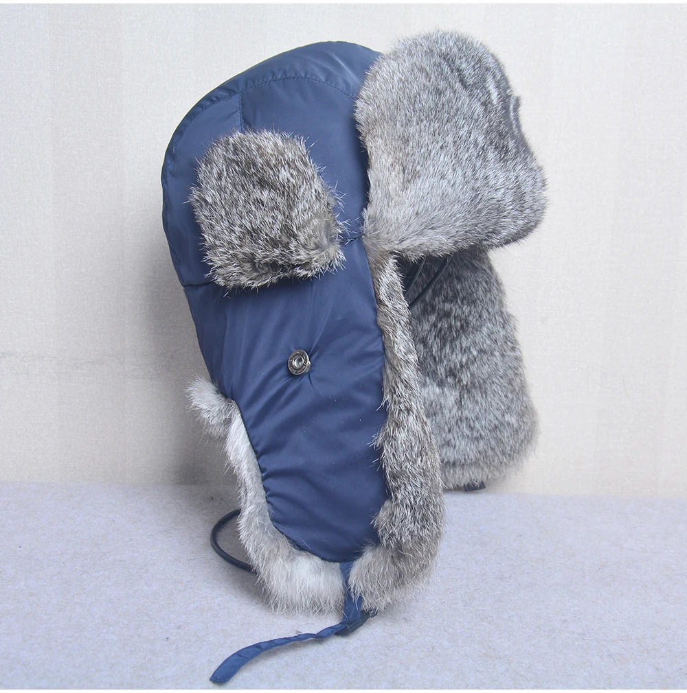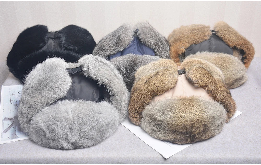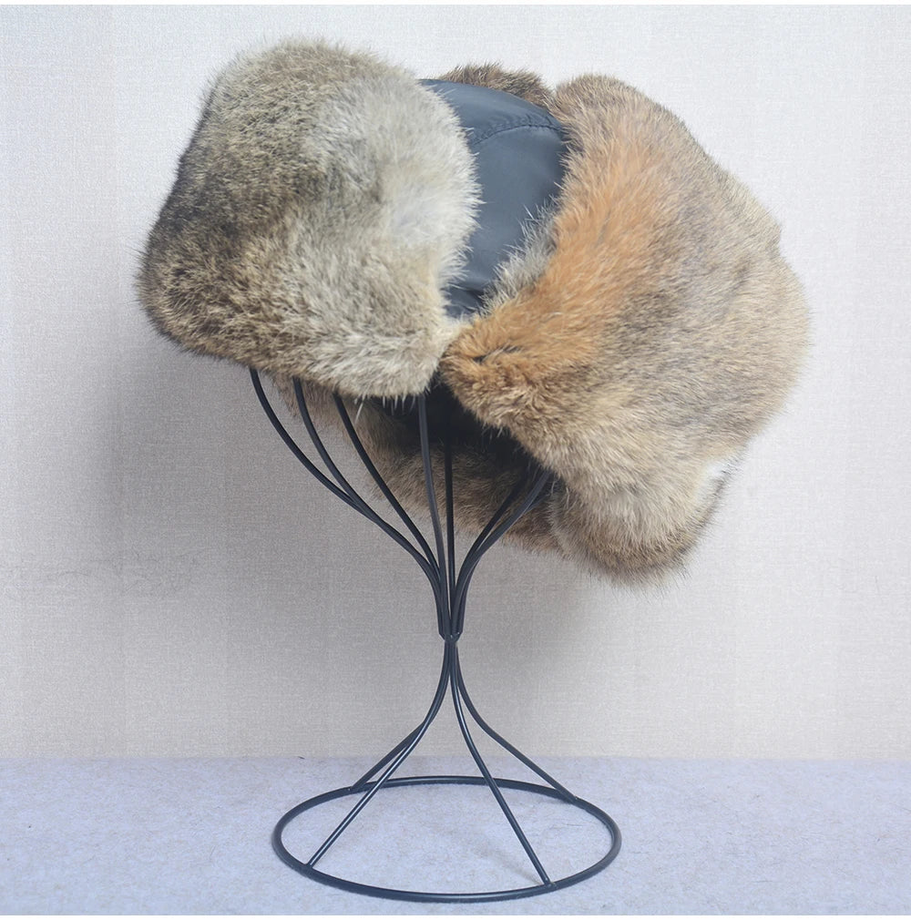 Russia Winter Real fur Hat Men Outdoor Windproof Super Warm Real Rabbit Fur B...