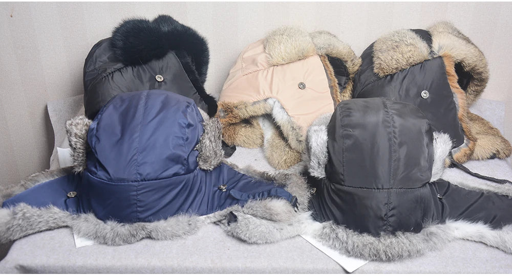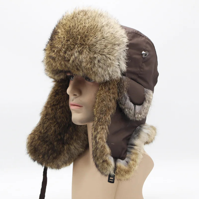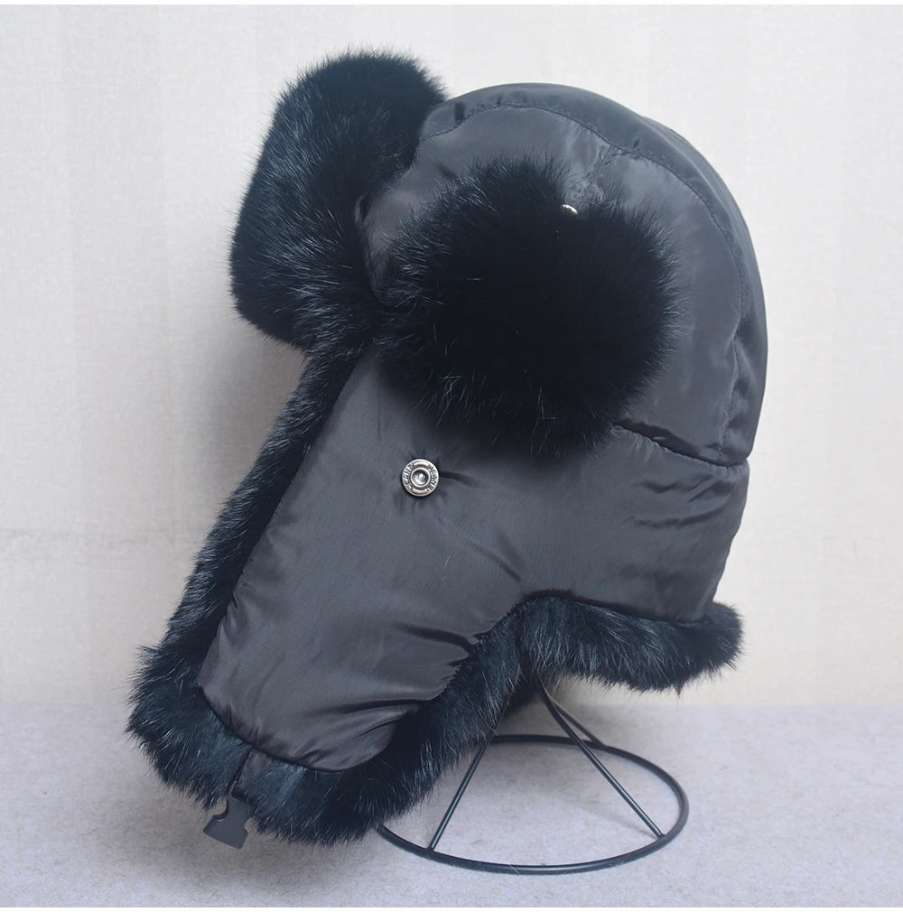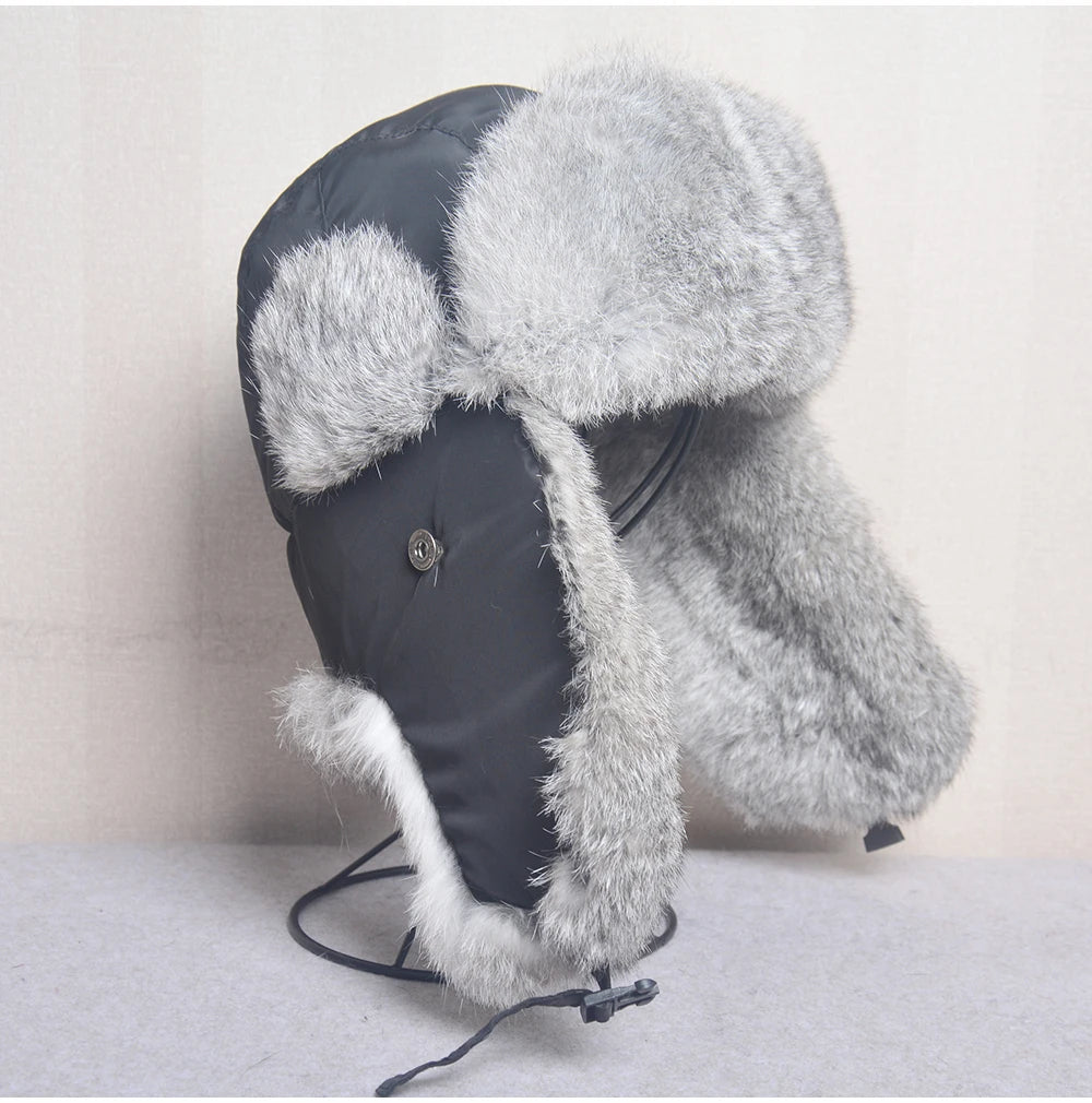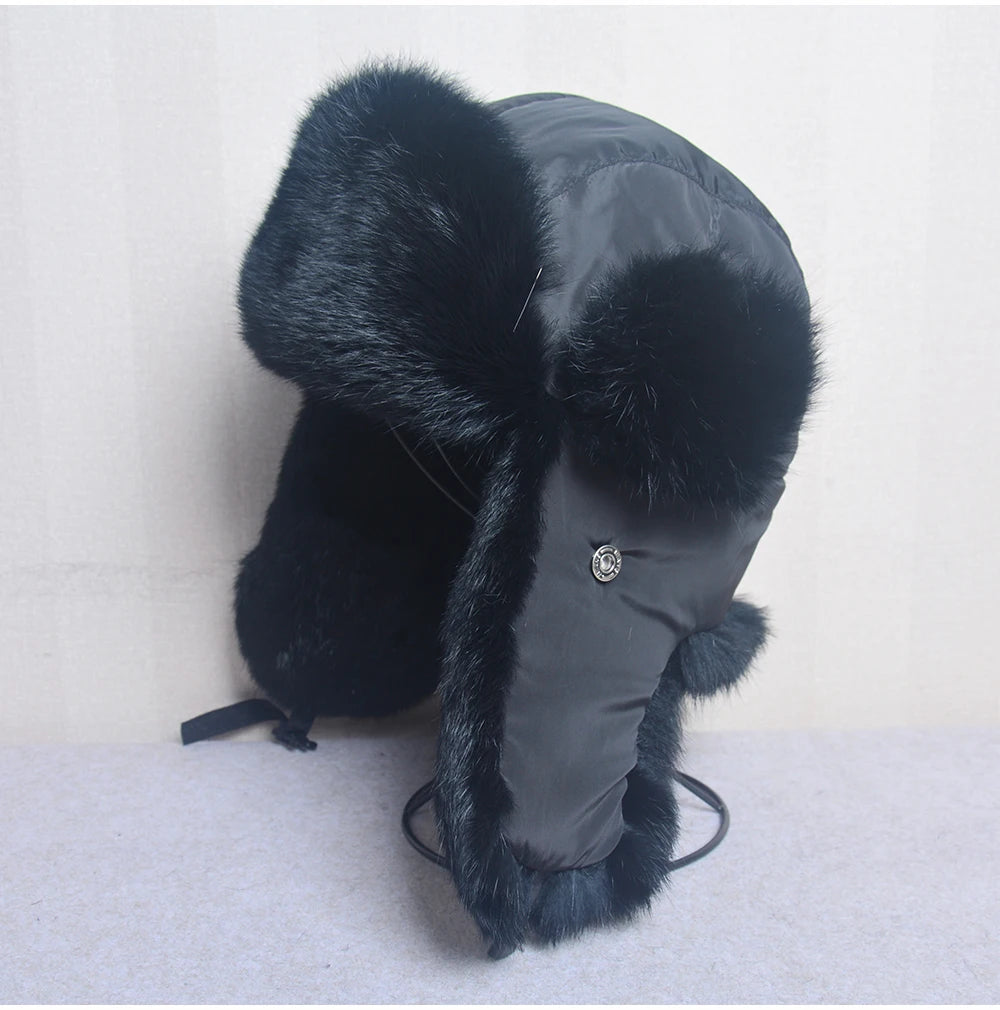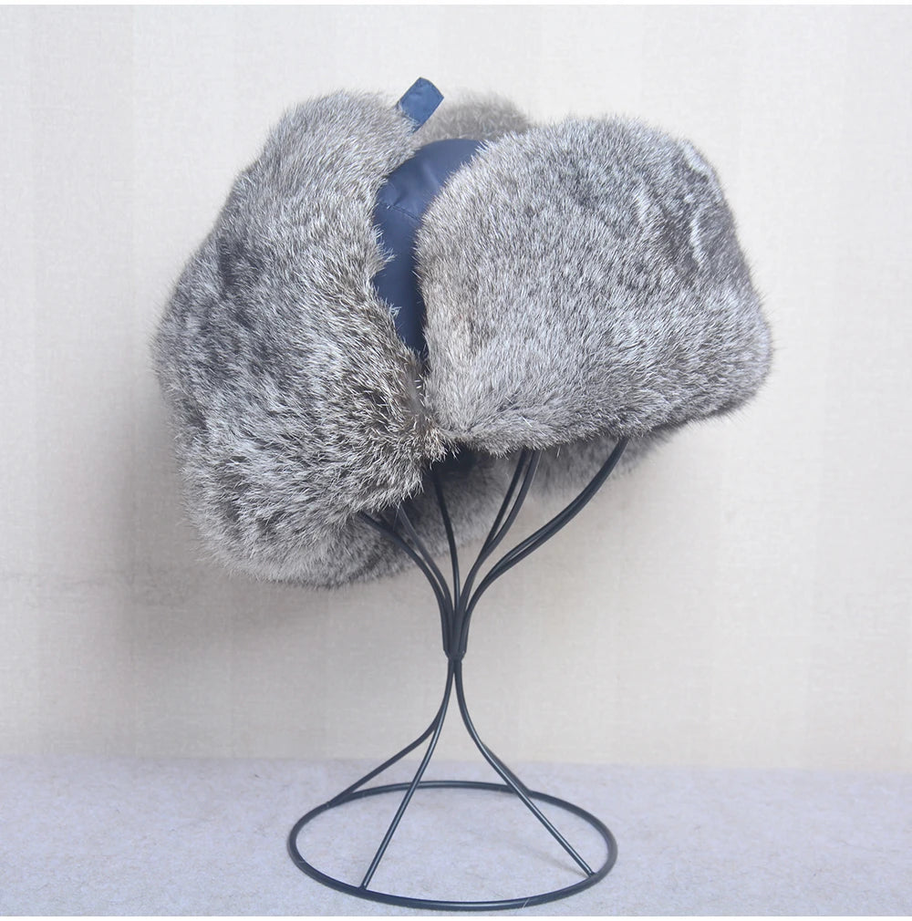 Russia Winter Real fur Hat Men Outdoor Windproof Super Warm Real Rabbit Fur B...