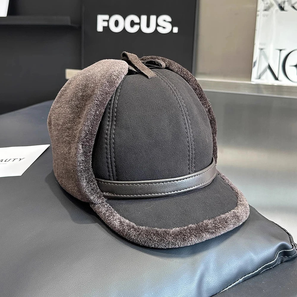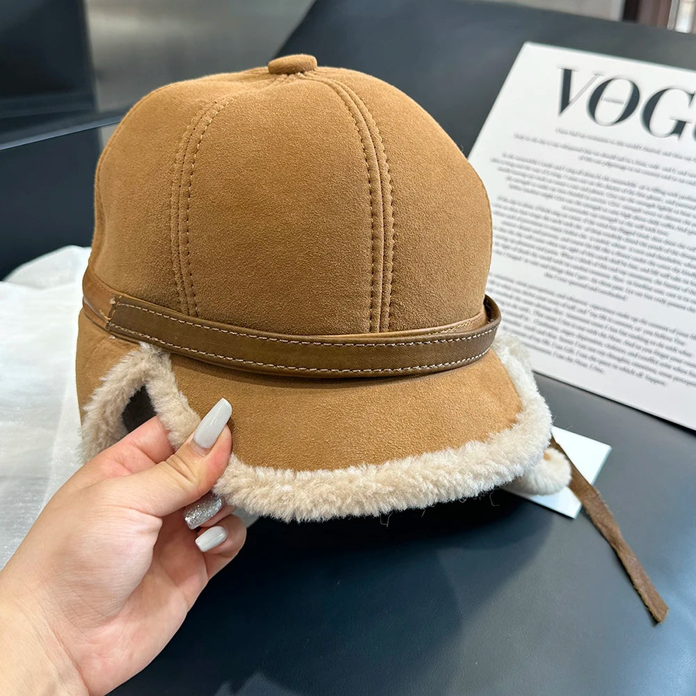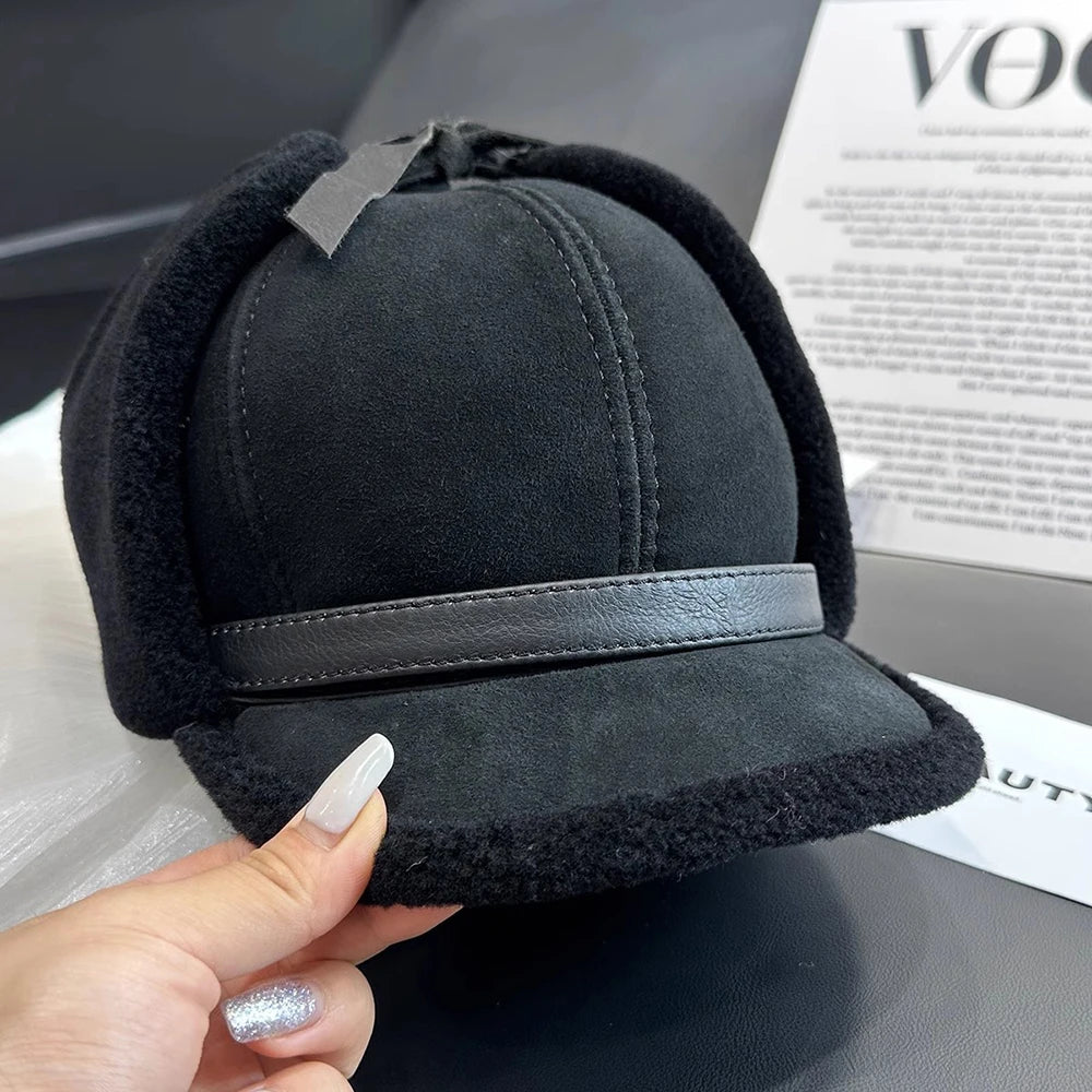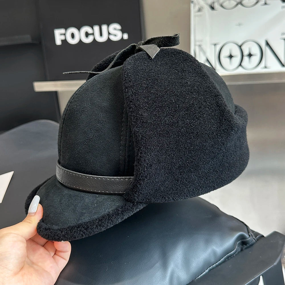 Winter Leather Hat Men Fur Lamb Wool Warm Thick Earflaps Bomber Hats Men s Ba...