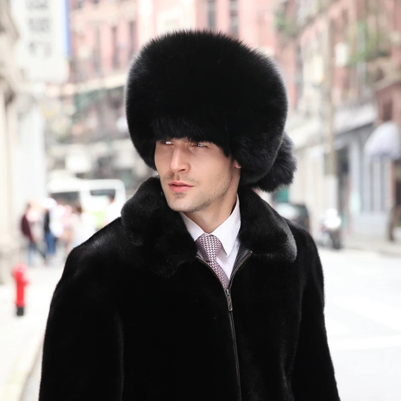 Real Fur 100 Fox Skin Russian Businessmen Pilot Bombers Full Mao Men s hat Us...
