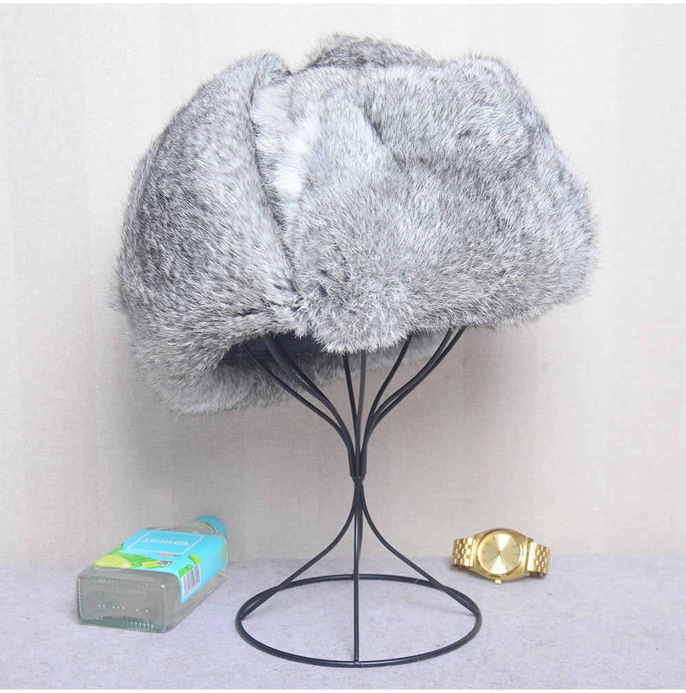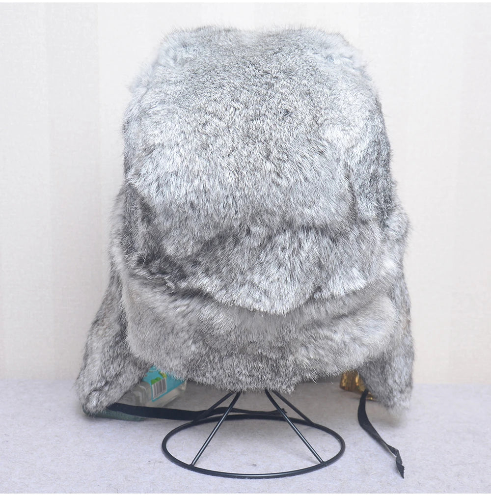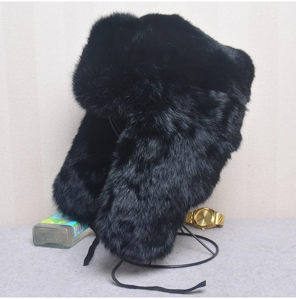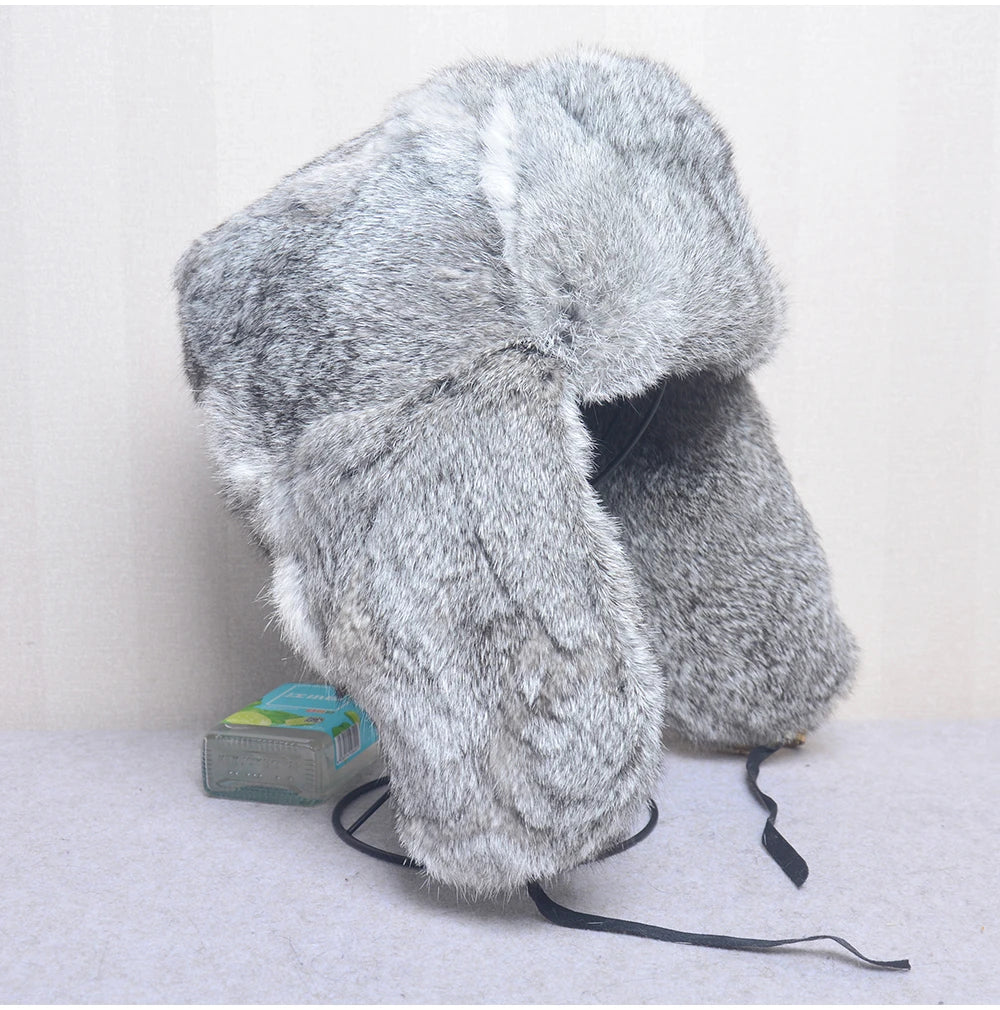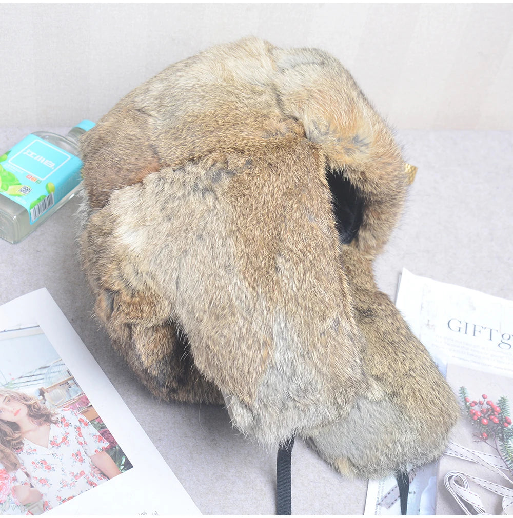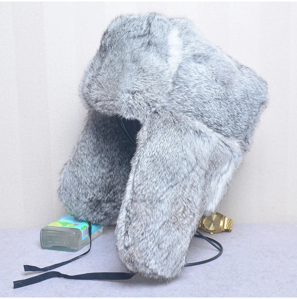 Thick Warm Bomber Hat Men Real Rabbit Fur Earflap Trapper Russian Cap Male Pl...