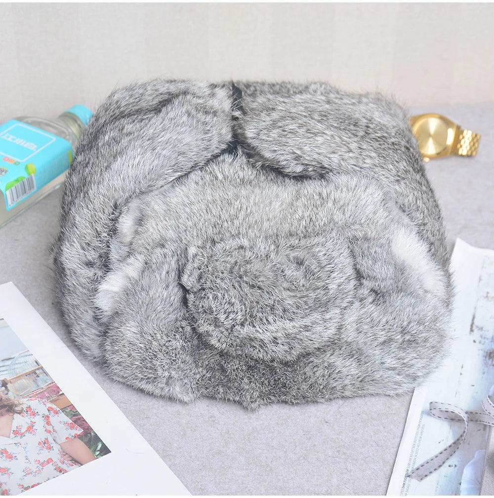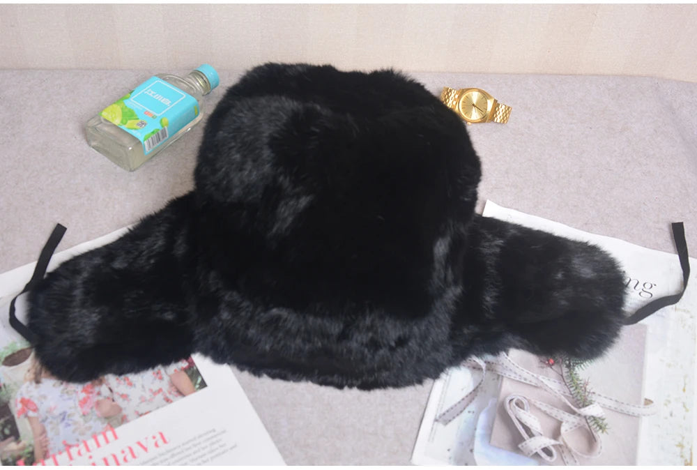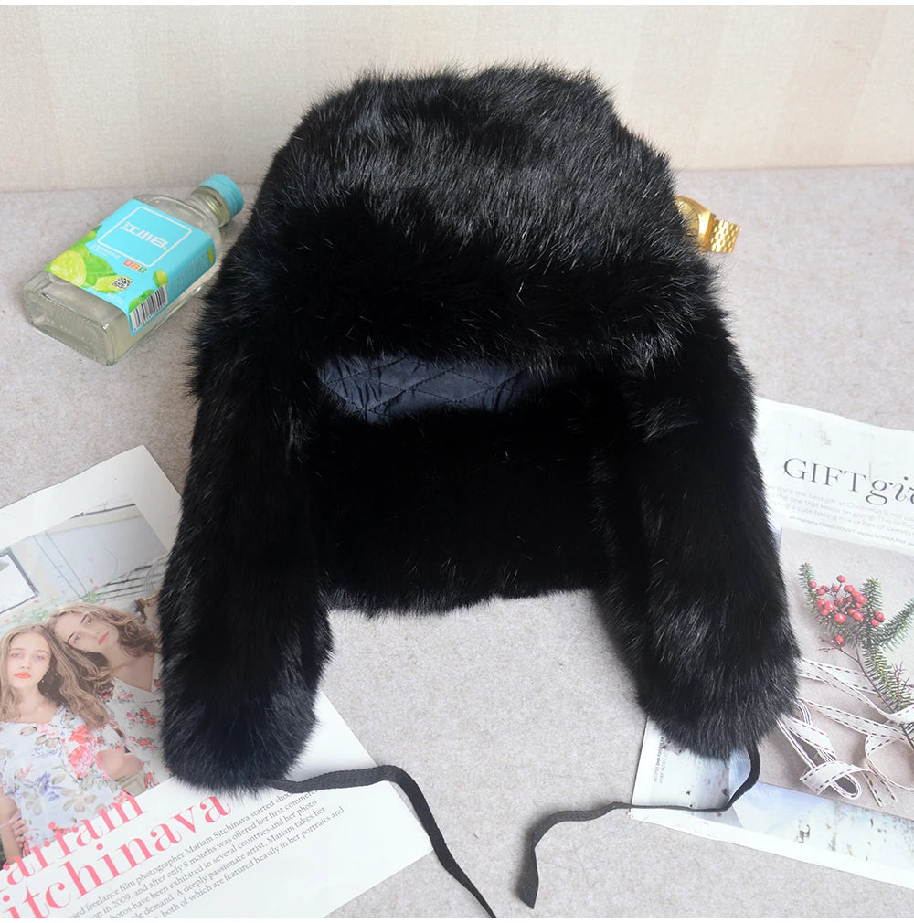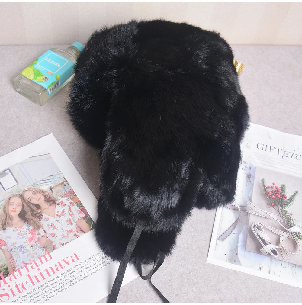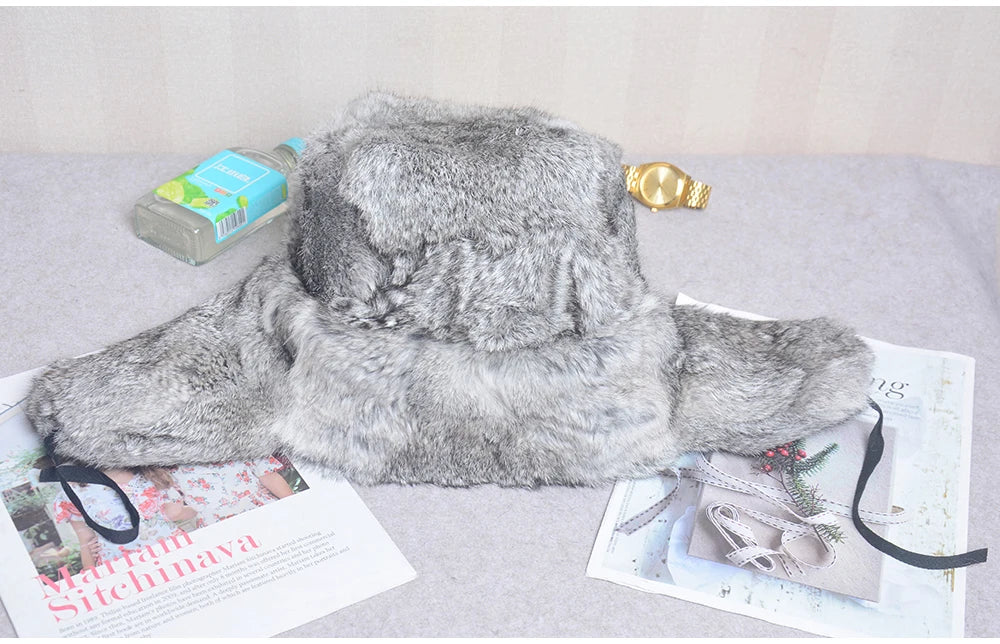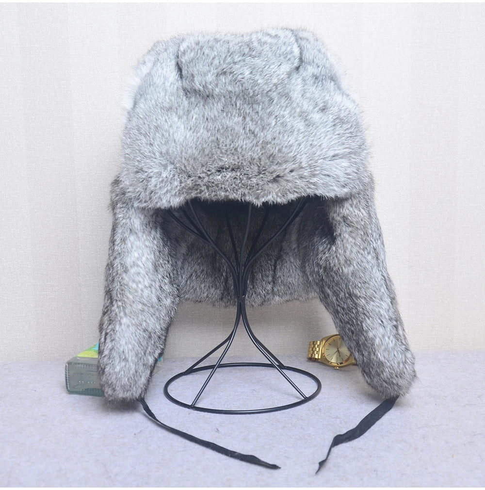 Thick Warm Bomber Hat Men Real Rabbit Fur Earflap Trapper Russian Cap Male Pl...