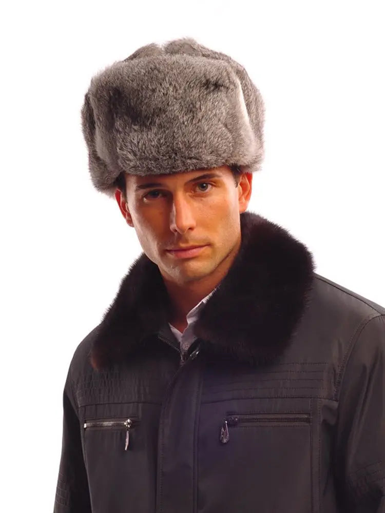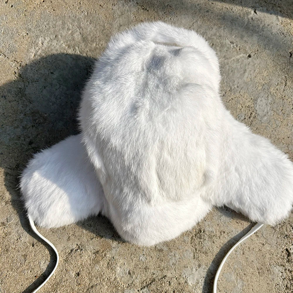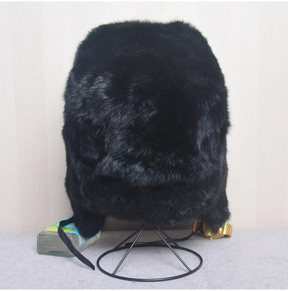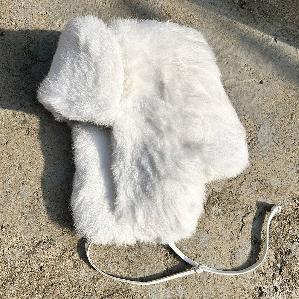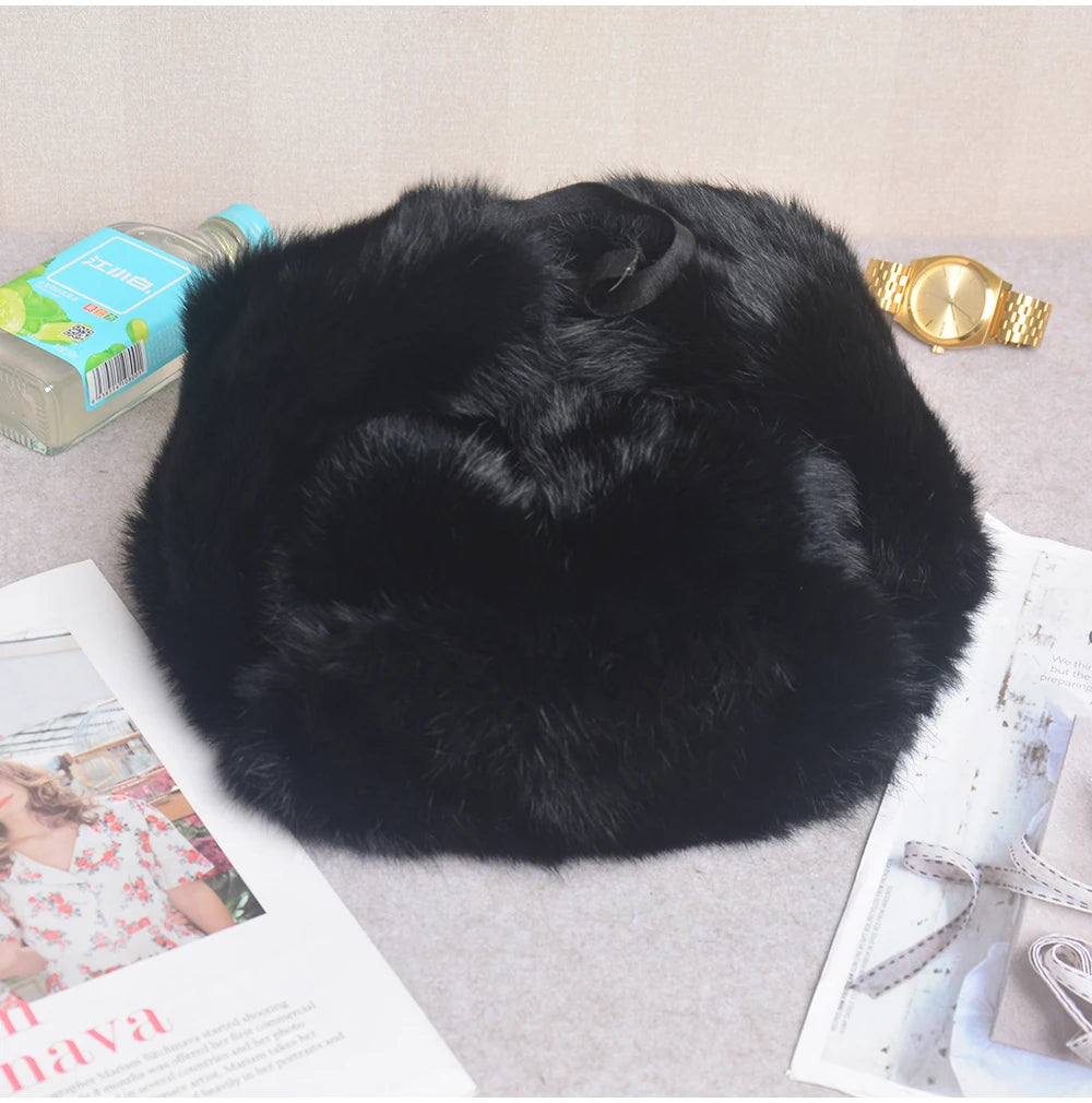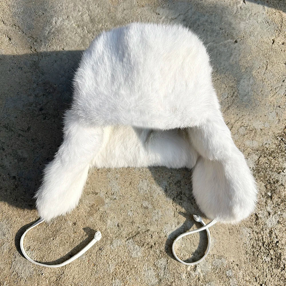 Thick Warm Bomber Hat Men Real Rabbit Fur Earflap Trapper Russian Cap Male Pl...
