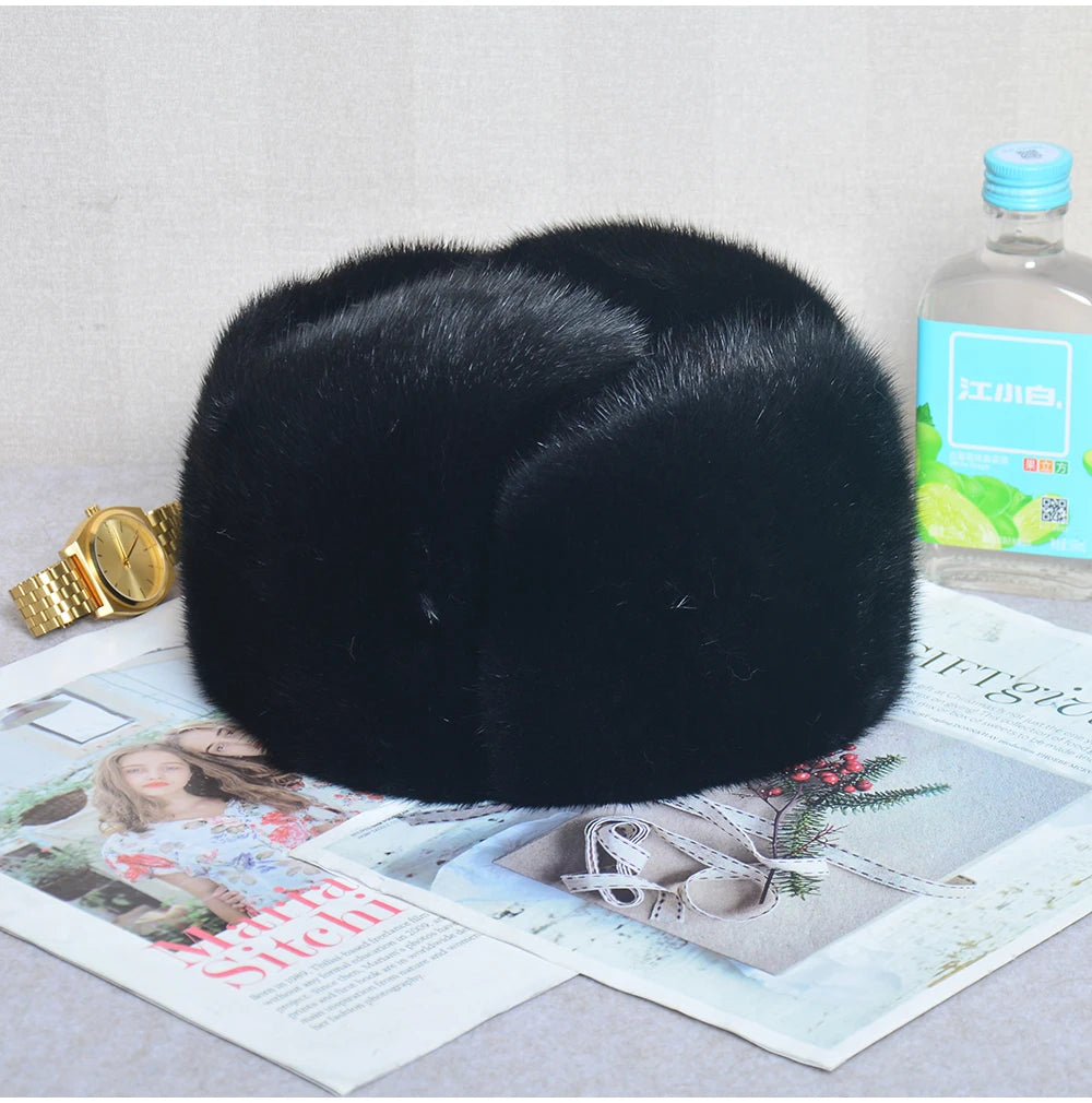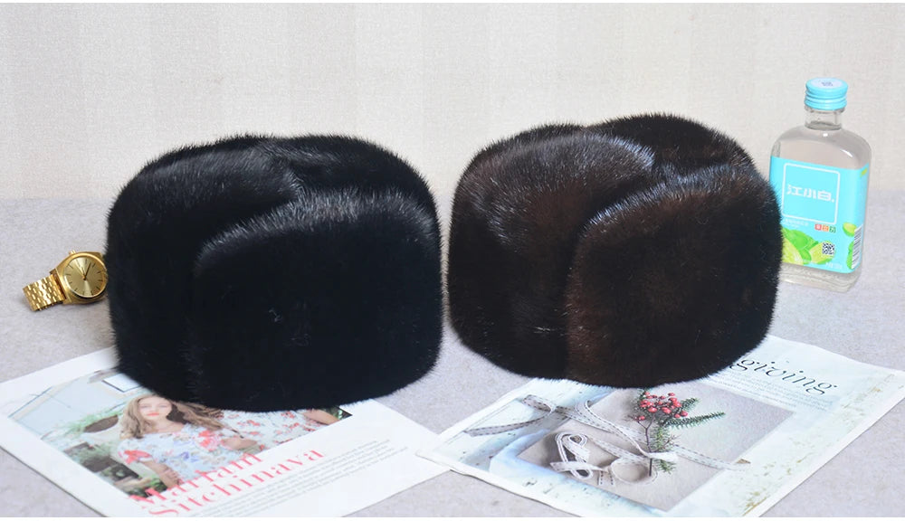 Winter Hat For Men Mink Fur Cap Male Thick Warm Winter Fur Hat Husband Gift C...