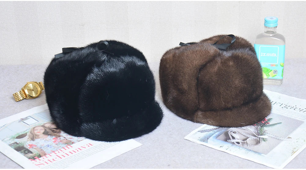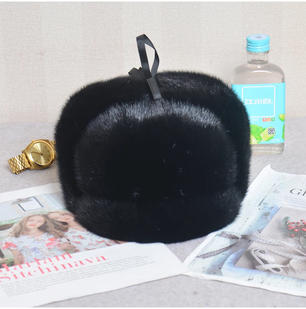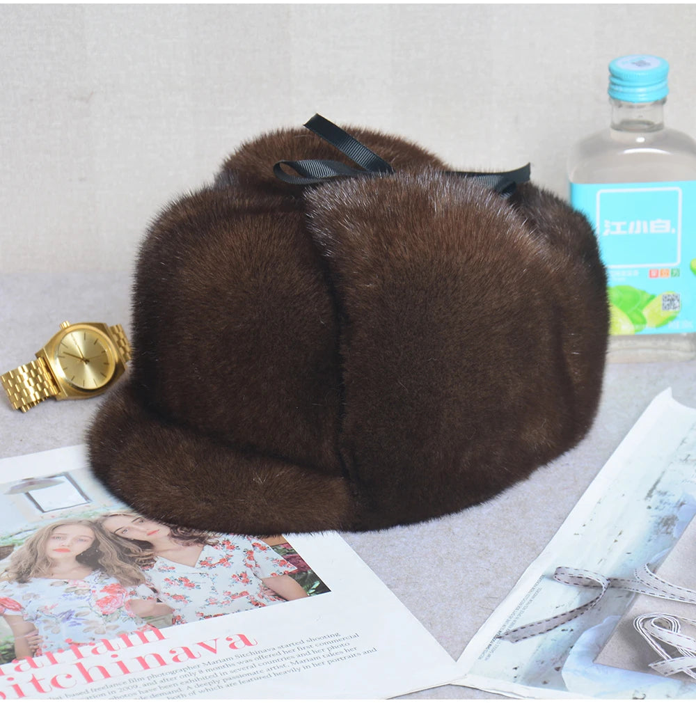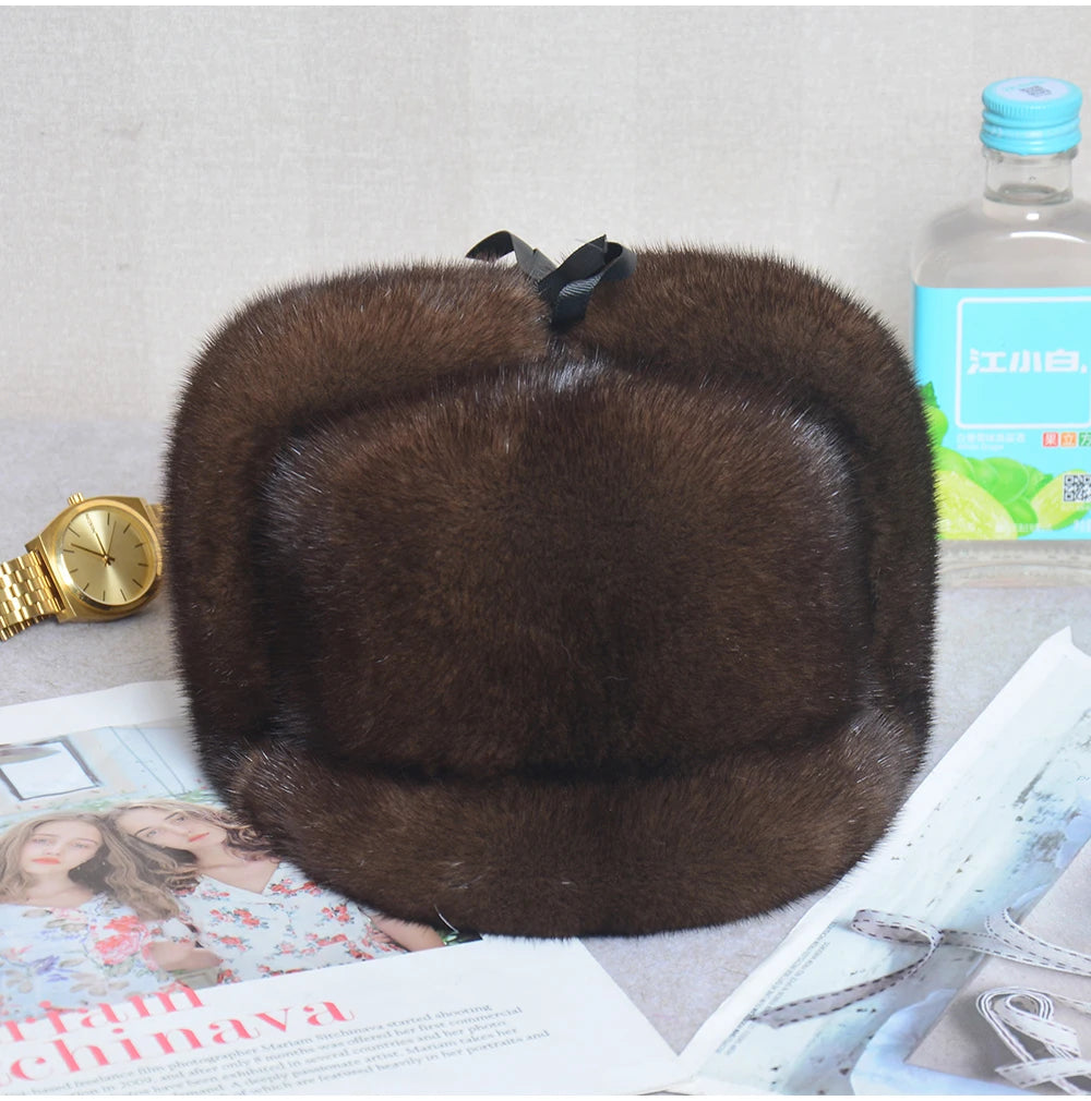 Winter Hat For Men Mink Fur Cap Male Thick Warm Winter Fur Hat Husband Gift C...