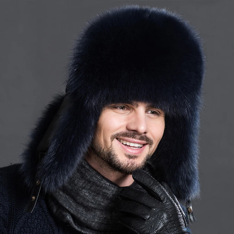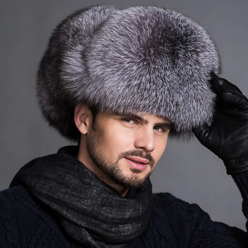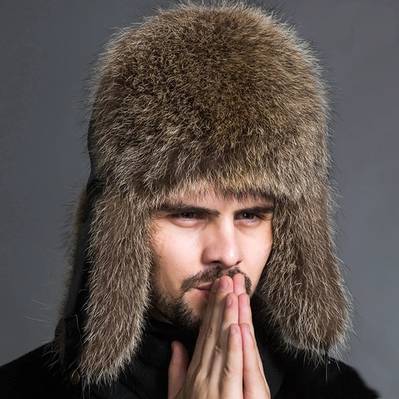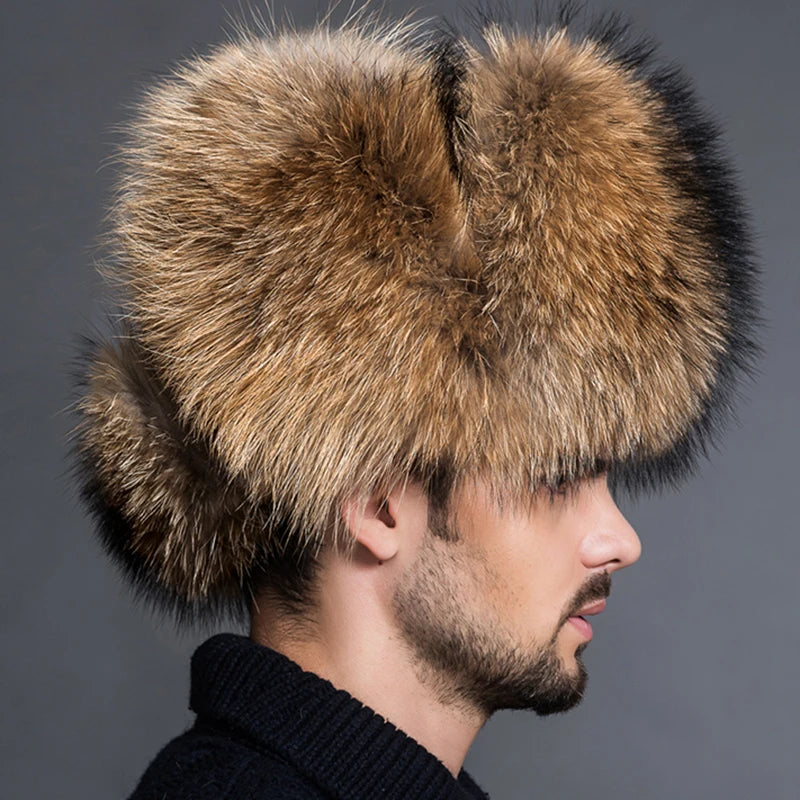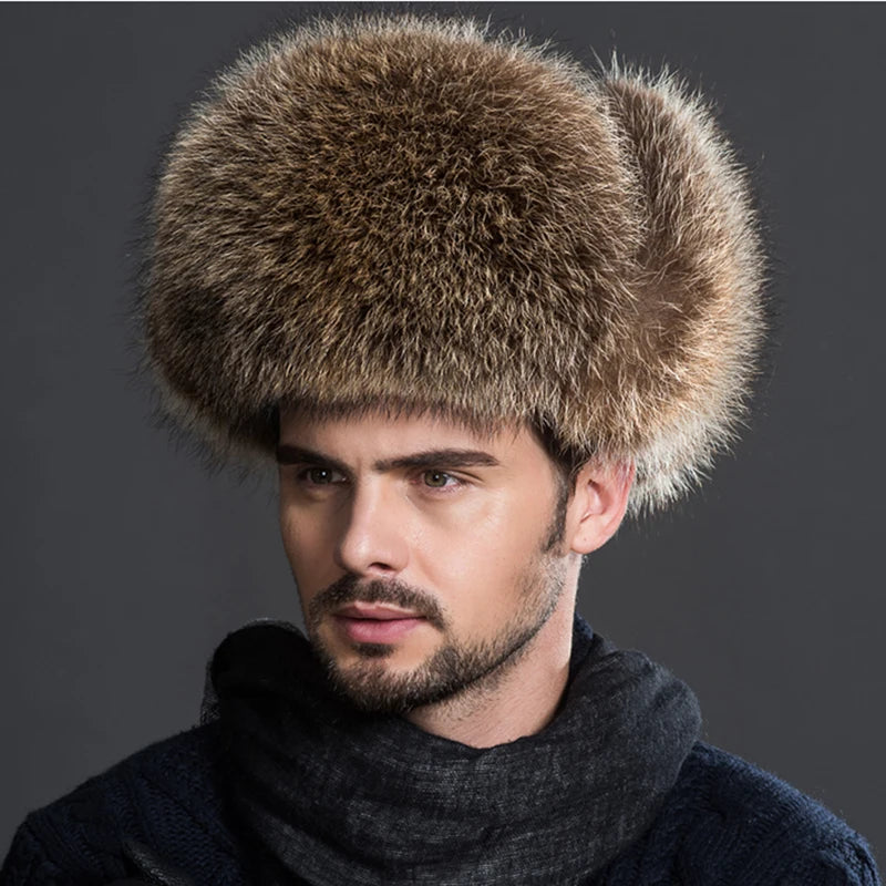 Winter Men s 100 Real Silver Fox Fur Aviator Bomber Hat Raccoon Fur Ushanka C...