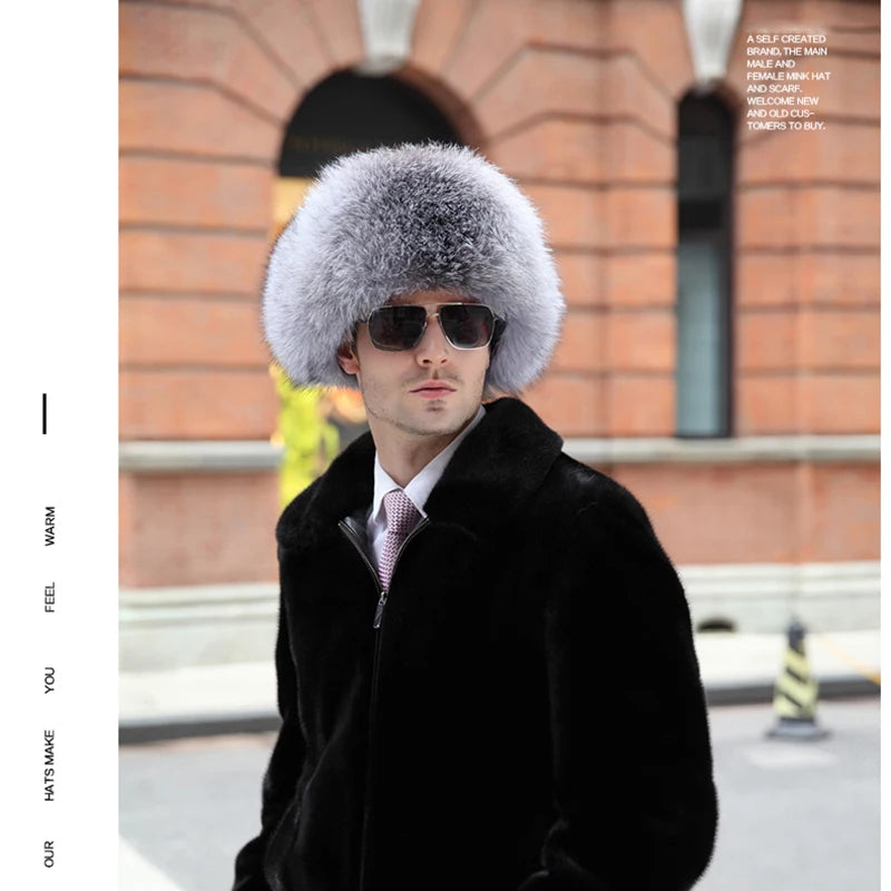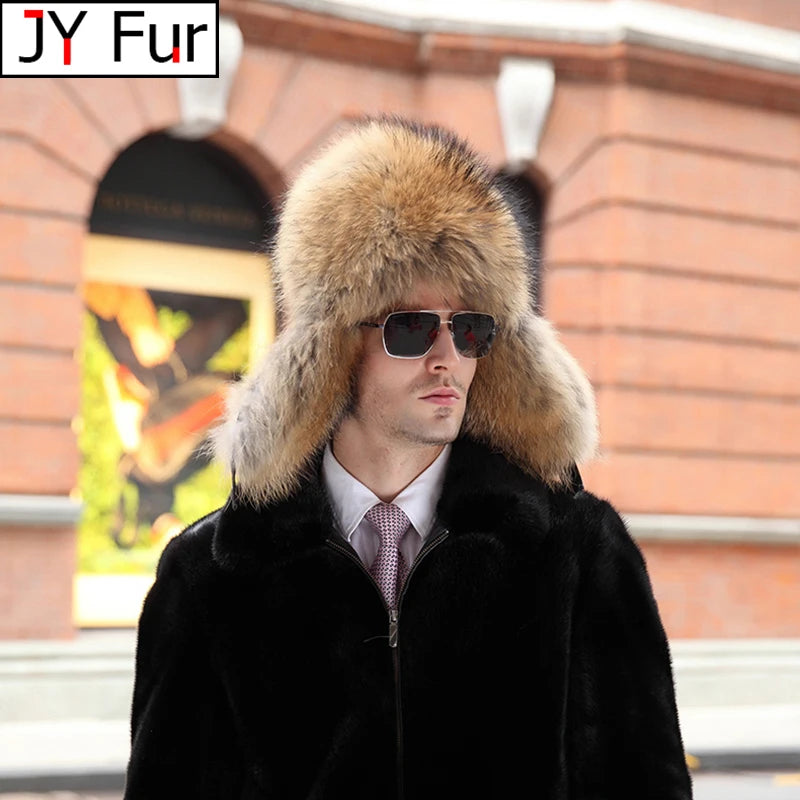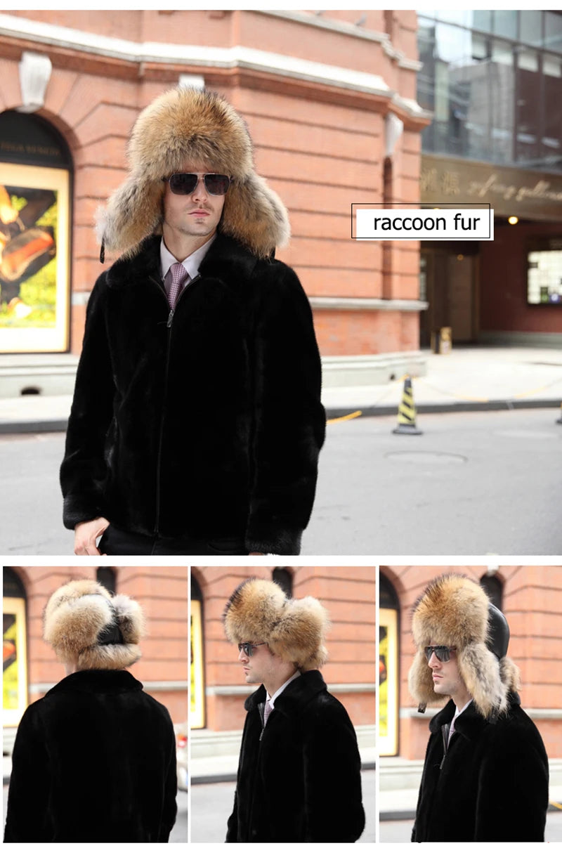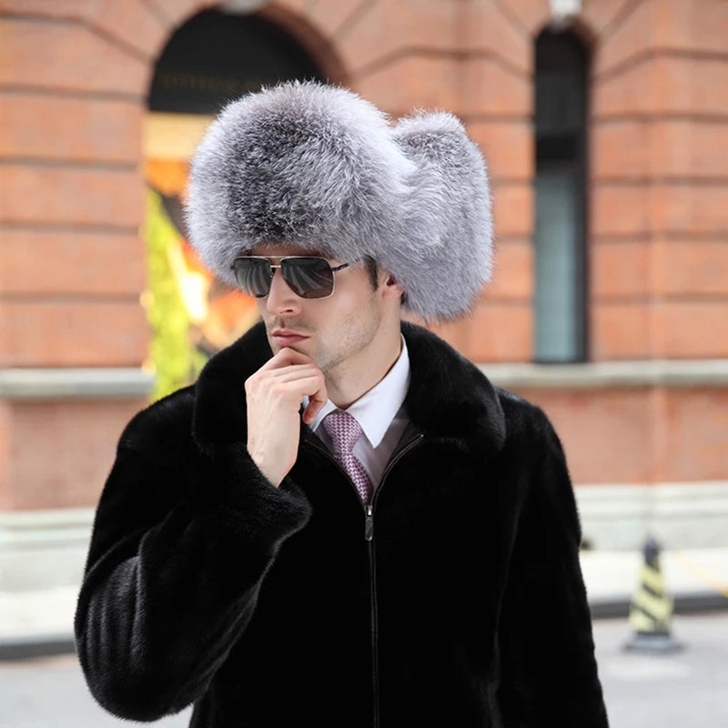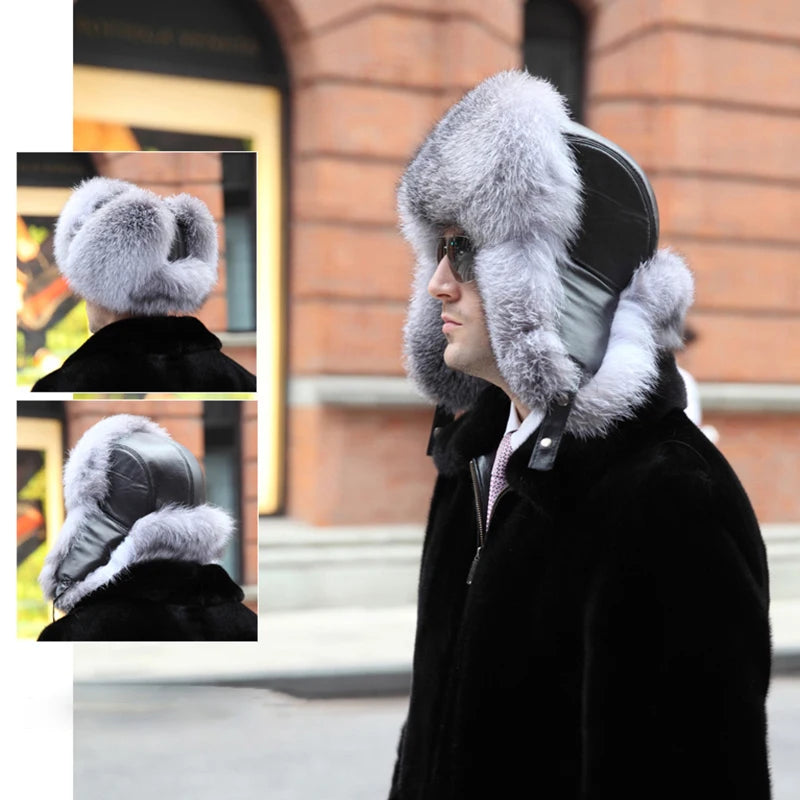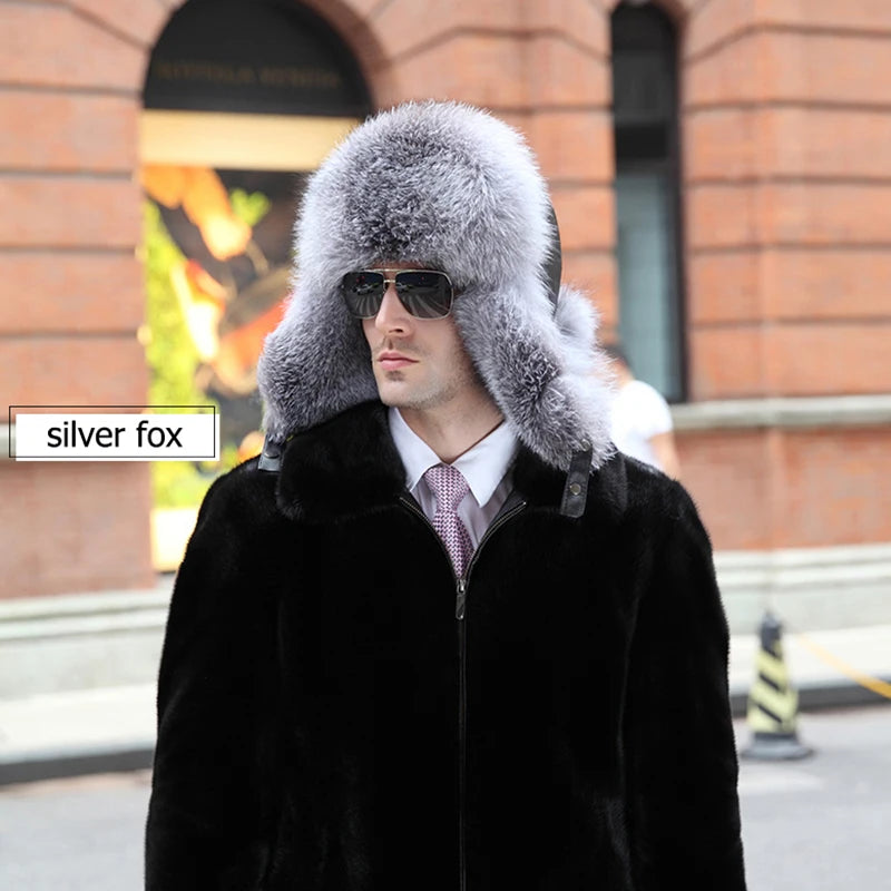 Winter Men s 100 Real Silver Fox Fur Bomber Hat Raccoon Fur Ushanka Cap Trapp...