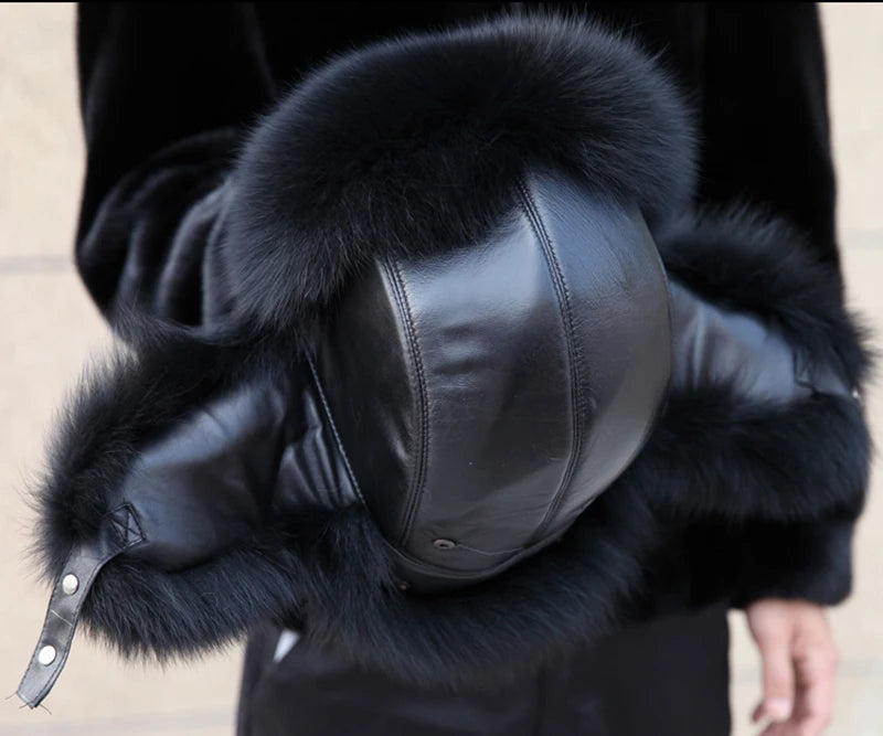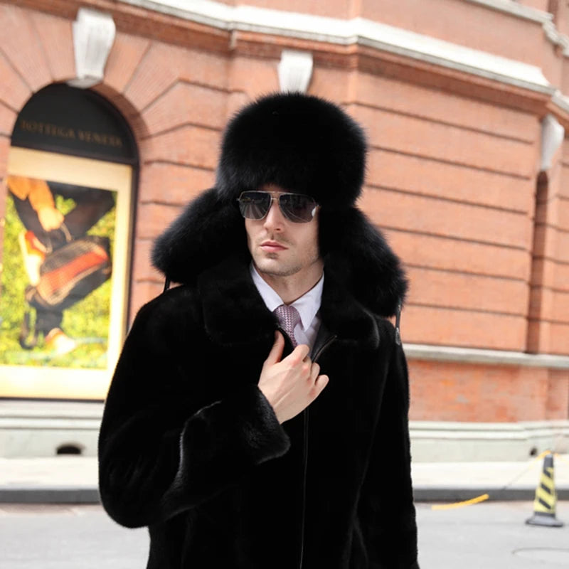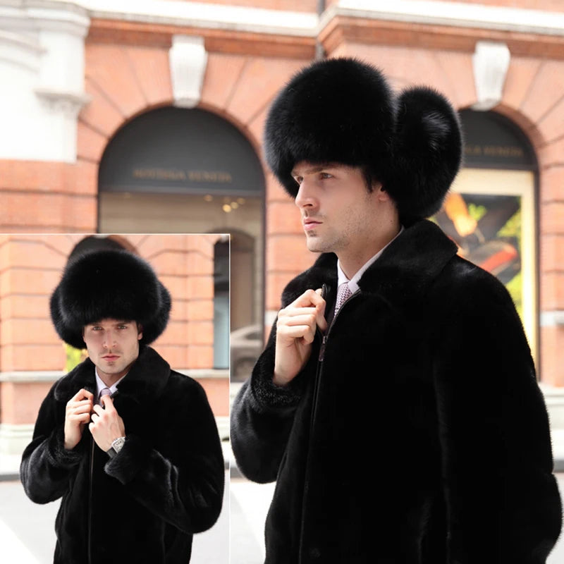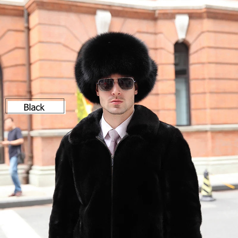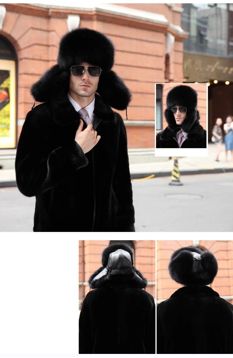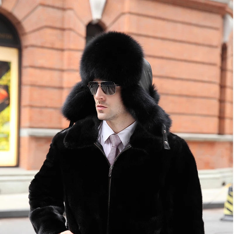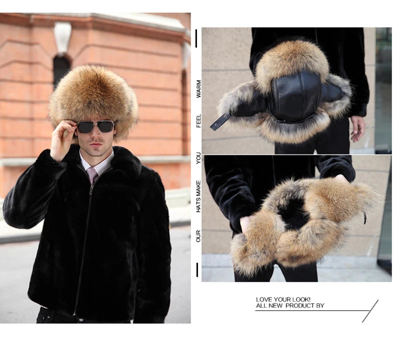 Winter Men s 100 Real Silver Fox Fur Bomber Hat Raccoon Fur Ushanka Cap Trapp...