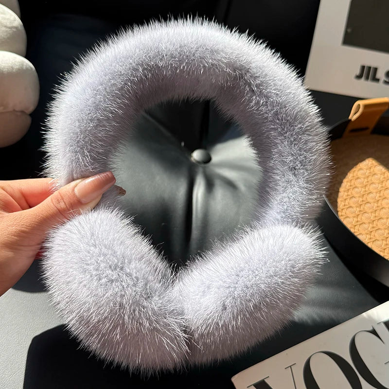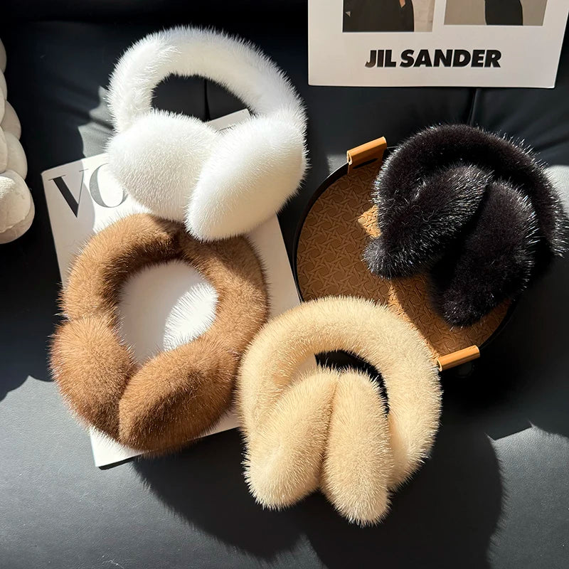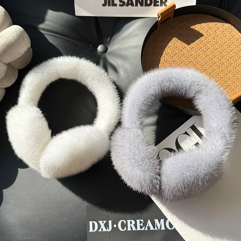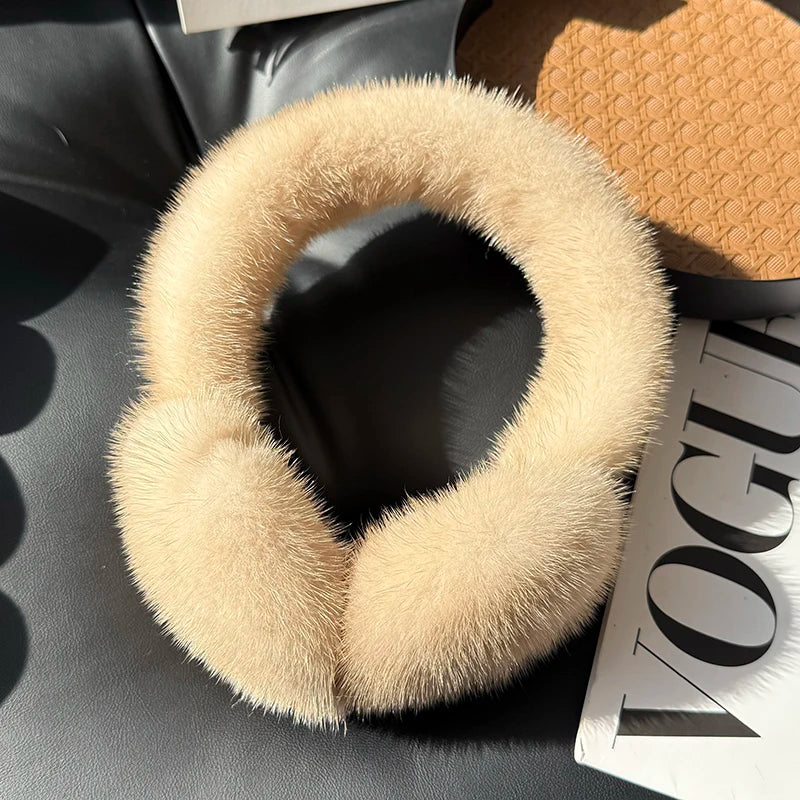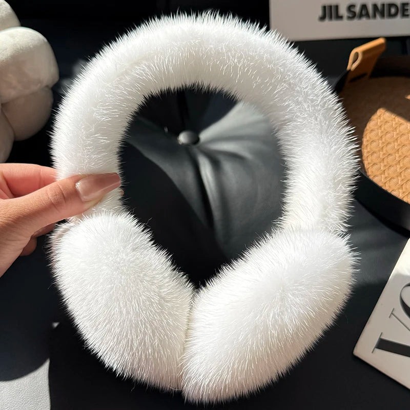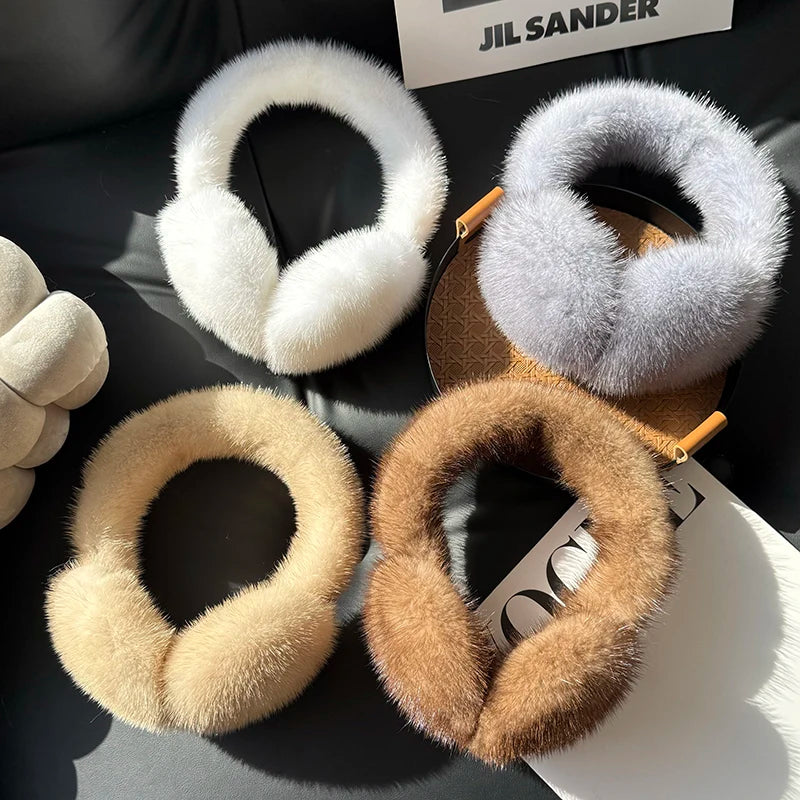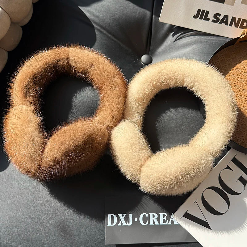 Winter Outdoor Mink Fur Earmuffs Luxury Women Keep Warm 100 Real Natural Mink...
