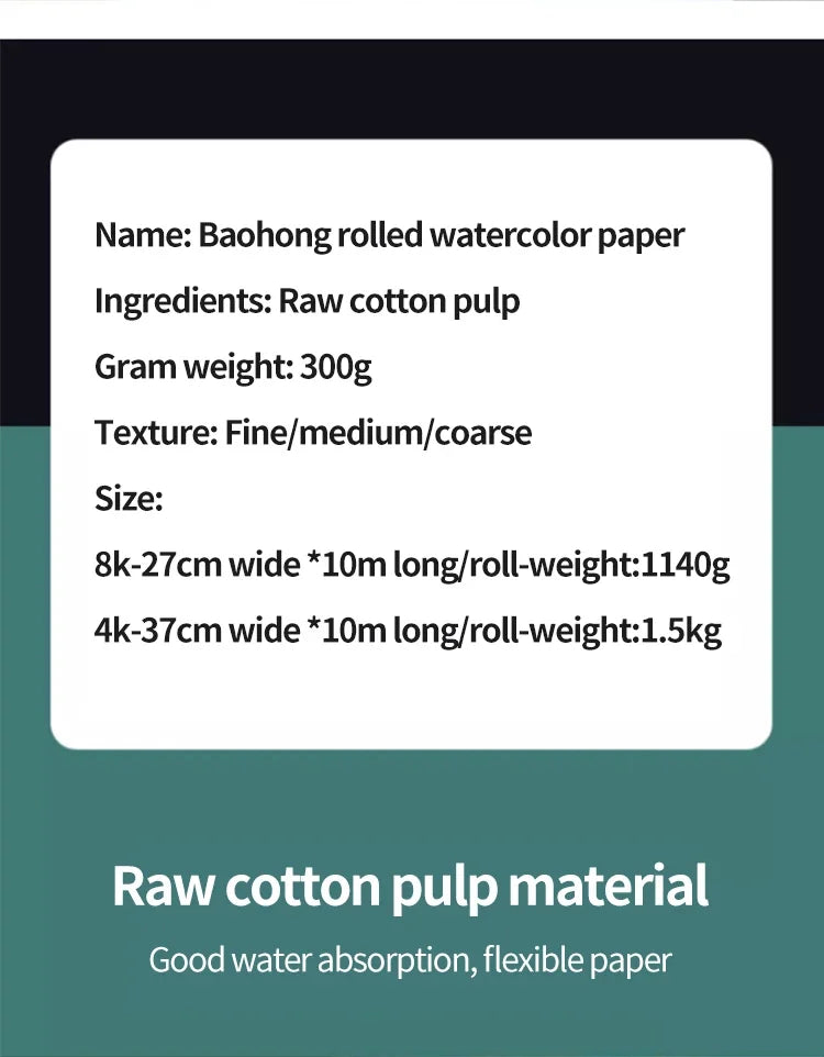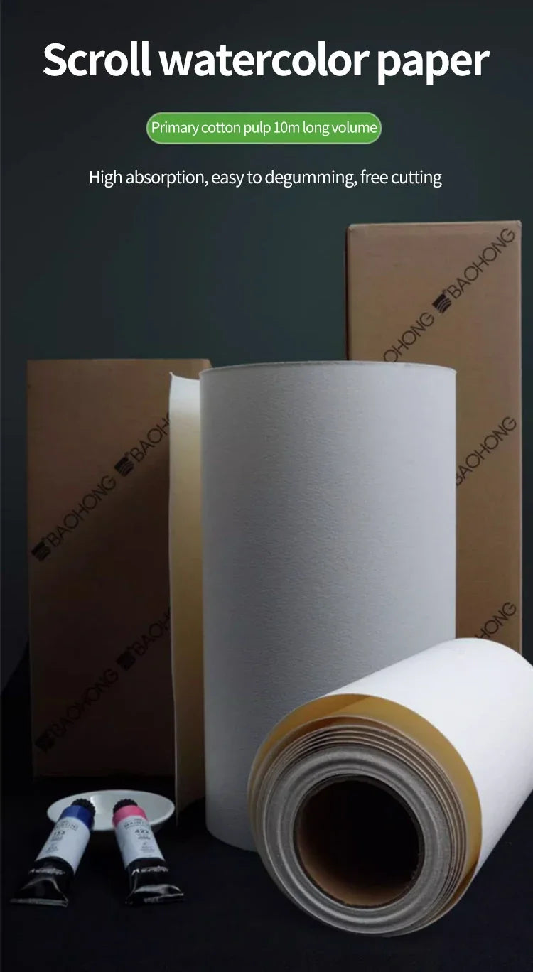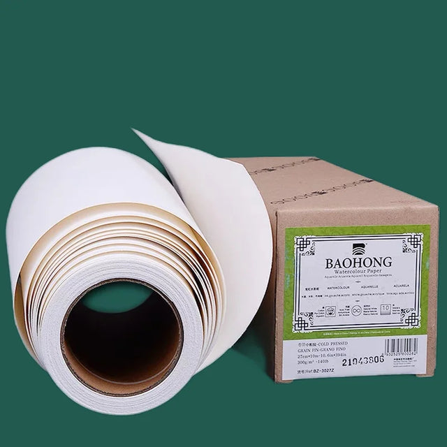 Natural White Watercolor Paper Roll, Professional Paper, Cold Press, Rough, 100% Cotton, 27cm, 37cm x 10m, 300g