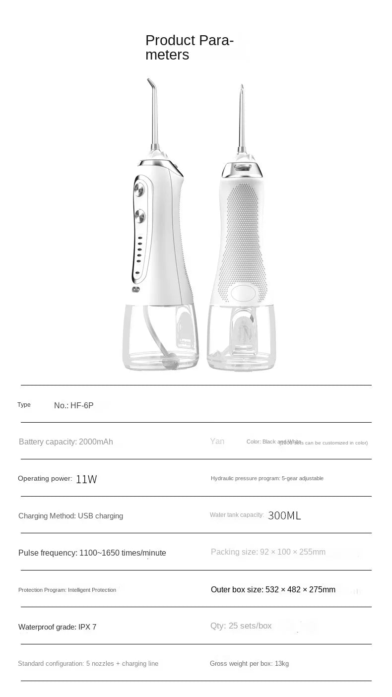 Oral irrigator USB charging water dental drill dental spray 300ml water tank
