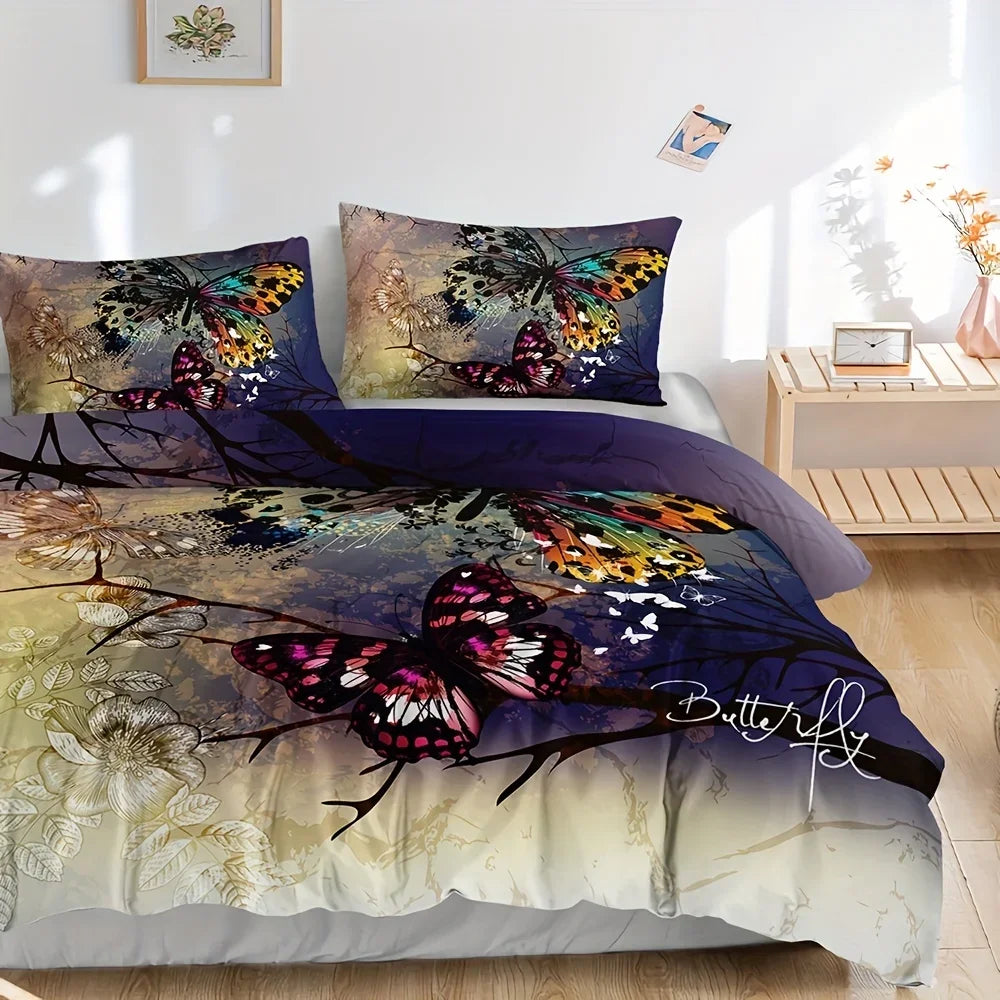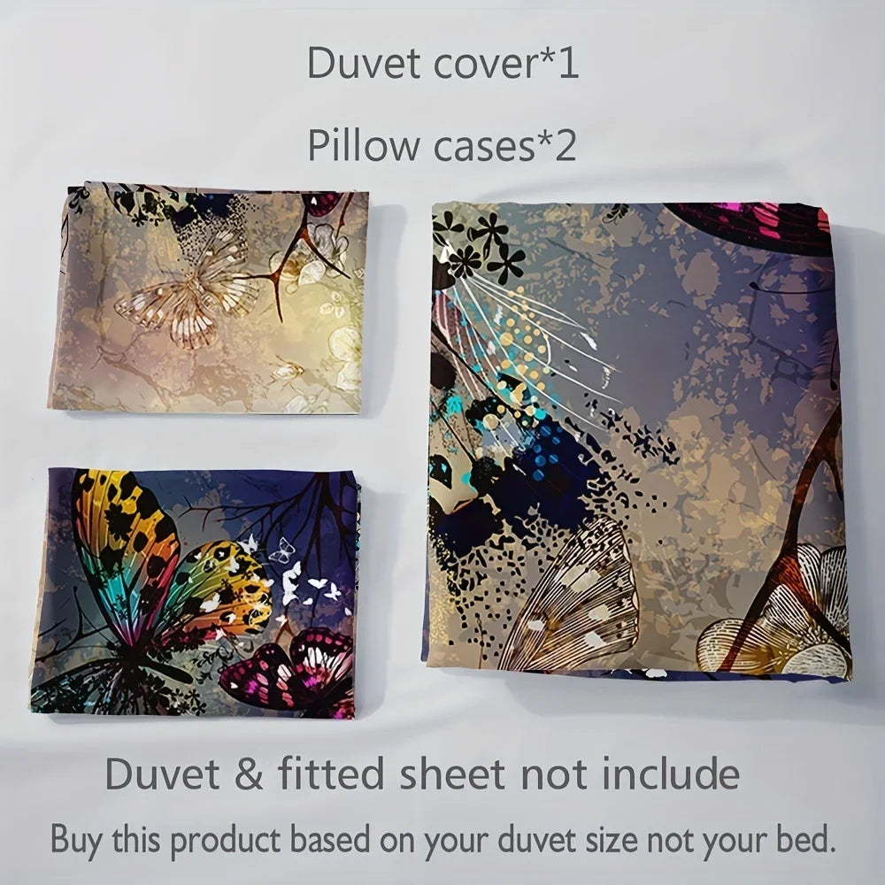 3pcs Soft Butterfly Print Duvet Cover Set for Comfortable Sleep - 3 Piece Bedding Set for Bedroom or Gues...