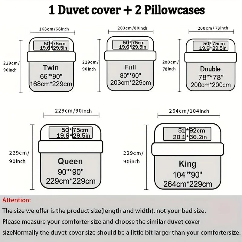 Pacakge Inculde: 1 duvet cover + 1 or 2 pillowcas