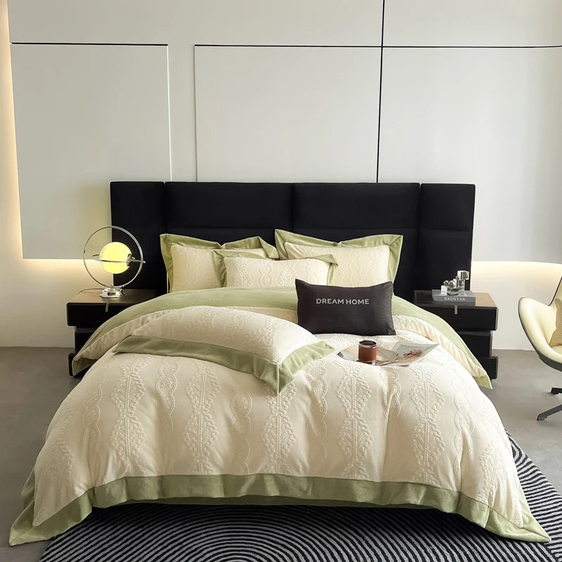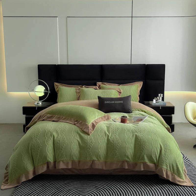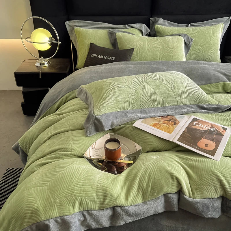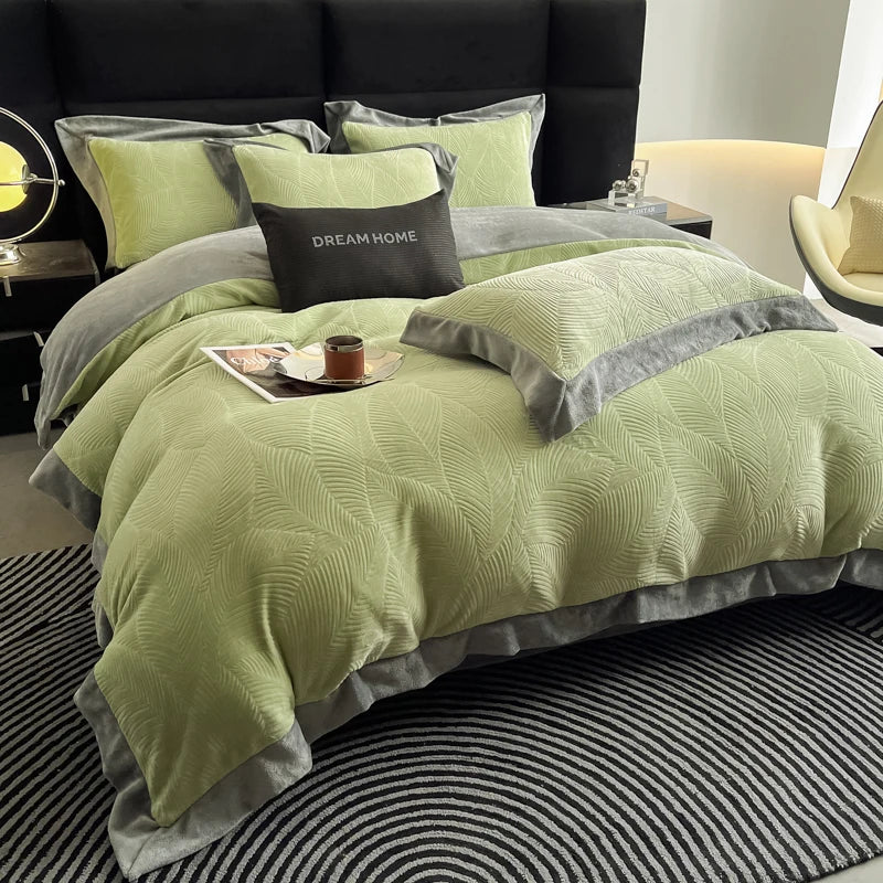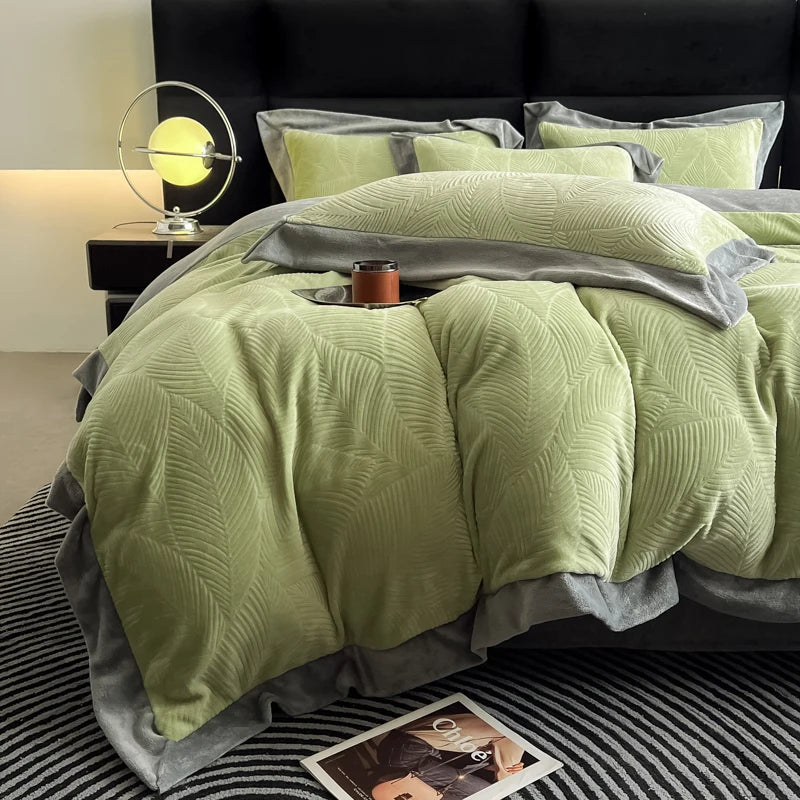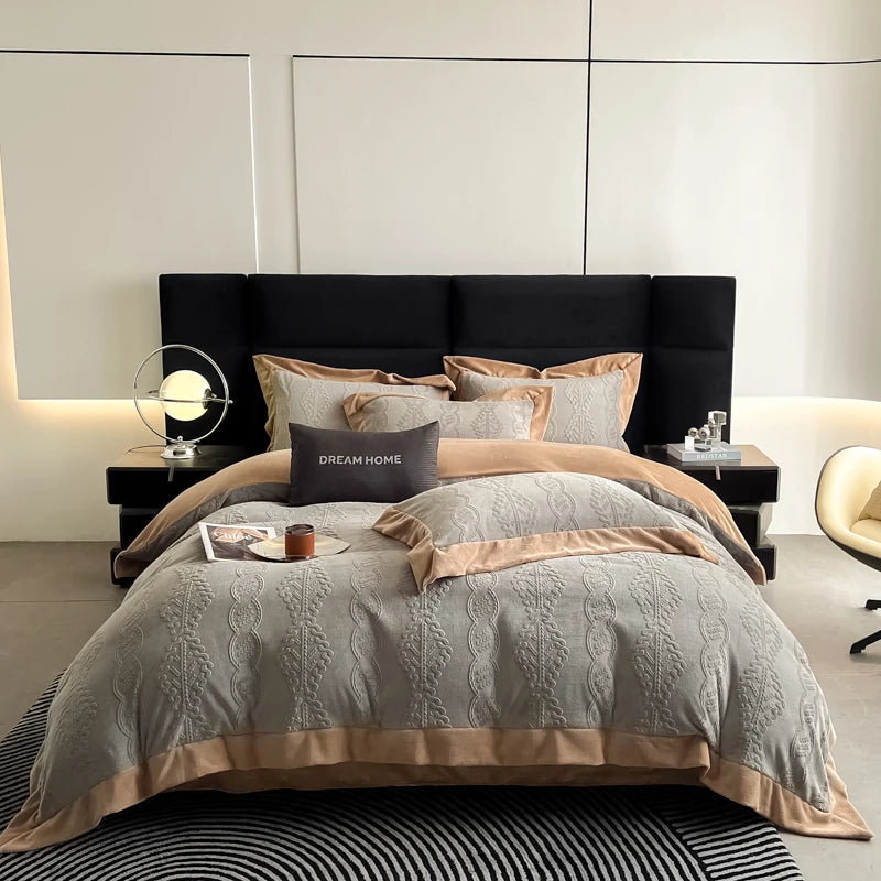 Duvet Cover Set High End 2024 New Wide Edge Carveid Velvet Bedding Set Warm And Soft For Autumn Winter C...