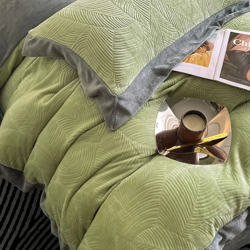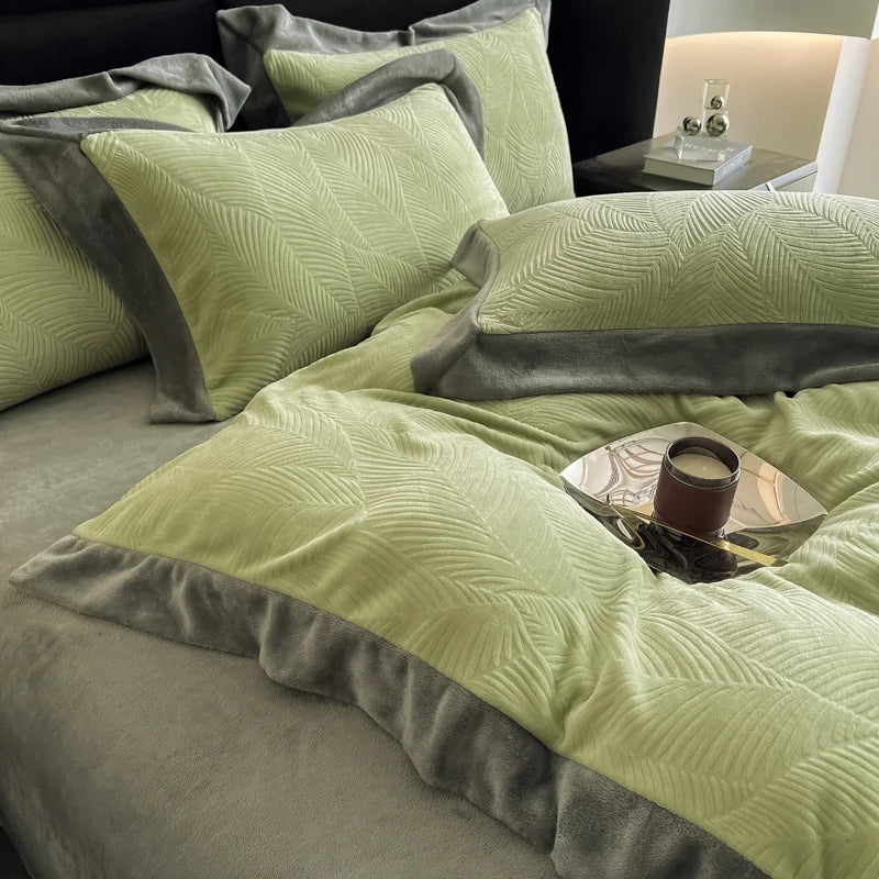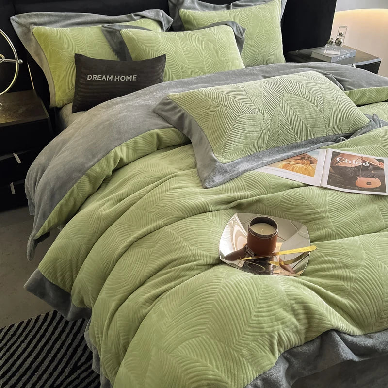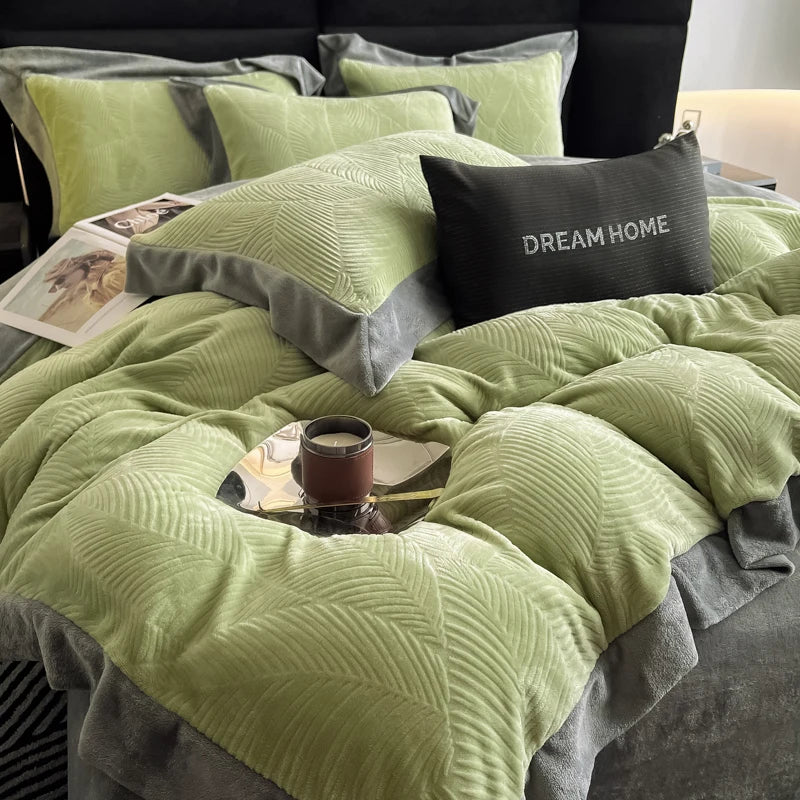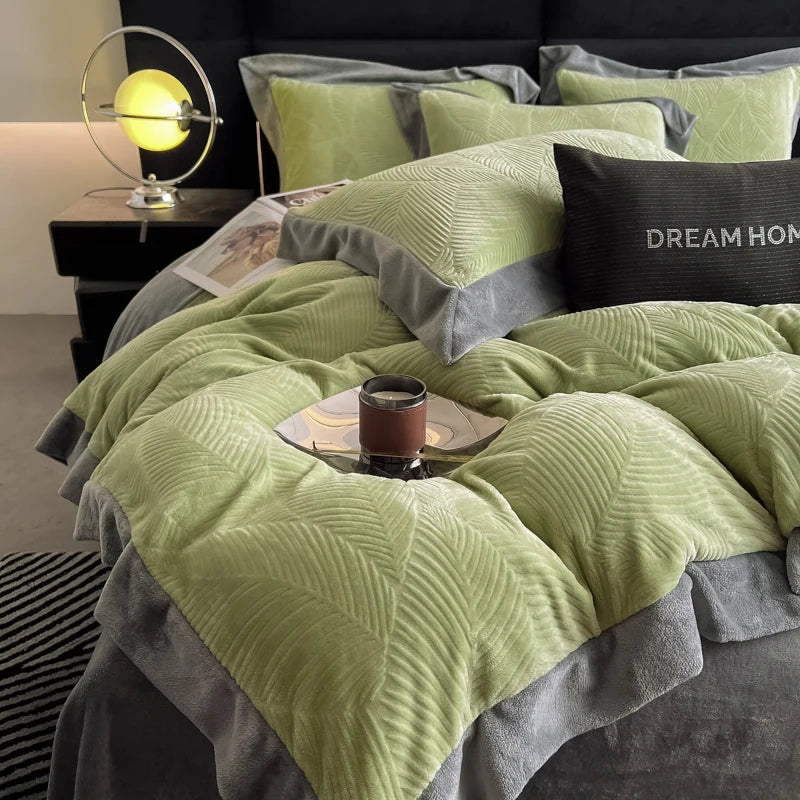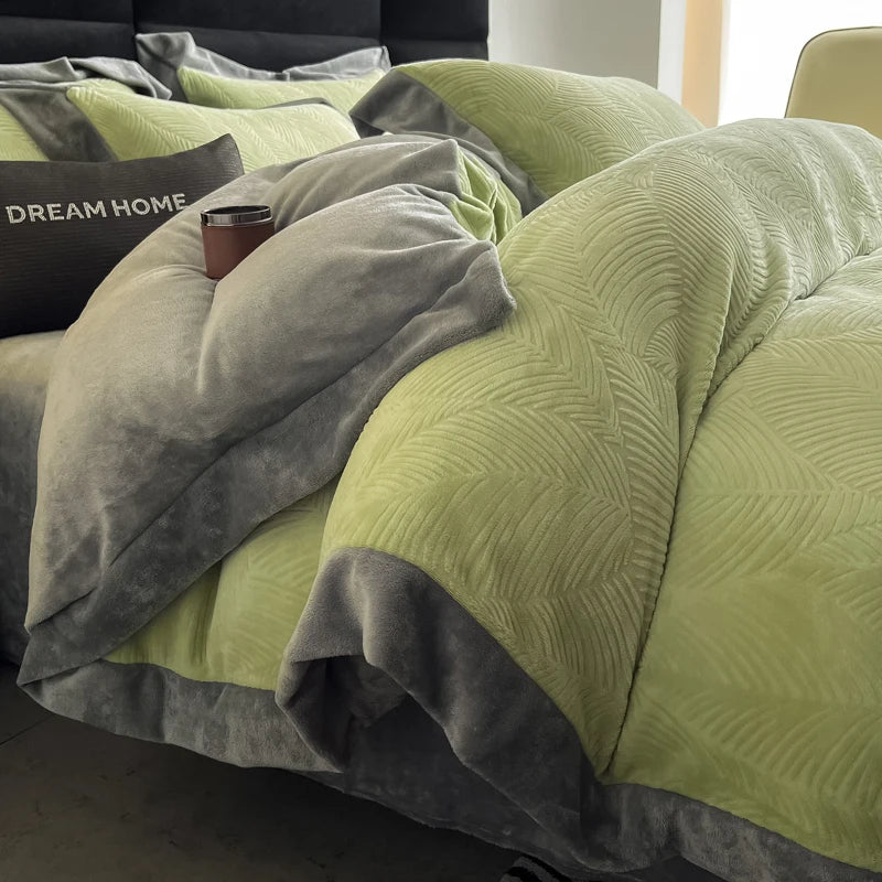 Duvet Cover Set High End 2024 New Wide Edge Carveid Velvet Bedding Set Warm And Soft For Autumn Winter C...