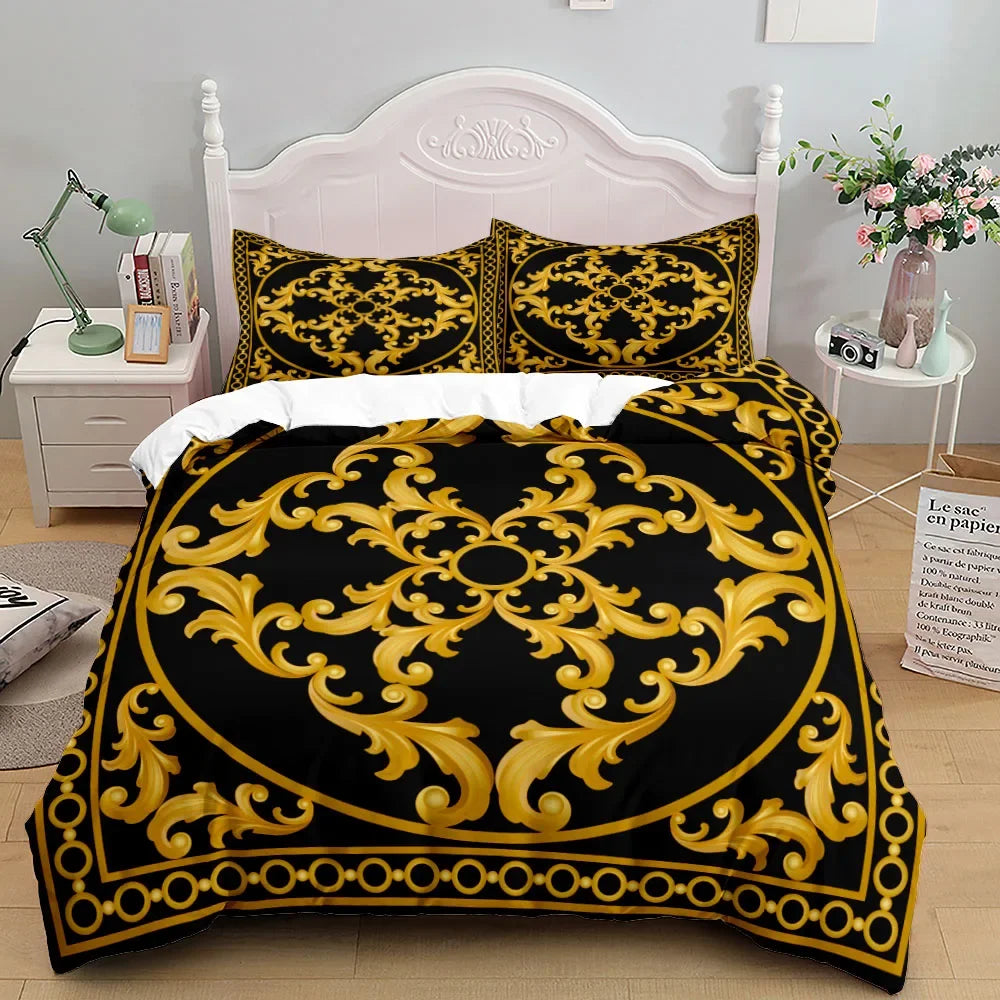 Luxury Baroque Pattern Bedding Set Golden Duvet cover set Twin Double Queen King Size Comforter cover set...