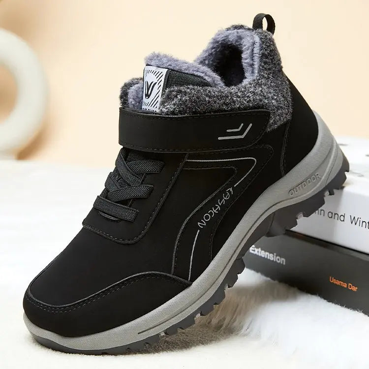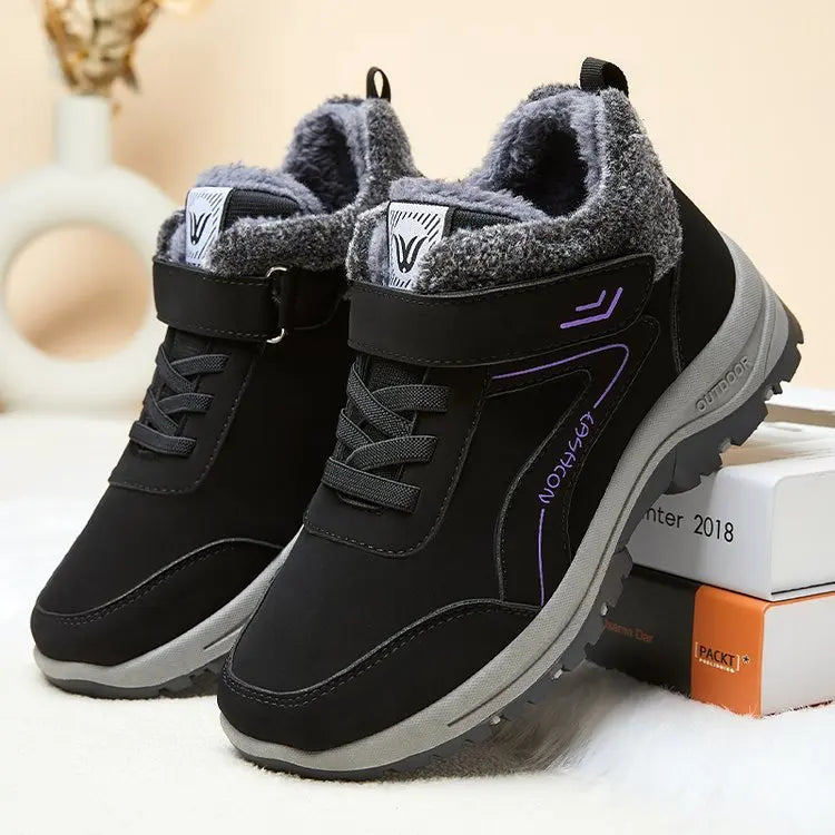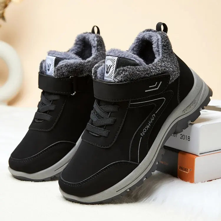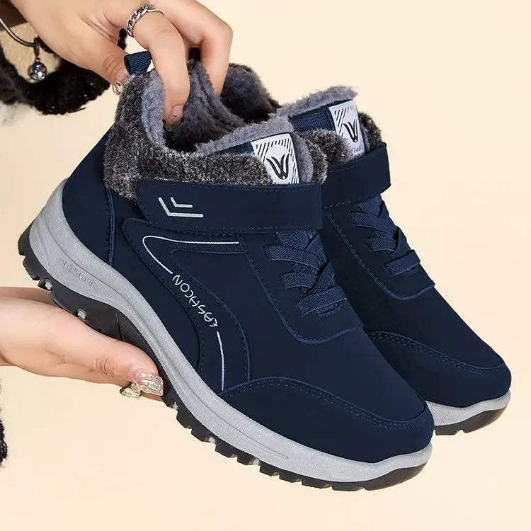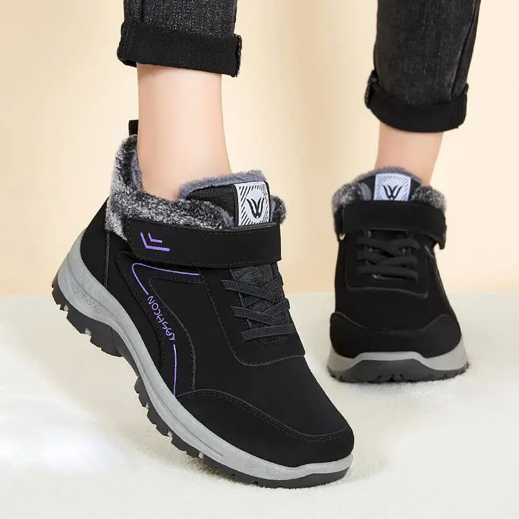 2025 Winter Leather Boots Women Boot Plush Keep Warm Sneakers Outdoor Ankle Snow Boots Casual Shoes