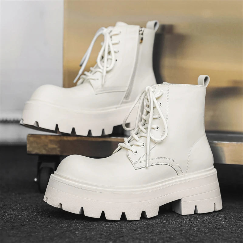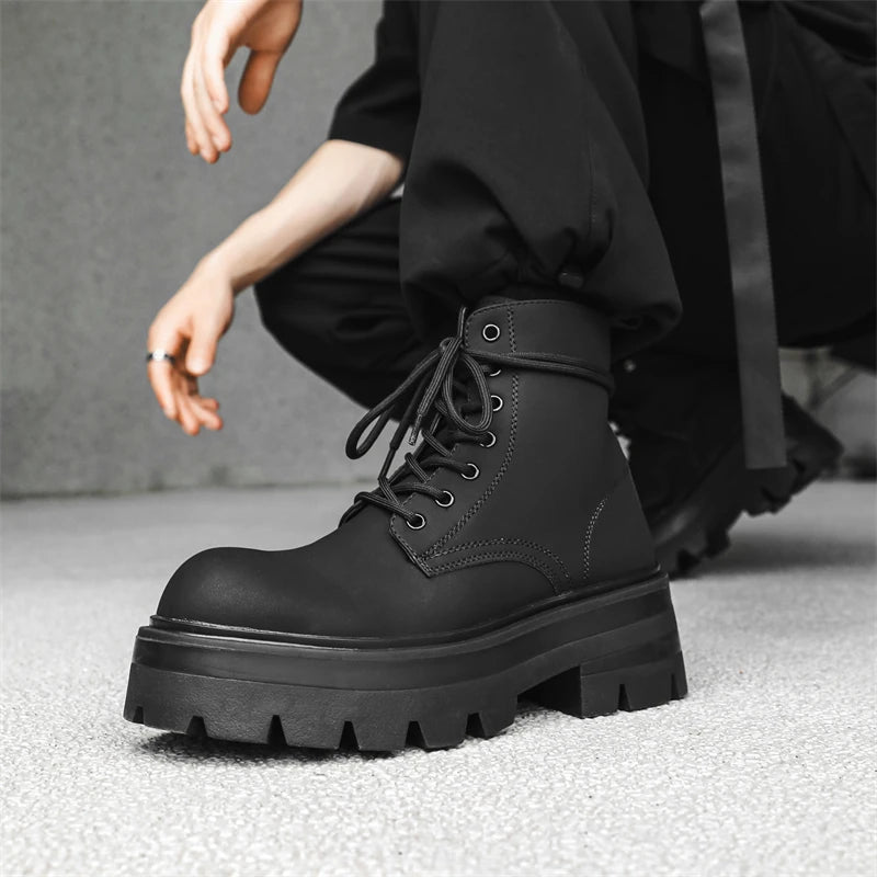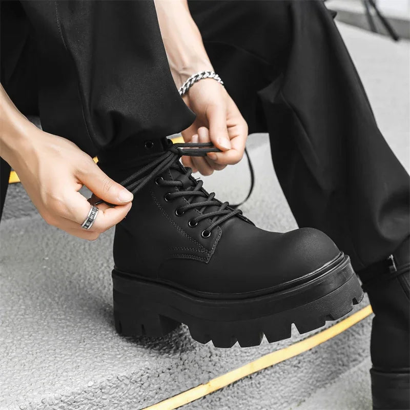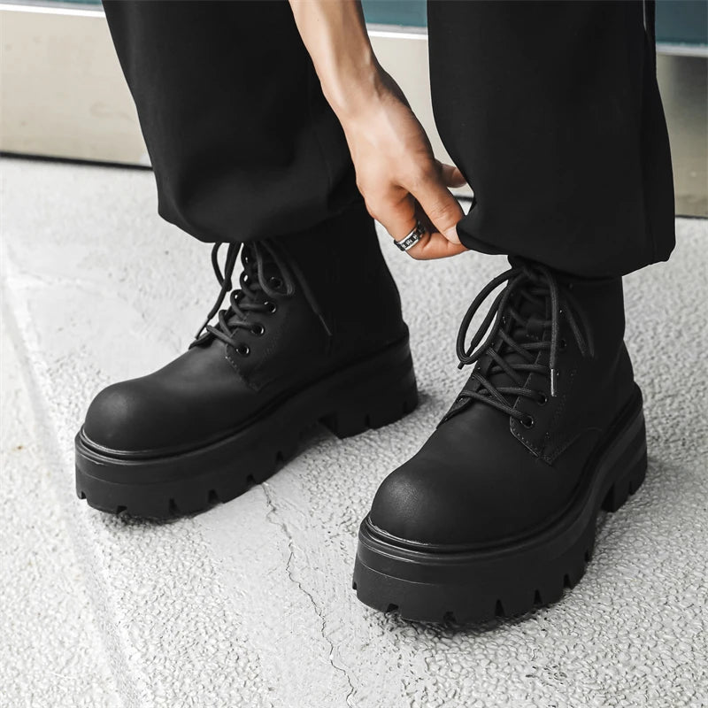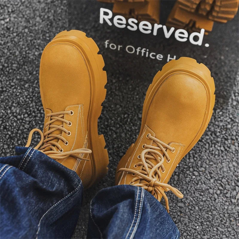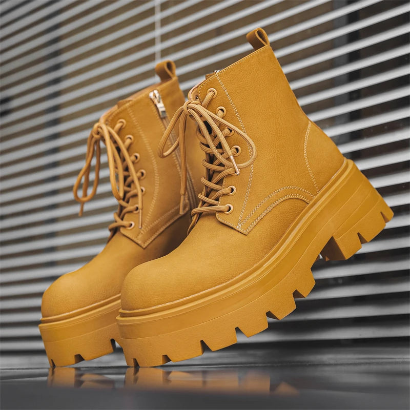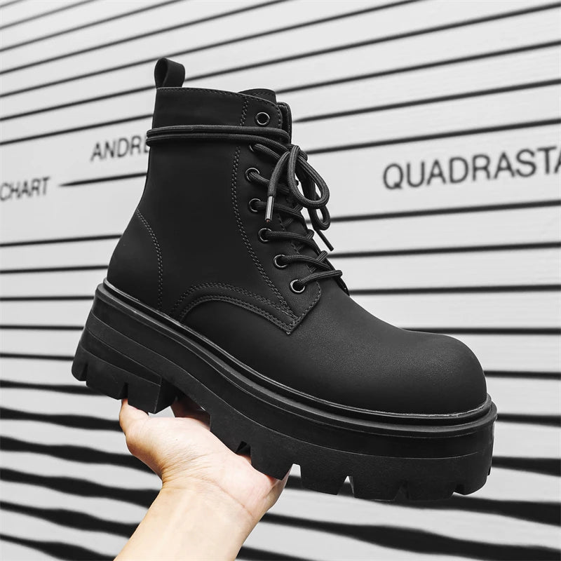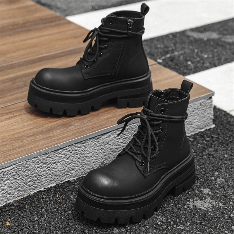 Autumn Men Casual Platform Boots Lace Up Sneakers Plush Chunky Ankle Boots Ou...