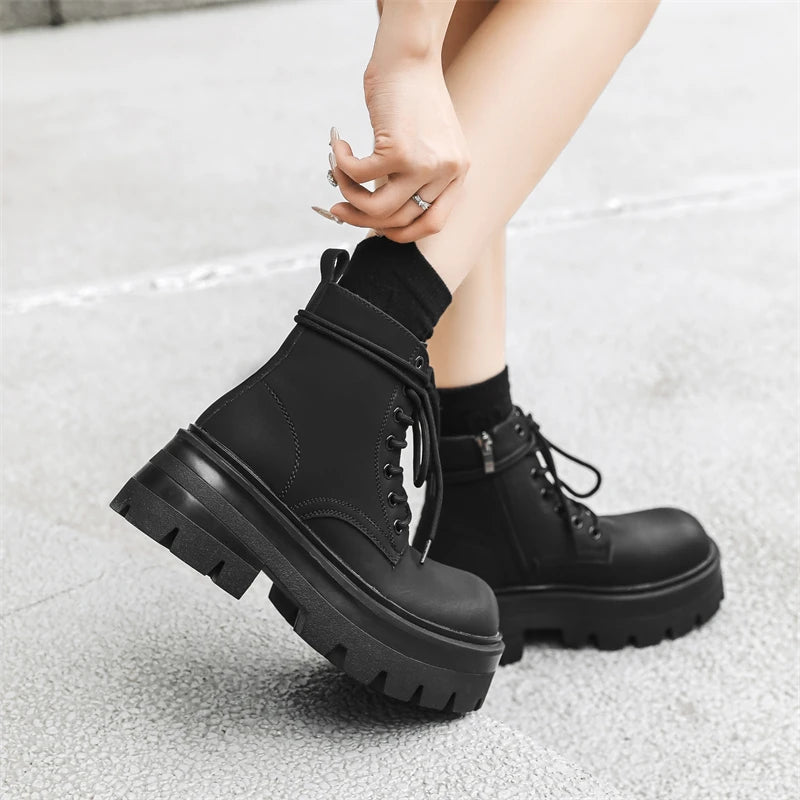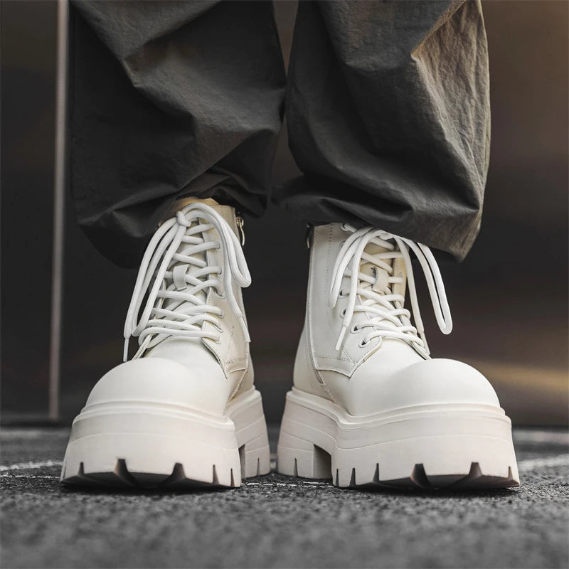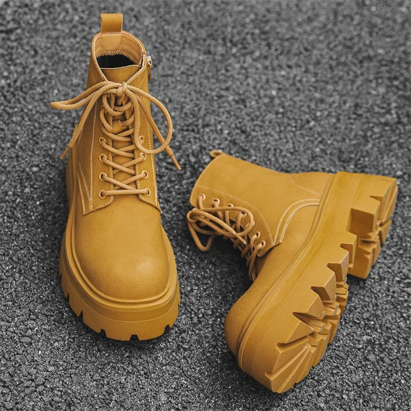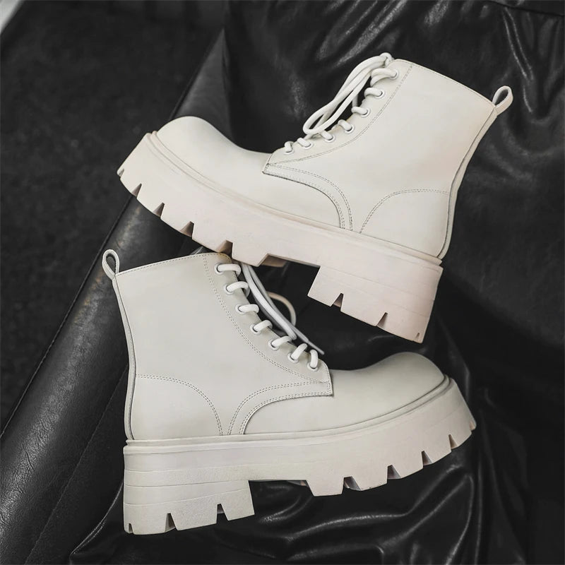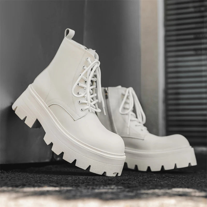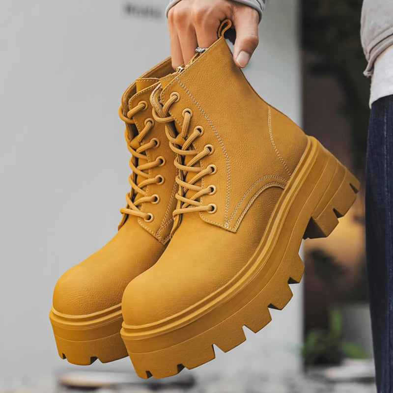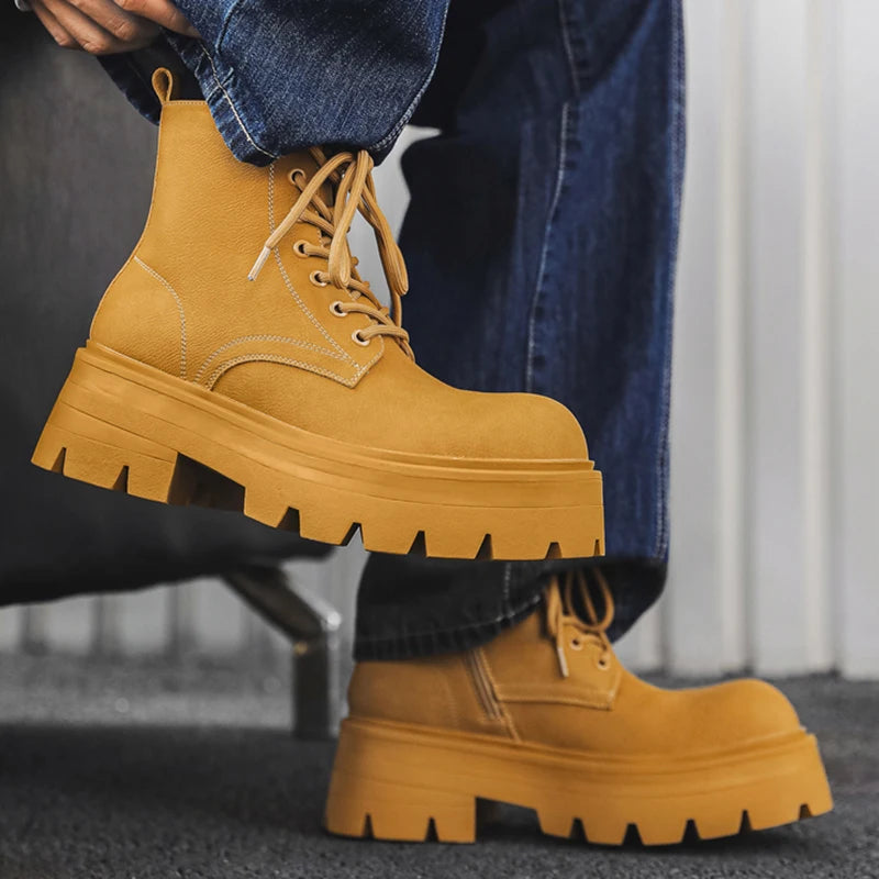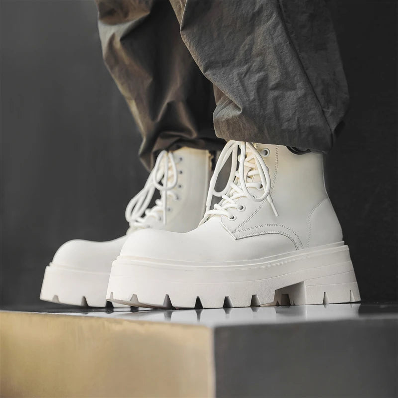 Autumn Men Casual Platform Boots Lace Up Sneakers Plush Chunky Ankle Boots Ou...