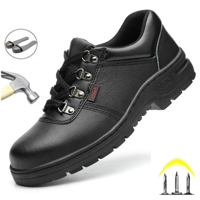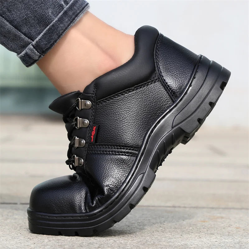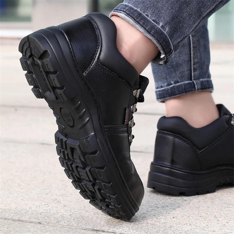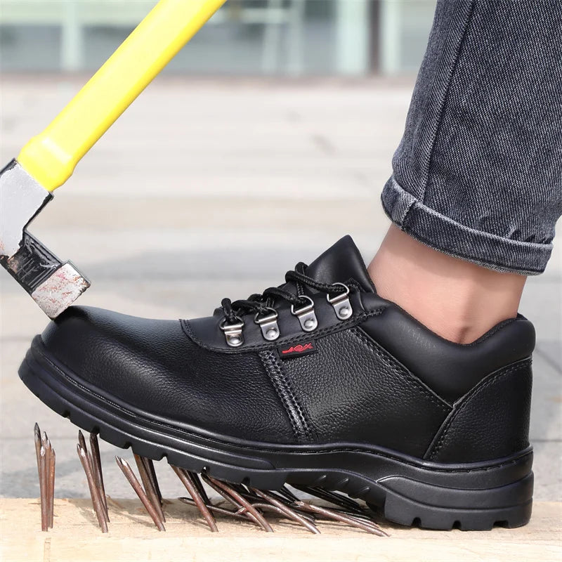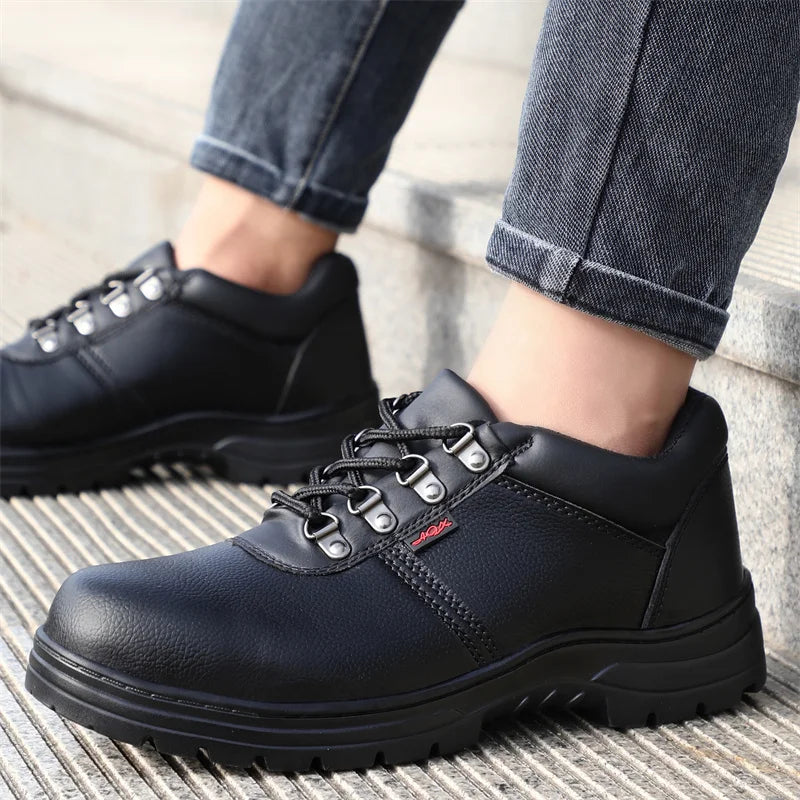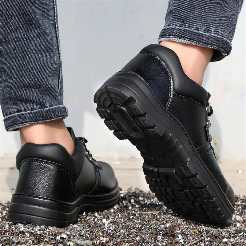 Black Leather Men Work Safety Shoes Steel Toe Cap Anti Smashing and Anti Piercing Construction Labor Prot...