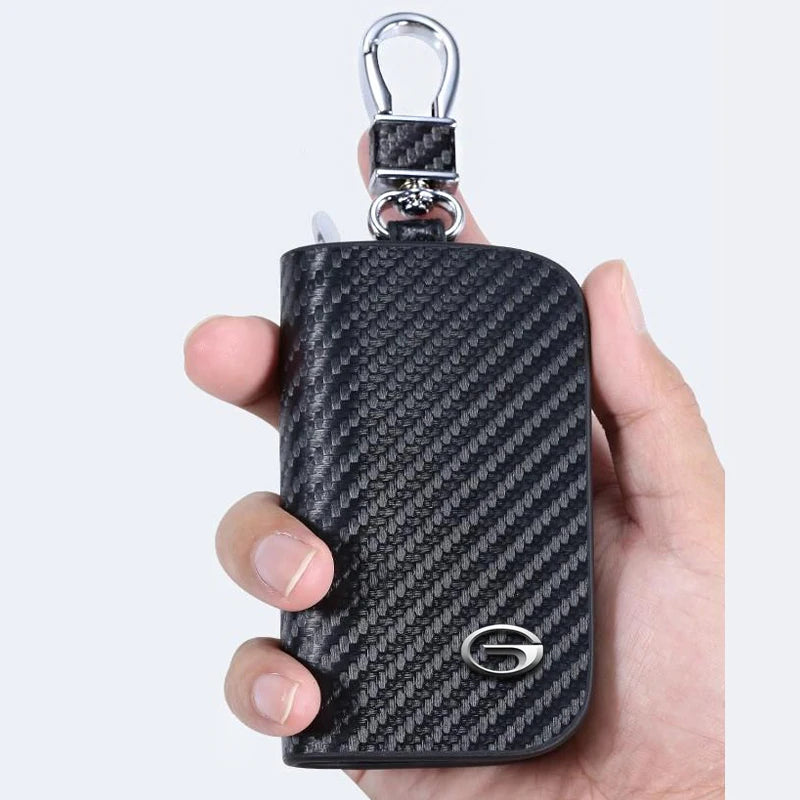 Carbon Fiber Pattern Leather Car Key Case Zipper Key Cover for GAC M8 GS7 GA6...