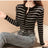 HELIAR Women T-shirts Elegant Stripes Knitted Tees Button...