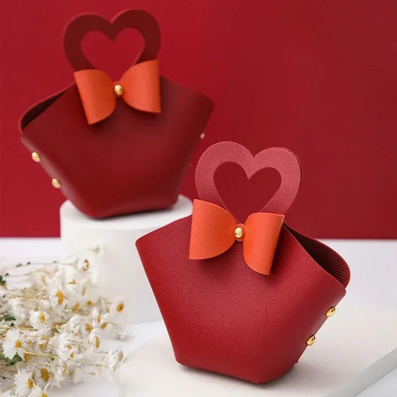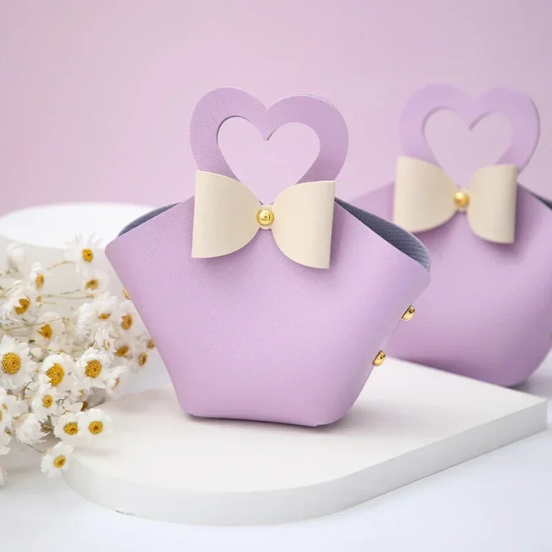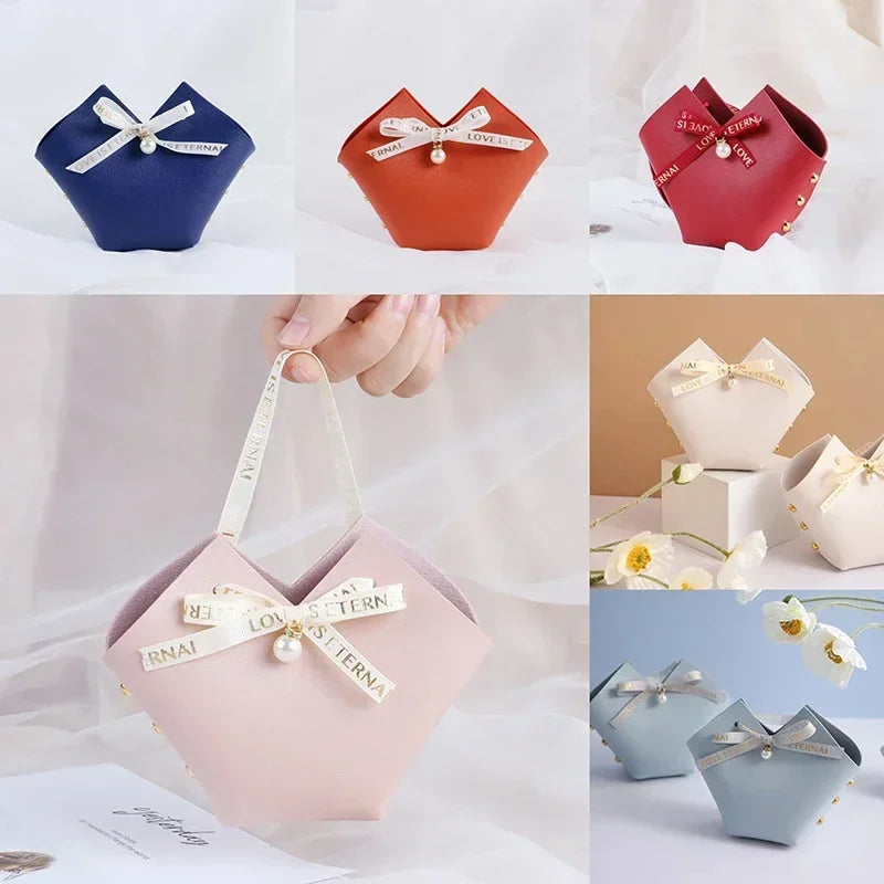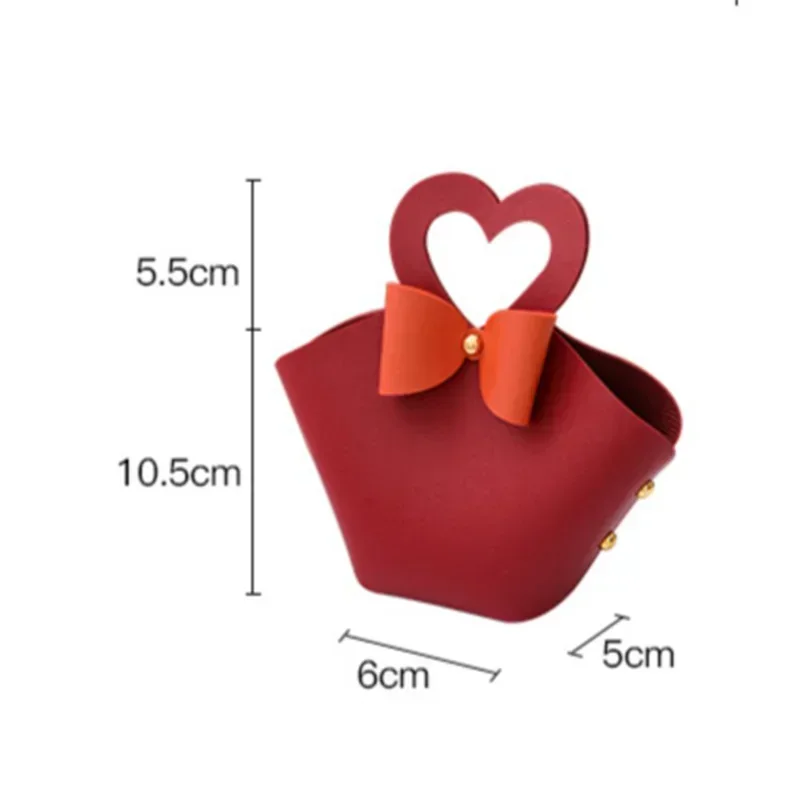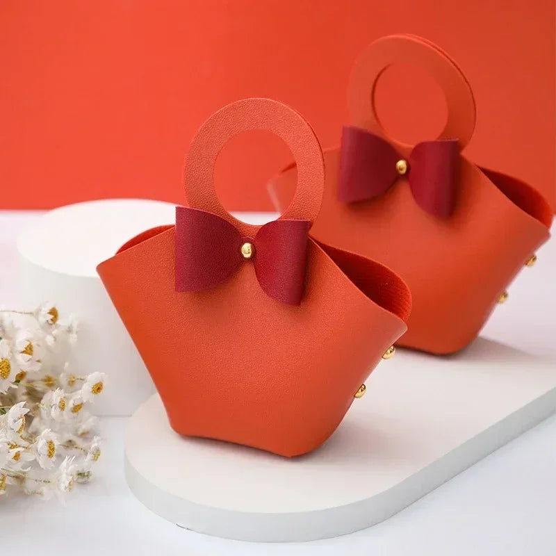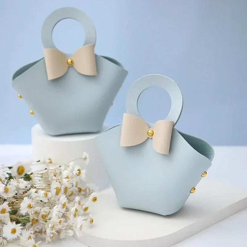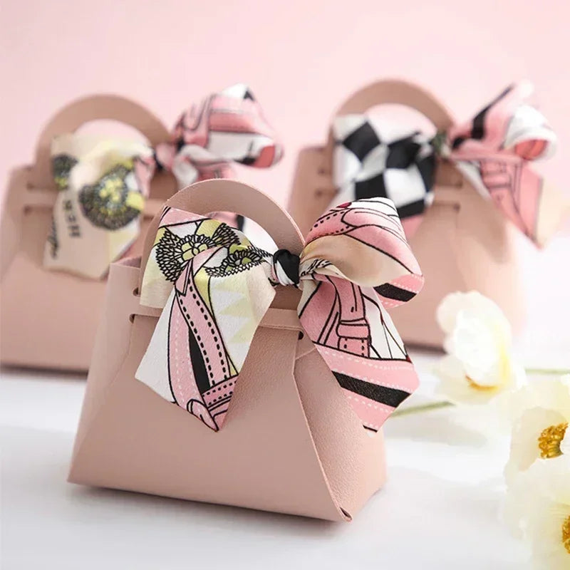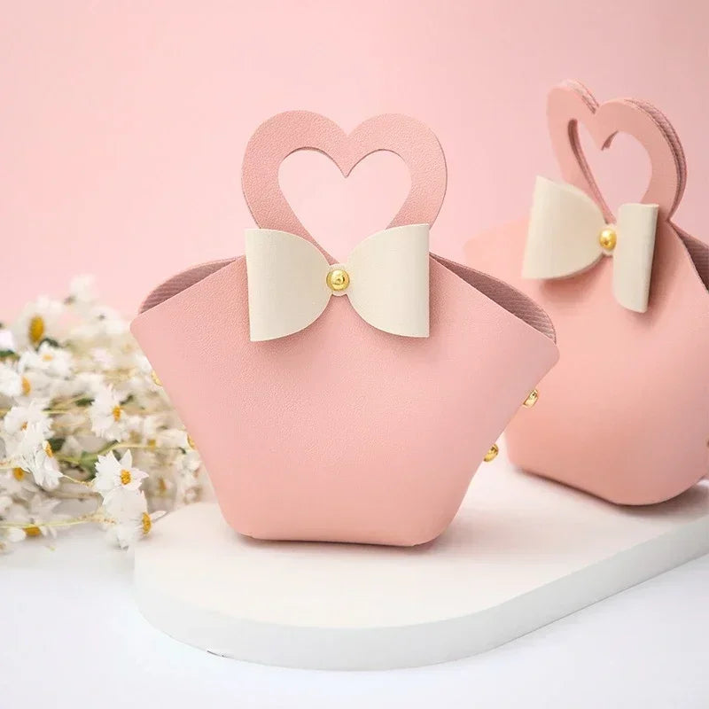 10PCS Distribute Leather Pink Gift Bags Wedding Favour Bag for Guest Mini Handbag with Ribbon Candy Packa...