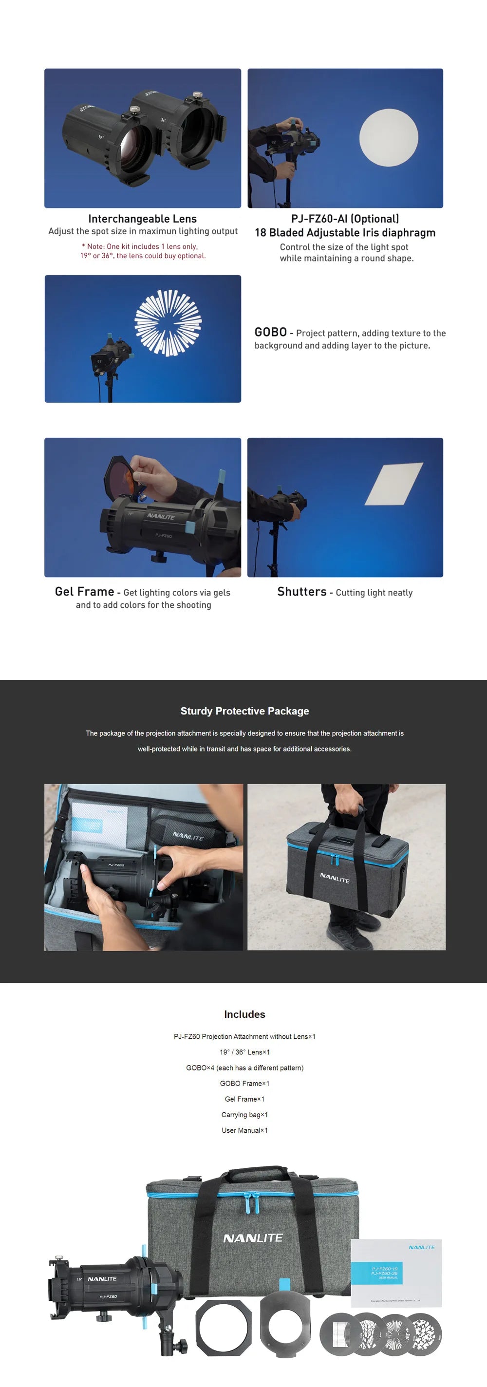 Nanlite PJ Fz60 Dedicated Imaging Lens Lighting Modifiers Projection Spotlight