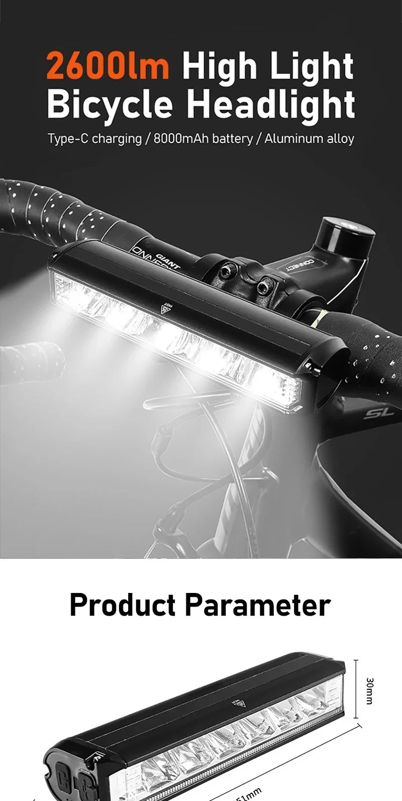 Bicycle Light 8000mAh Eos610 640 Bike Light Waterproof Flashlight USB Charging