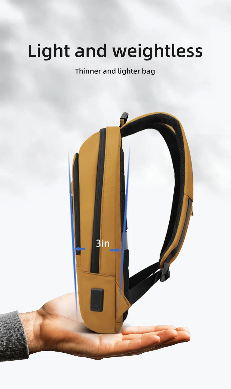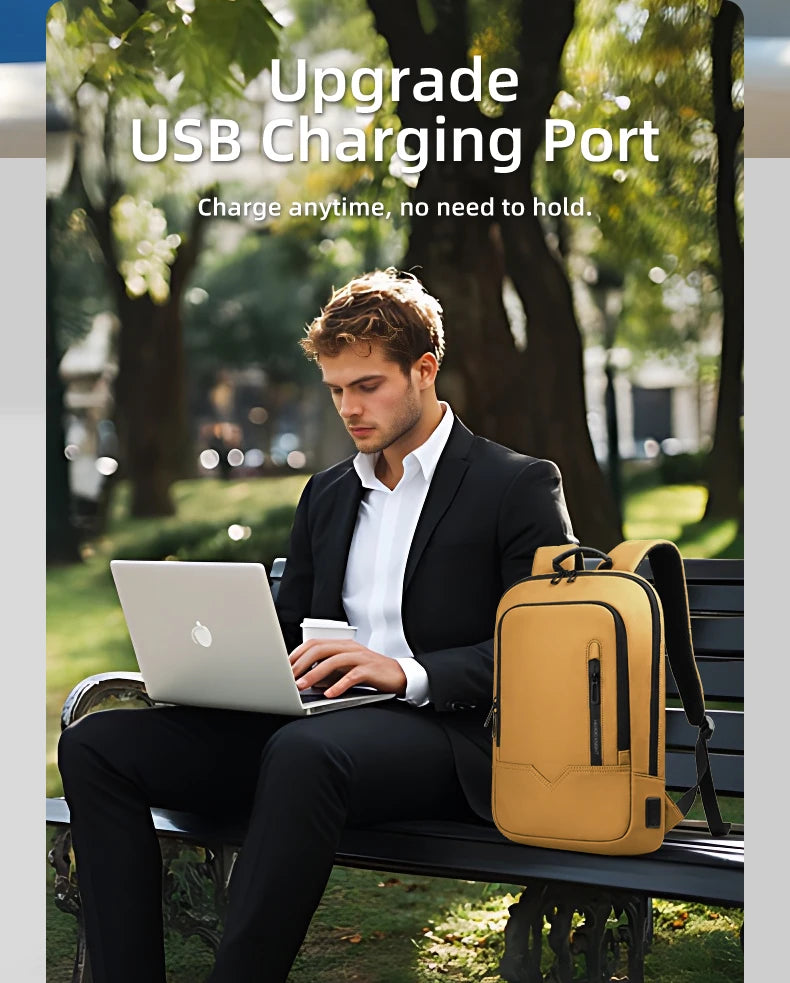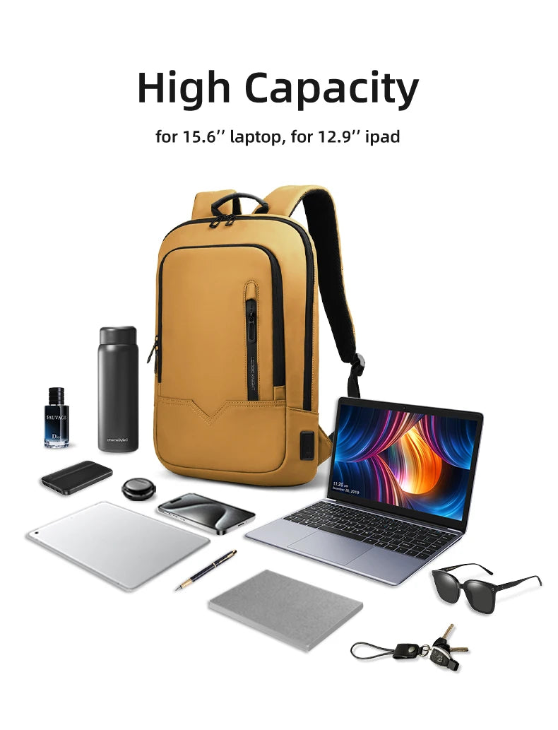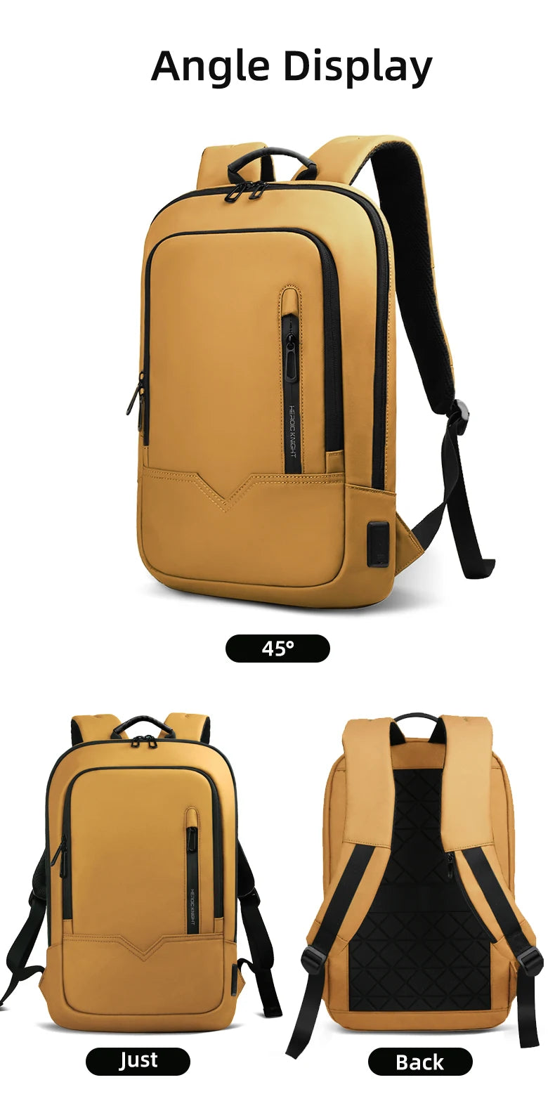 HcanKcan Slim 15.6'' Laptop Backpack For Men Waterproof Business Work Bag Fashion Travel Backpack USB Charging Minimalist Pack