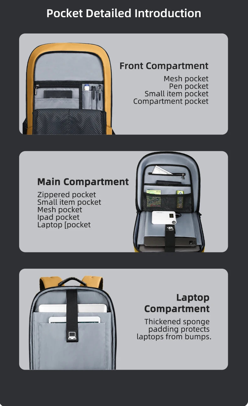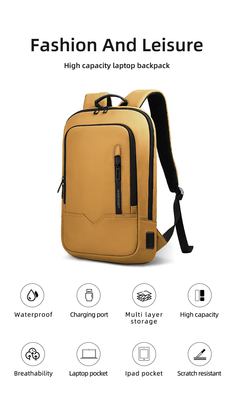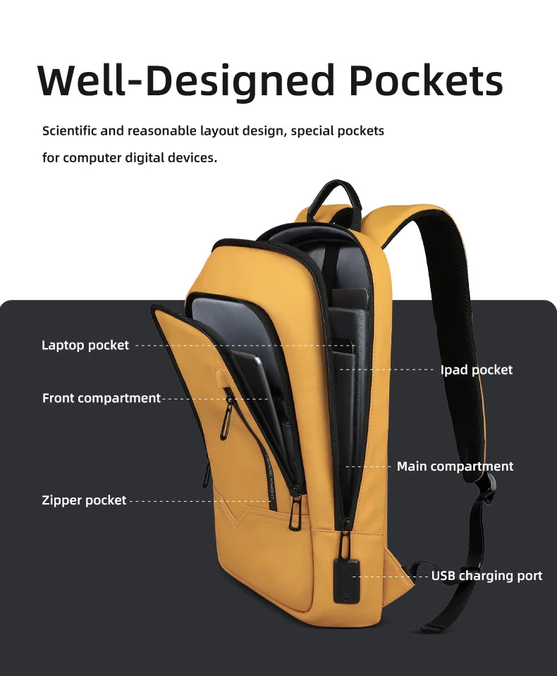 HcanKcan Slim 15.6'' Laptop Backpack For Men Waterproof Business Work Bag Fashion Travel Backpack USB Charging Minimalist Pack