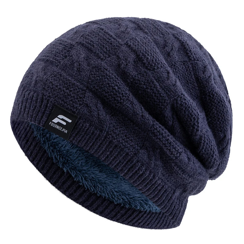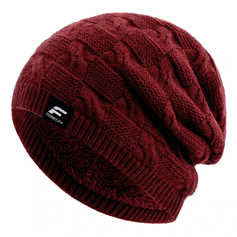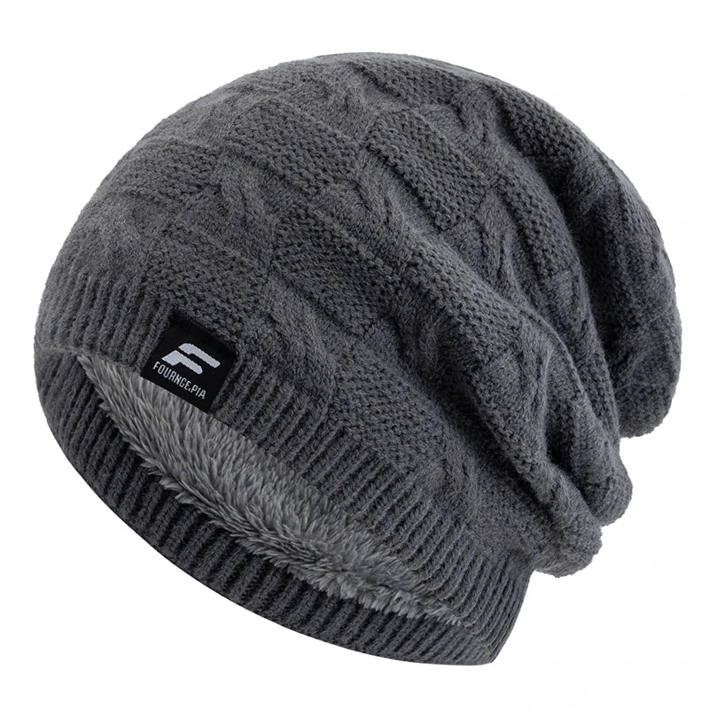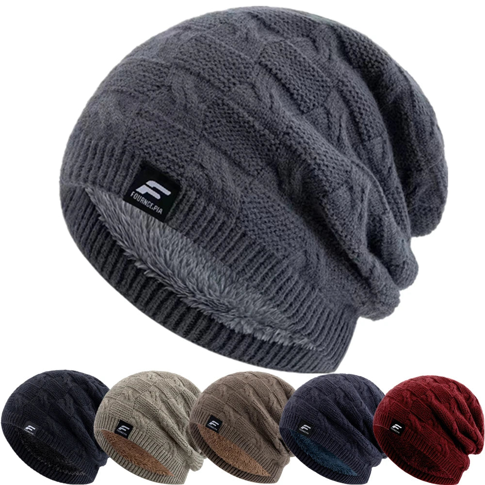 Unisex F Letter Winter Hats Plush Fur Lined Knit Cap For Men Women Warm Beani...