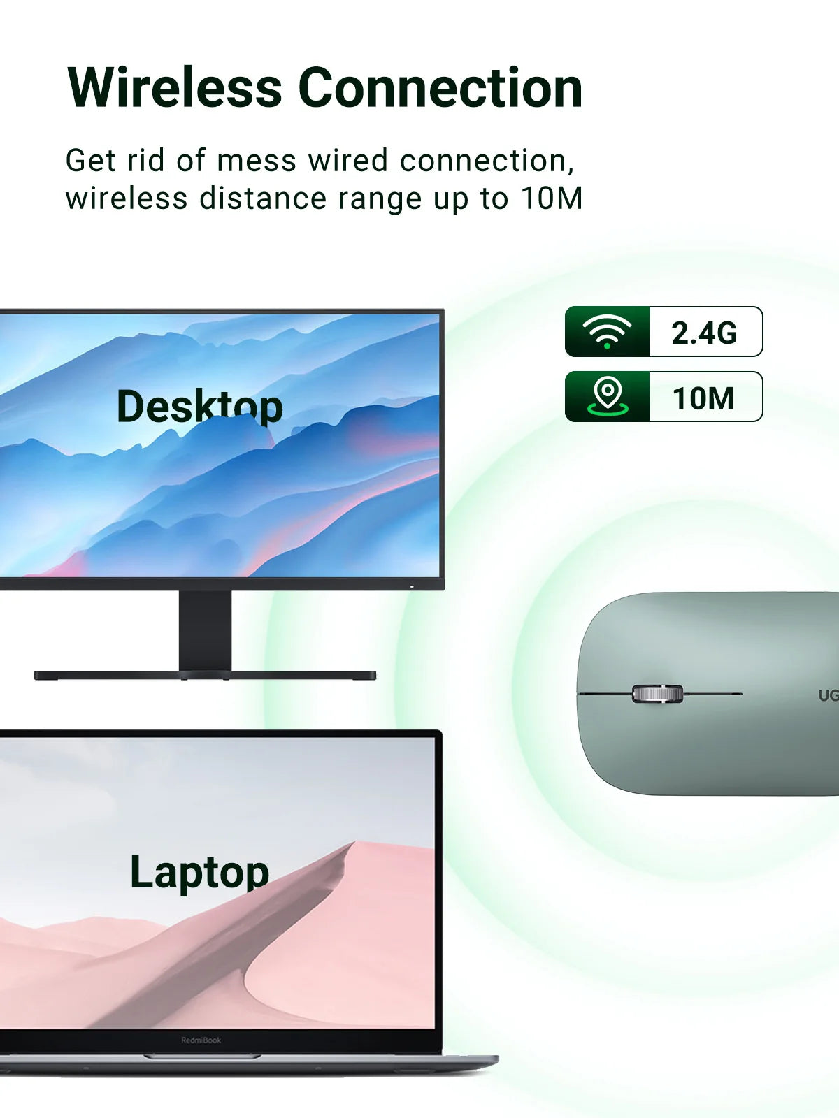 UGREEN Mouse 4000 DPI Wireless Mice 40db Silent Click For MacBook Pro M1 M2 iPad Tablet Computer Laptop P...
