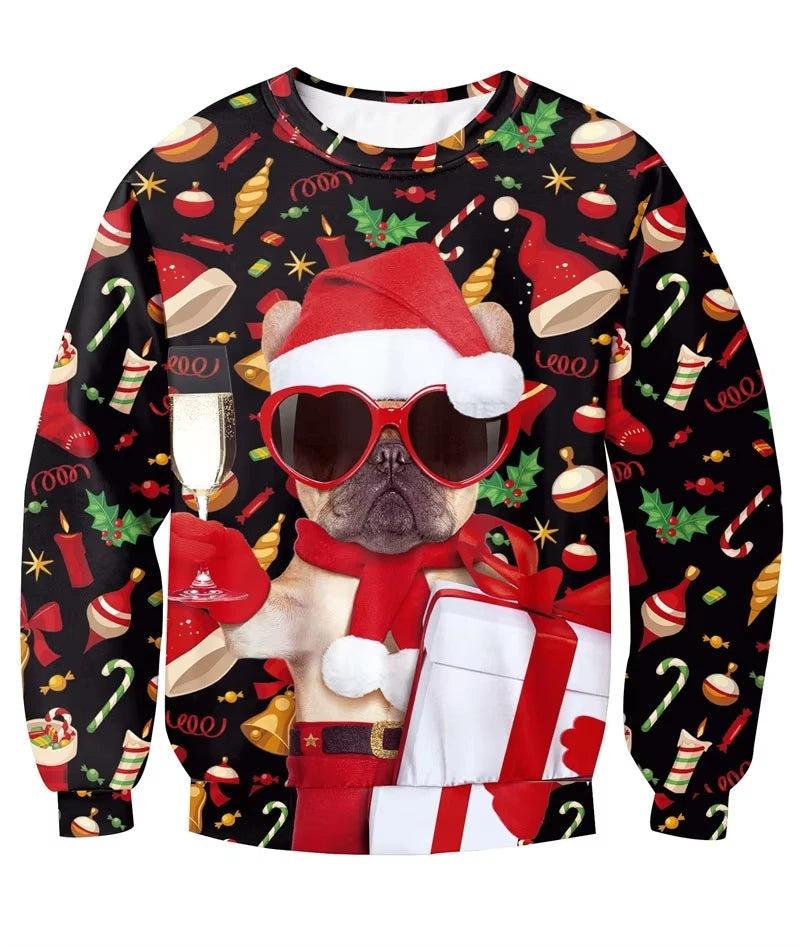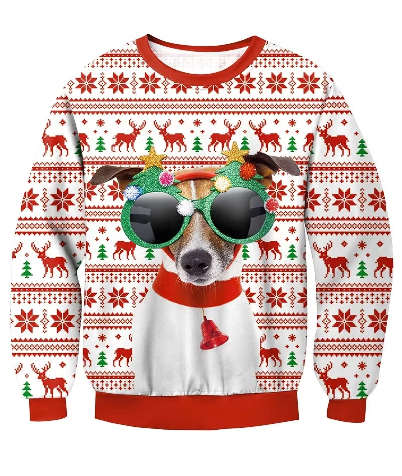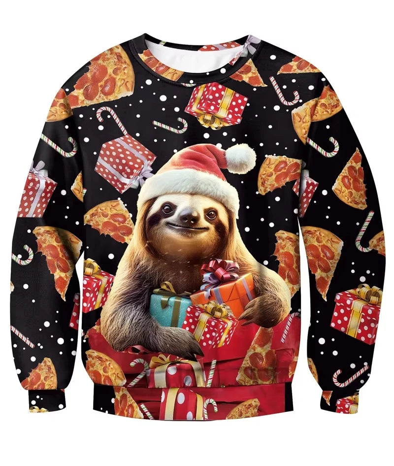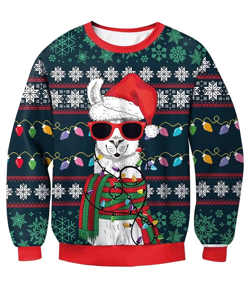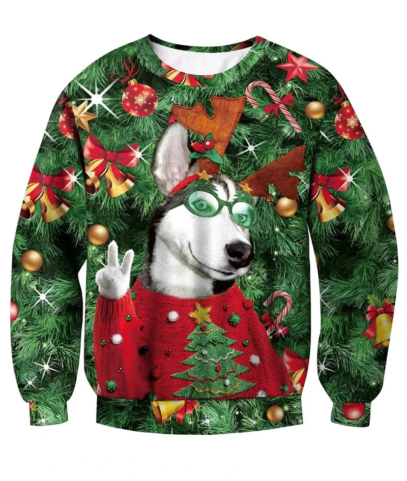 Unisex Ugly Christmas Cat Print Sweatshirt Funny Animal 3D Graphic Crew Neck ...