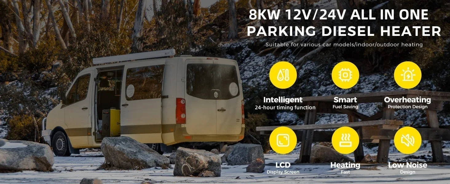 8KW Diesel Air Heater 12V 24V With LCD Control RV Heater All in One with Remo...