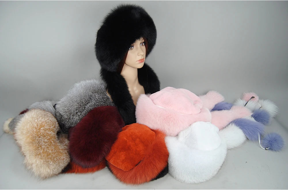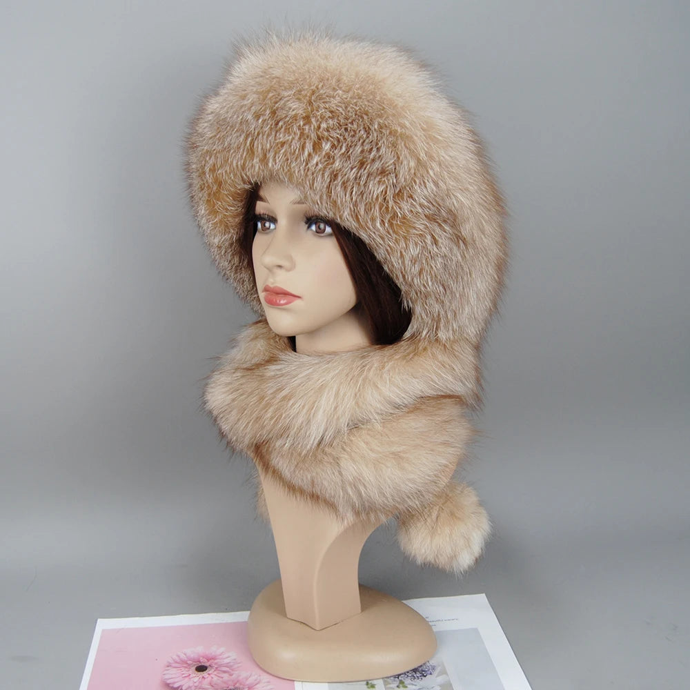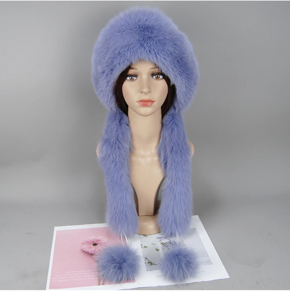 Fashion Women s Winter Hat Real Natural Fox Fur Surround Extra Length Can Be ...