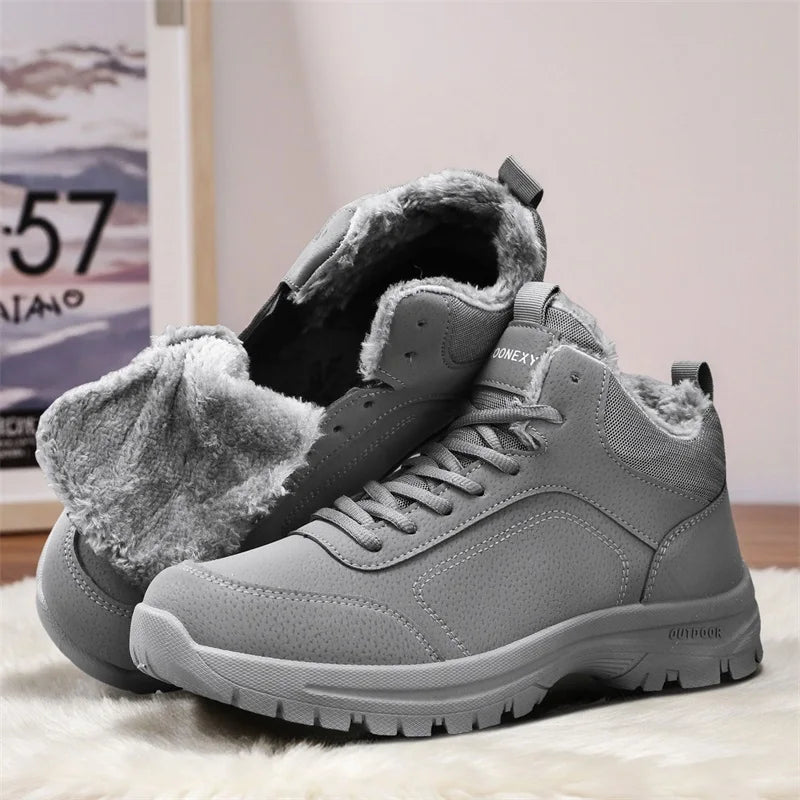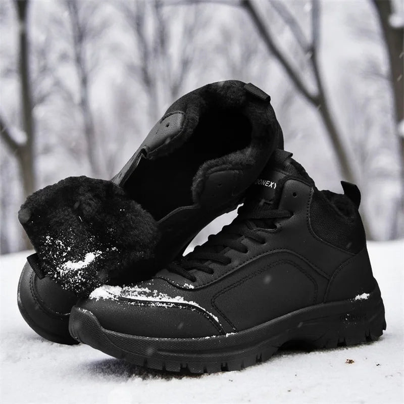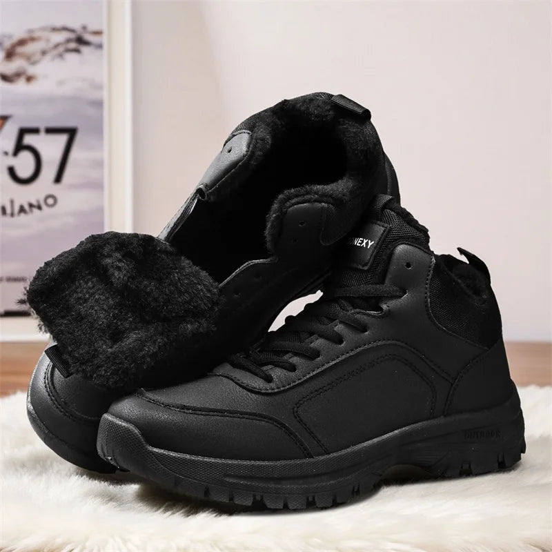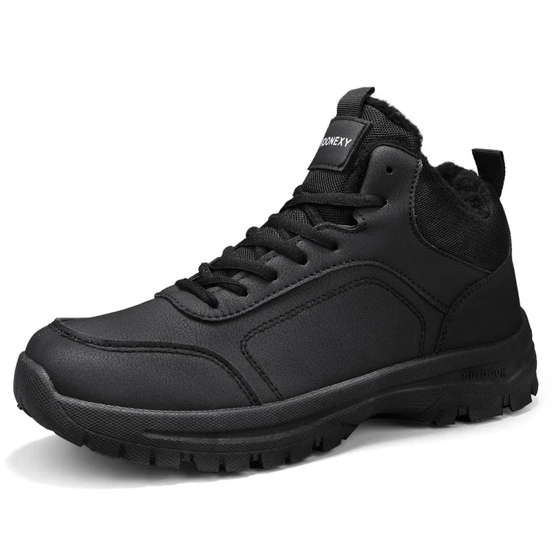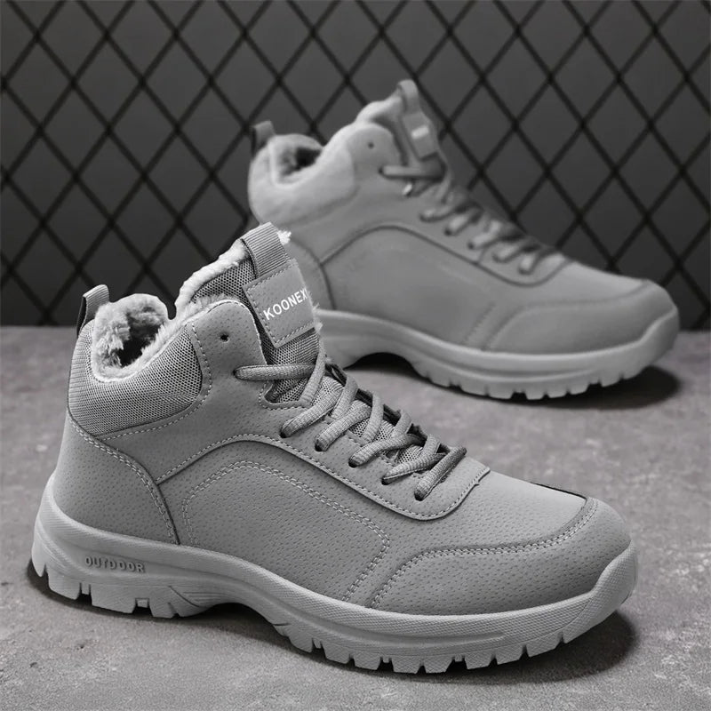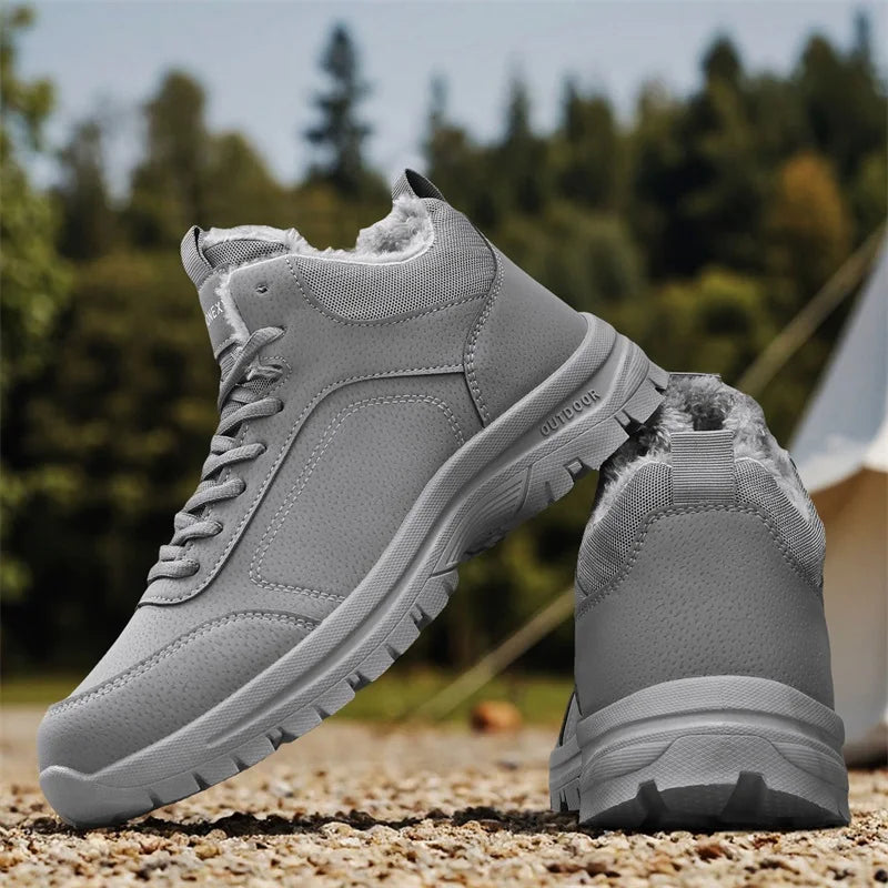 Leather Ankle Boots Classic Man Motorcycle Botas with fur warm High Top Male ...