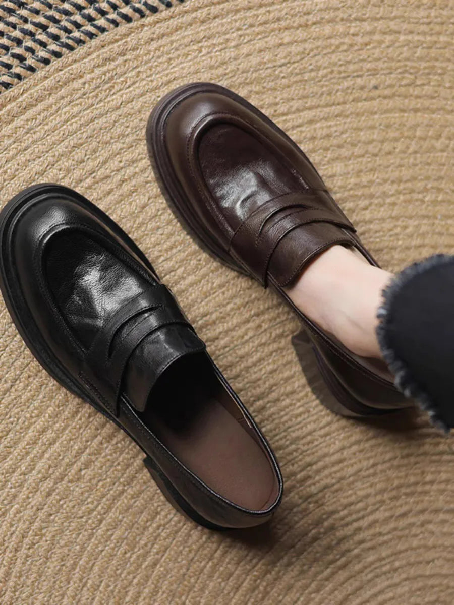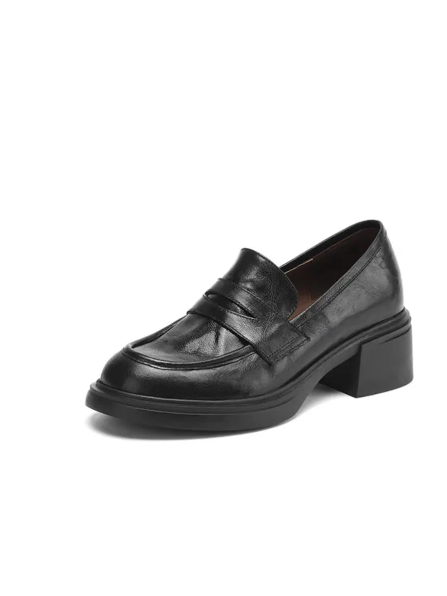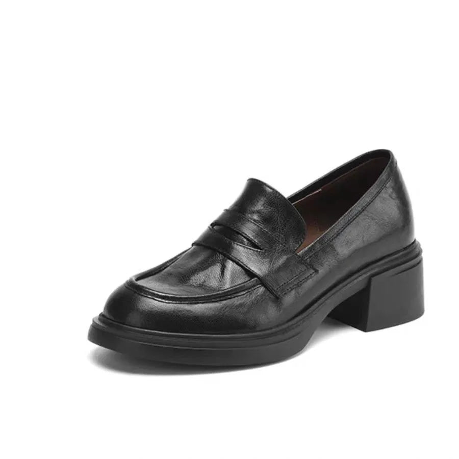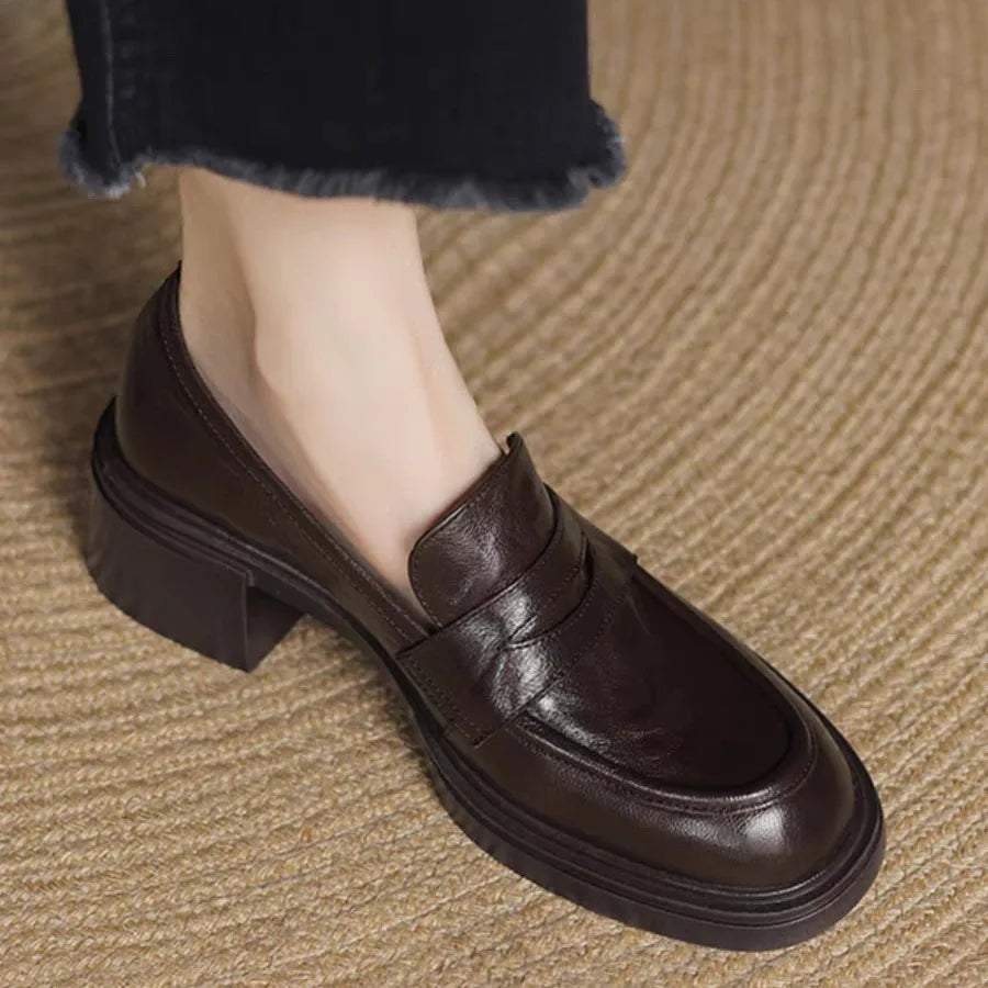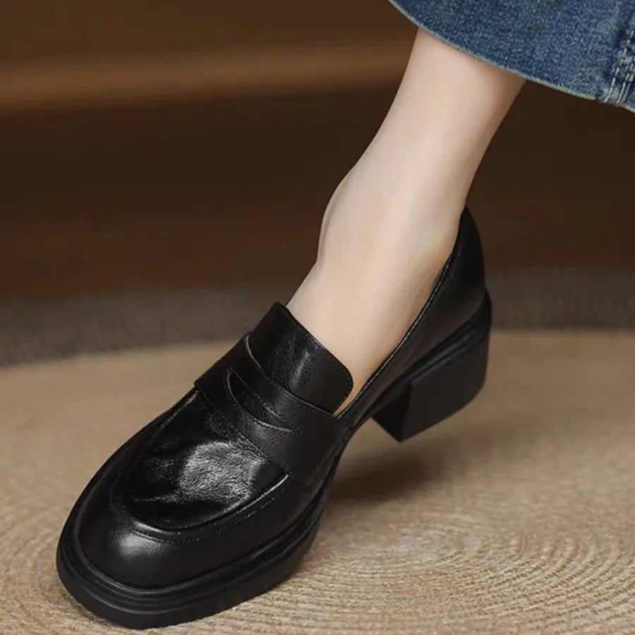The Retro Round toed Women s Loafers and Thick heeled Soft Leather Are A Vers...