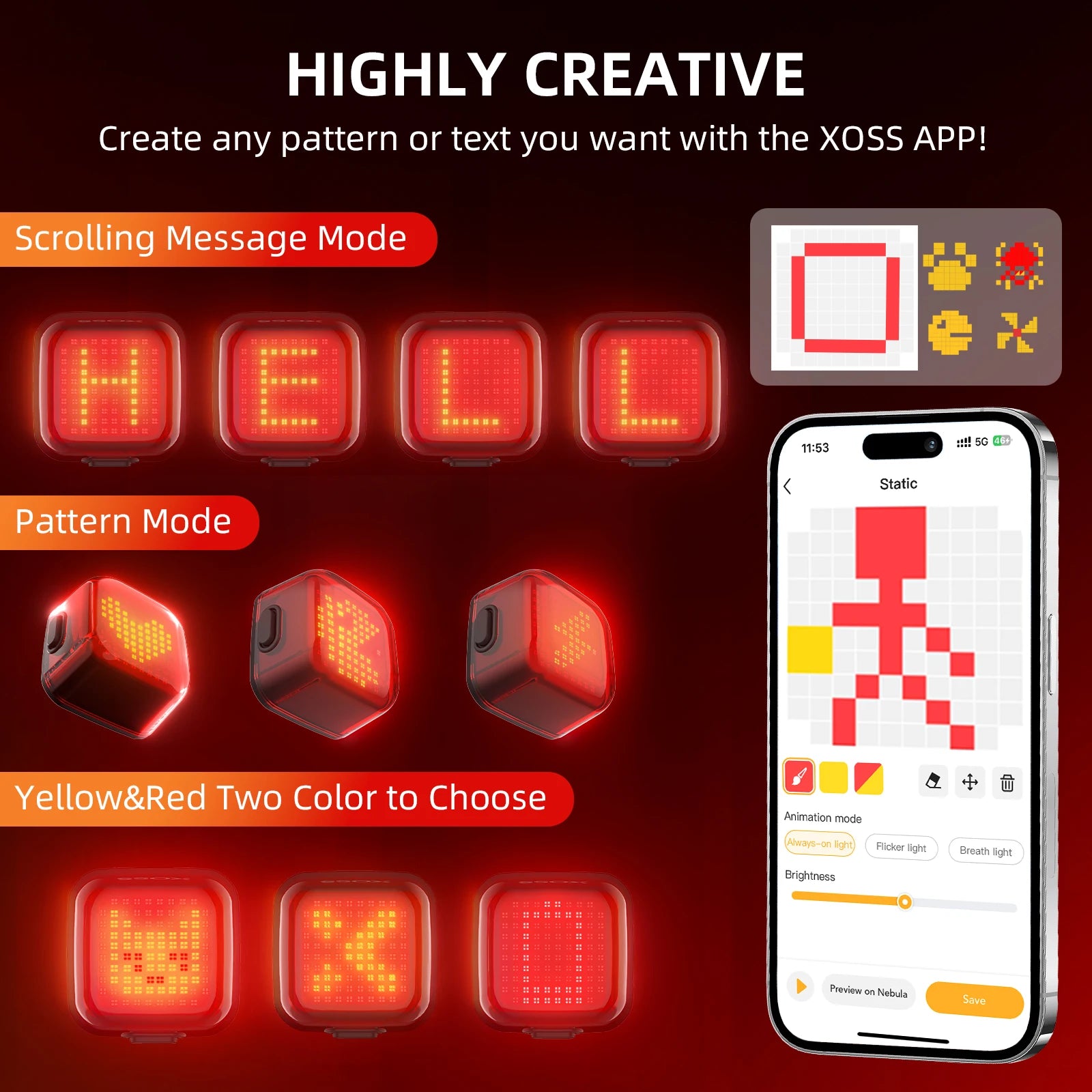 Xoss Nebula Smart Brake Bike Taillight Bike Lights With Customized Patterns T...