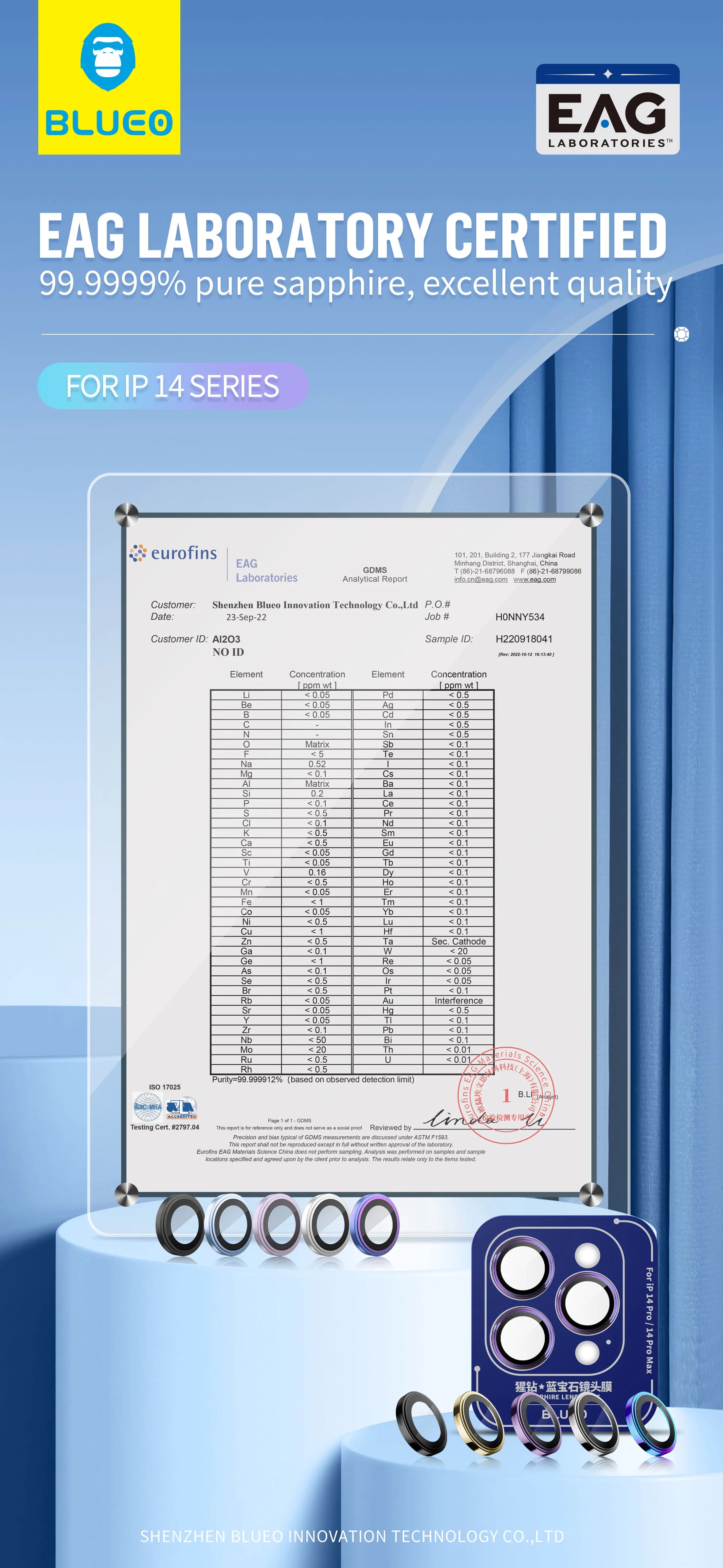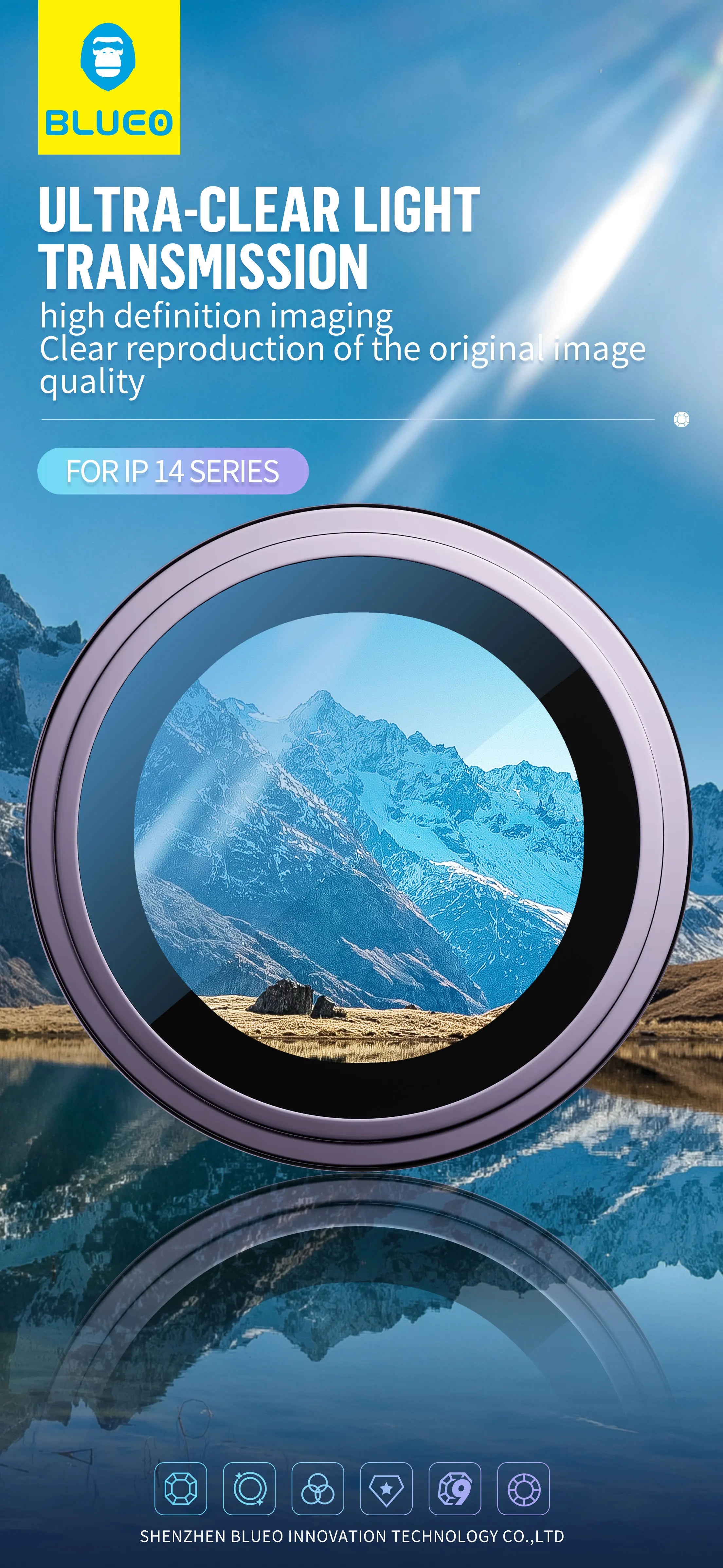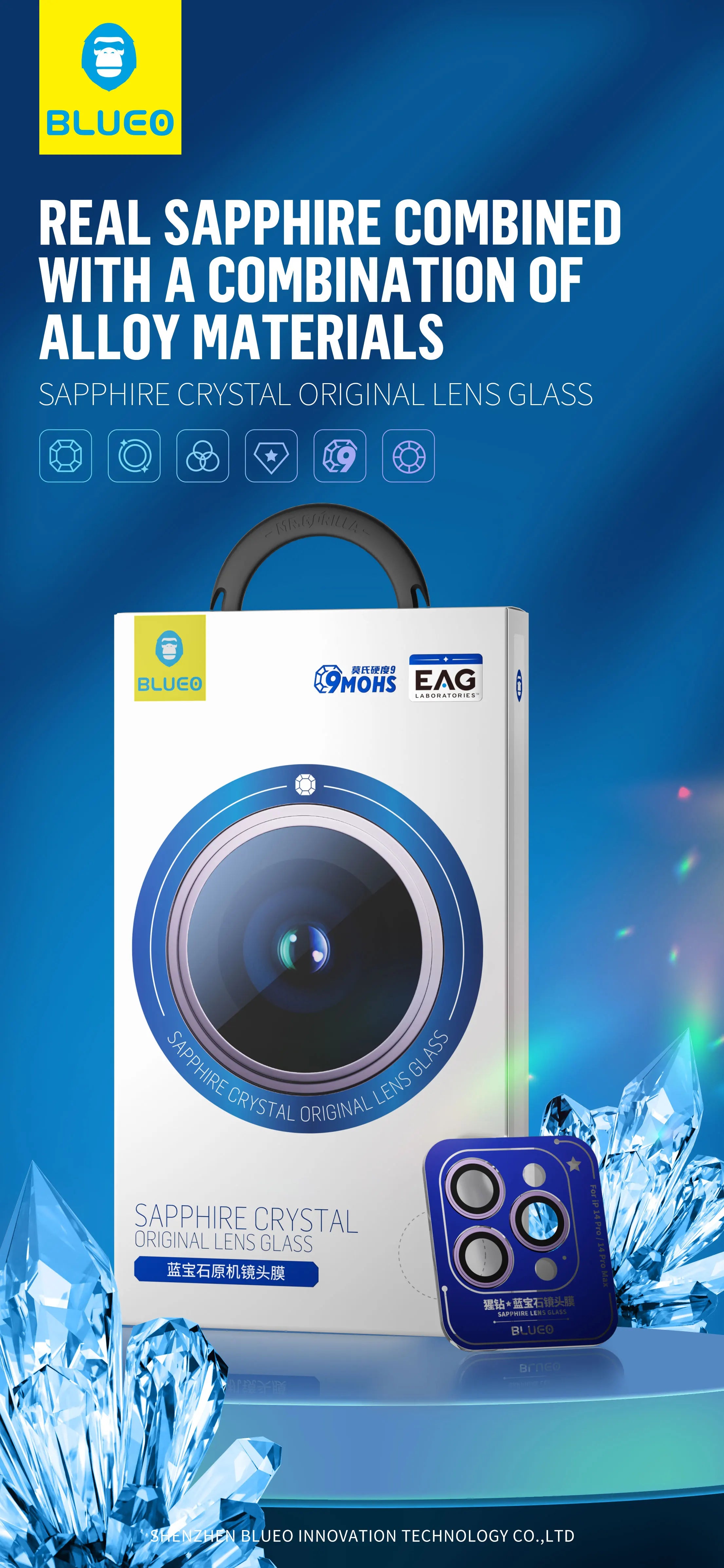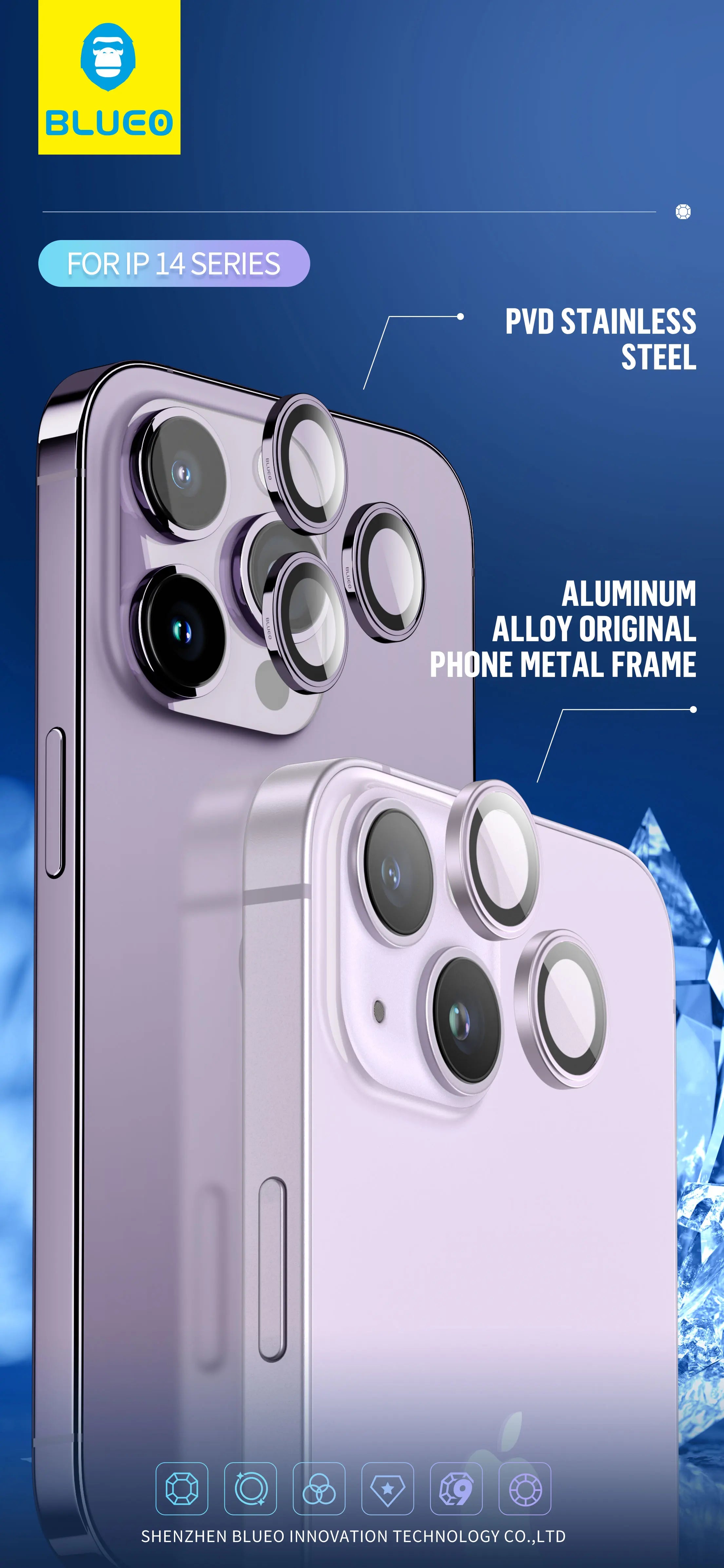 Blueo Sapphire Material For iPhone 14 Pro Max Camera Lens Protector, Metal Anti Scratch Cover for iPhone ...