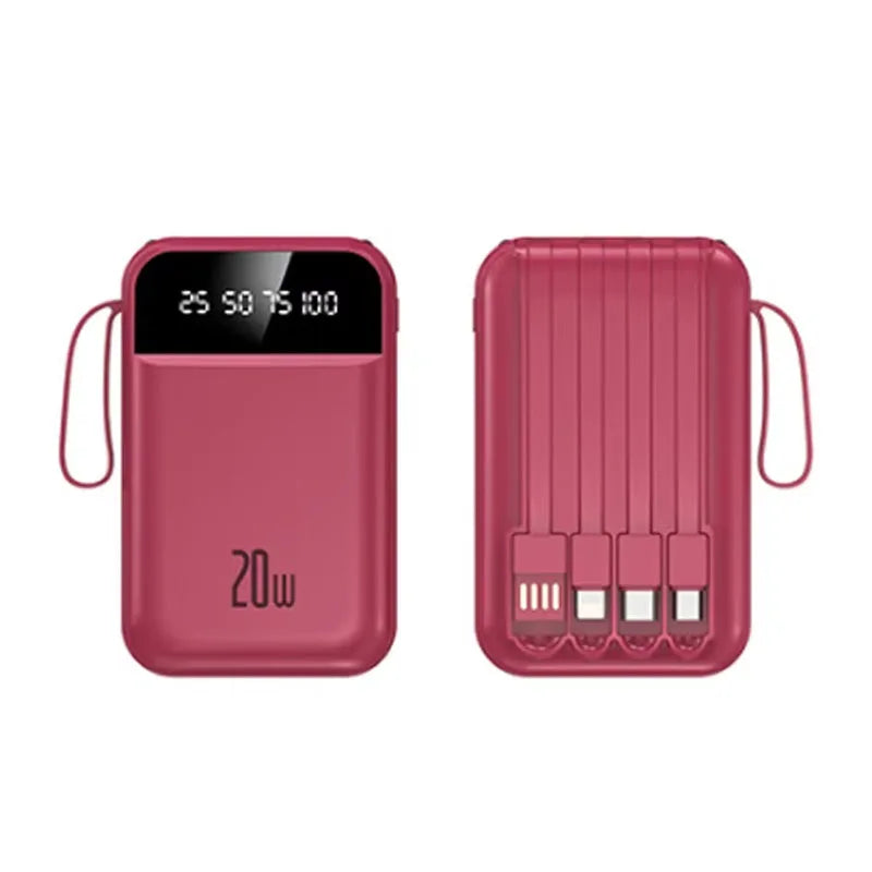 20000mAh compact portable power bank super fast charging with built-in charging cable suitable for iPhone/Samsung/Xiaomi/Huaewei