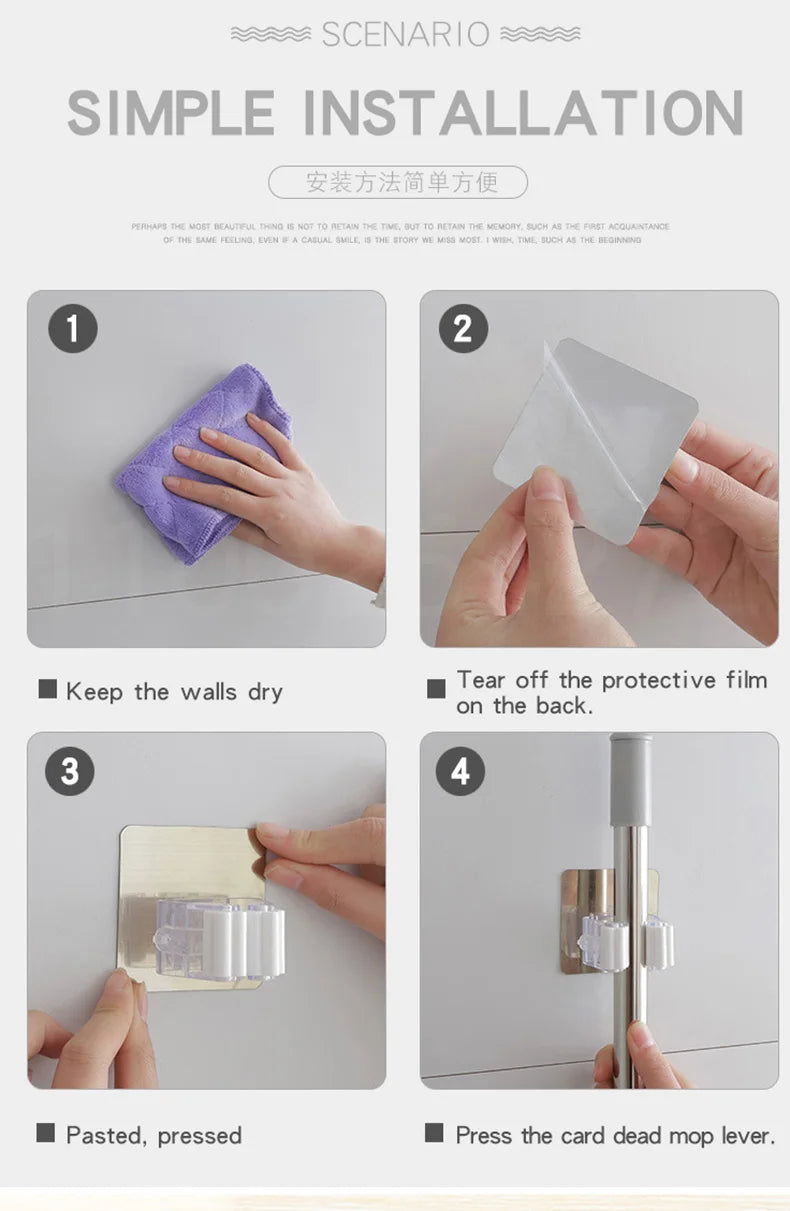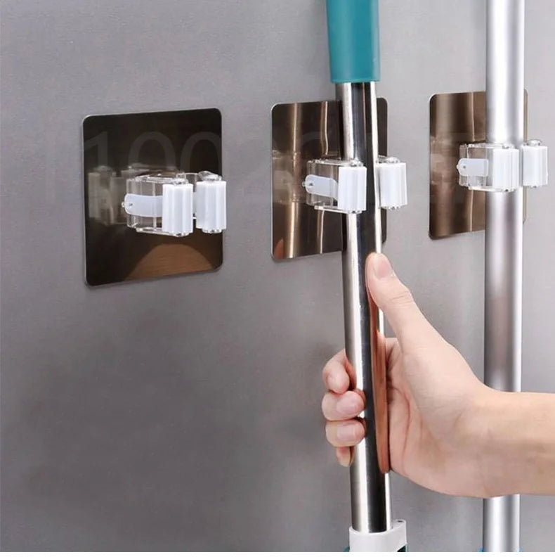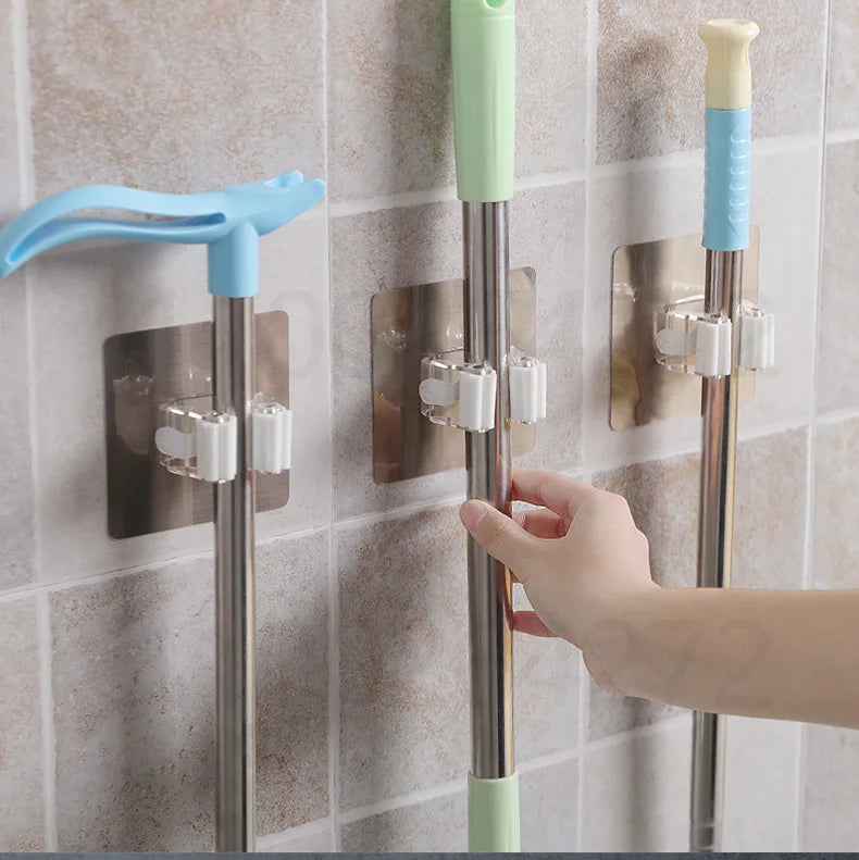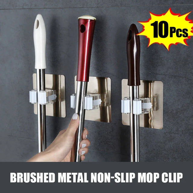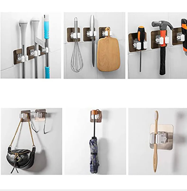 1-10PCS Adhesive Multi-Purpose Hooks Wall Mounted Mop Organizer Holder RackBrush Broom Hanger Hook Kitche...