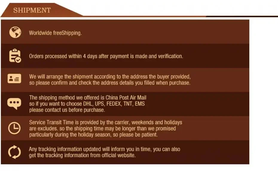 ⏳ Die Lieferzeit wird ab Versanddatum berechnet.