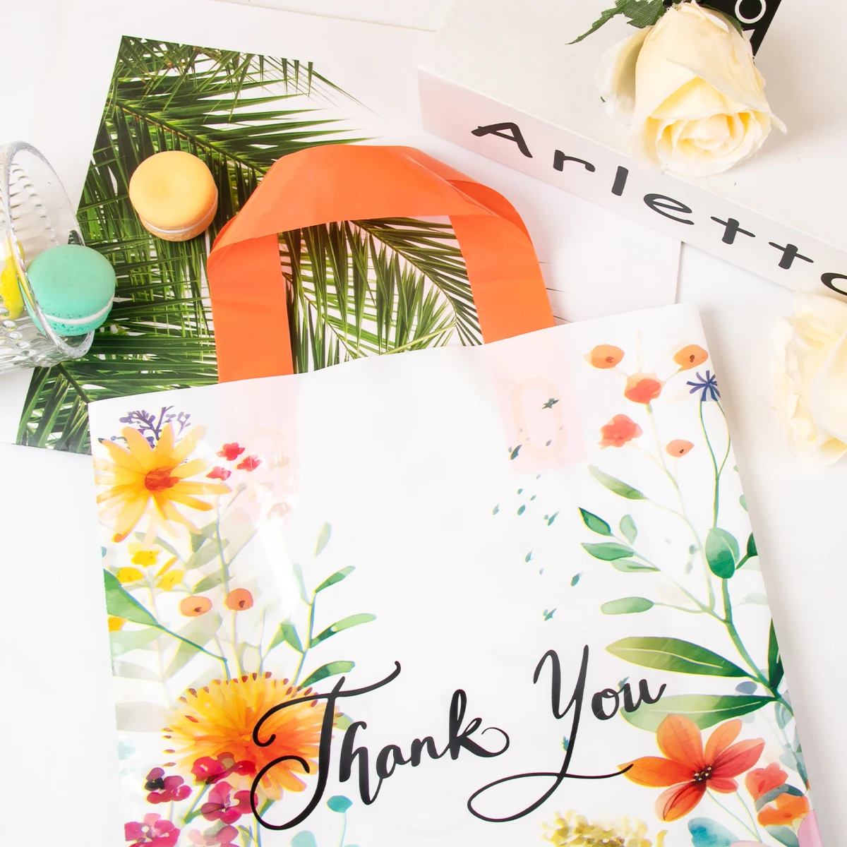 10pcs Thank You Gift Bag with Handles Plastic Floral Design Thank You Tote
