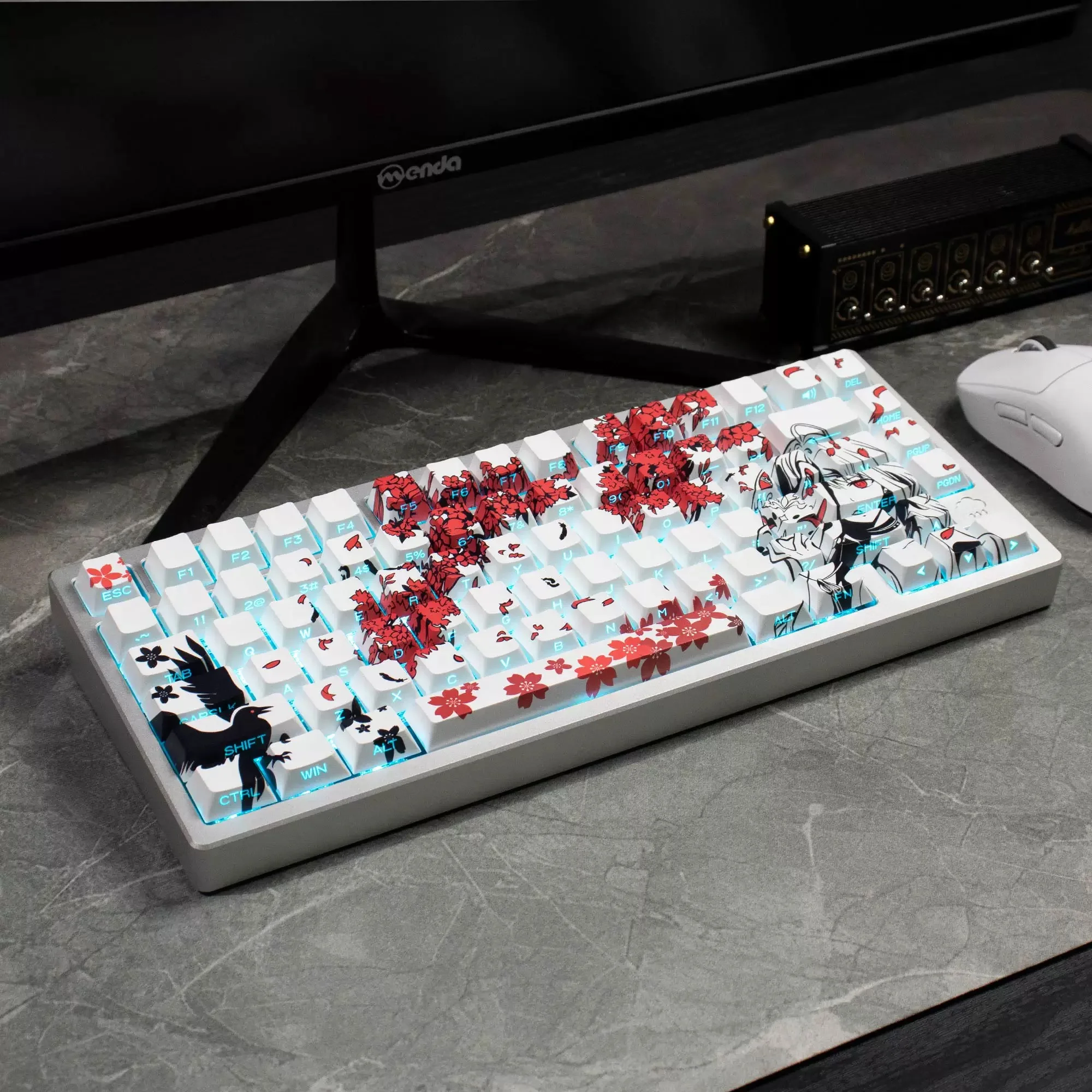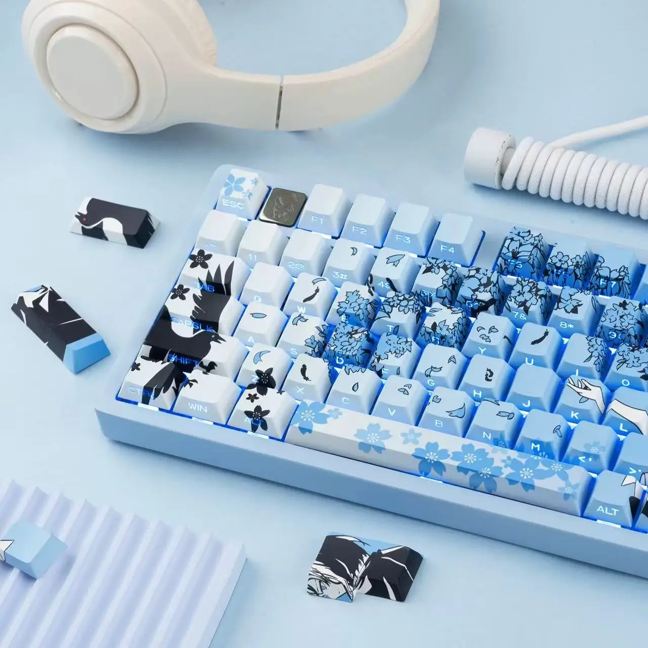129 Raven Sakura Keycap Cherry Profile Cute Anime Keycap Double Shot Sidelit
