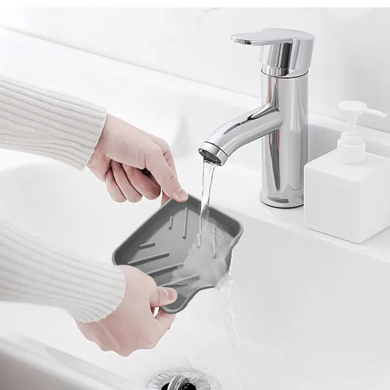 2 1pcs Sink Silicone Tray With drain Soap Sponge Storage Holder Countertop