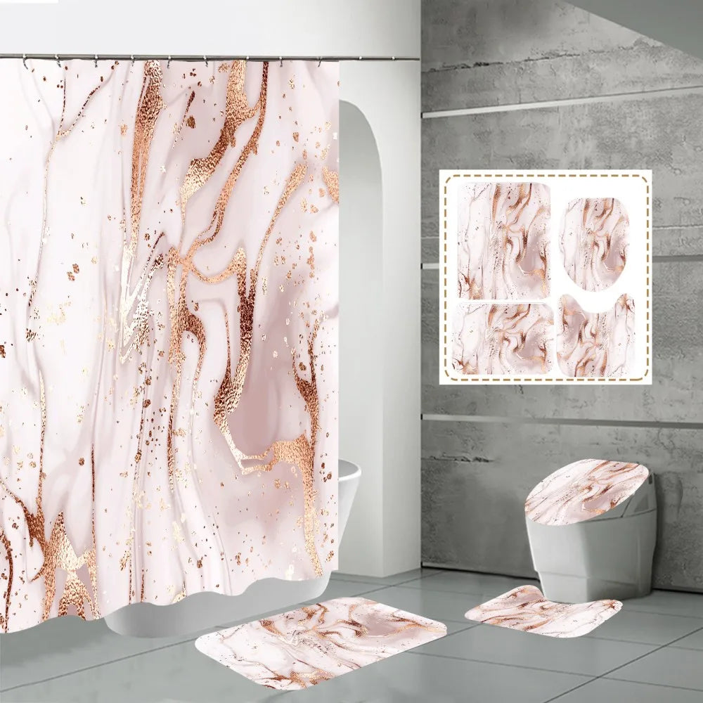 3D Blue Marble Print Shower Curtain 4 Piece Carpet Cover Toilet Cover Bath Mat Pad Set Bathroom Curtain w...