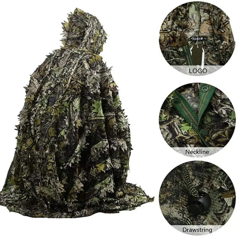 1. Our 3D Green Leaf Cape Camo hunting set is suitable for outdoor hunting, funny parties, wildlife photography, bird watching, movie sets, CS games and more.