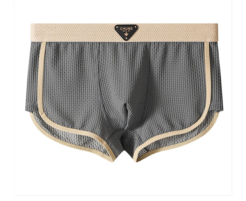 3PCS/Pack Fashion Ice Silk Knitted Plaid Boxers Breathable Comfort Mesh Crotch Underpants Super Soft High Elastic Men's PantiesMesh Crotch Underpants
